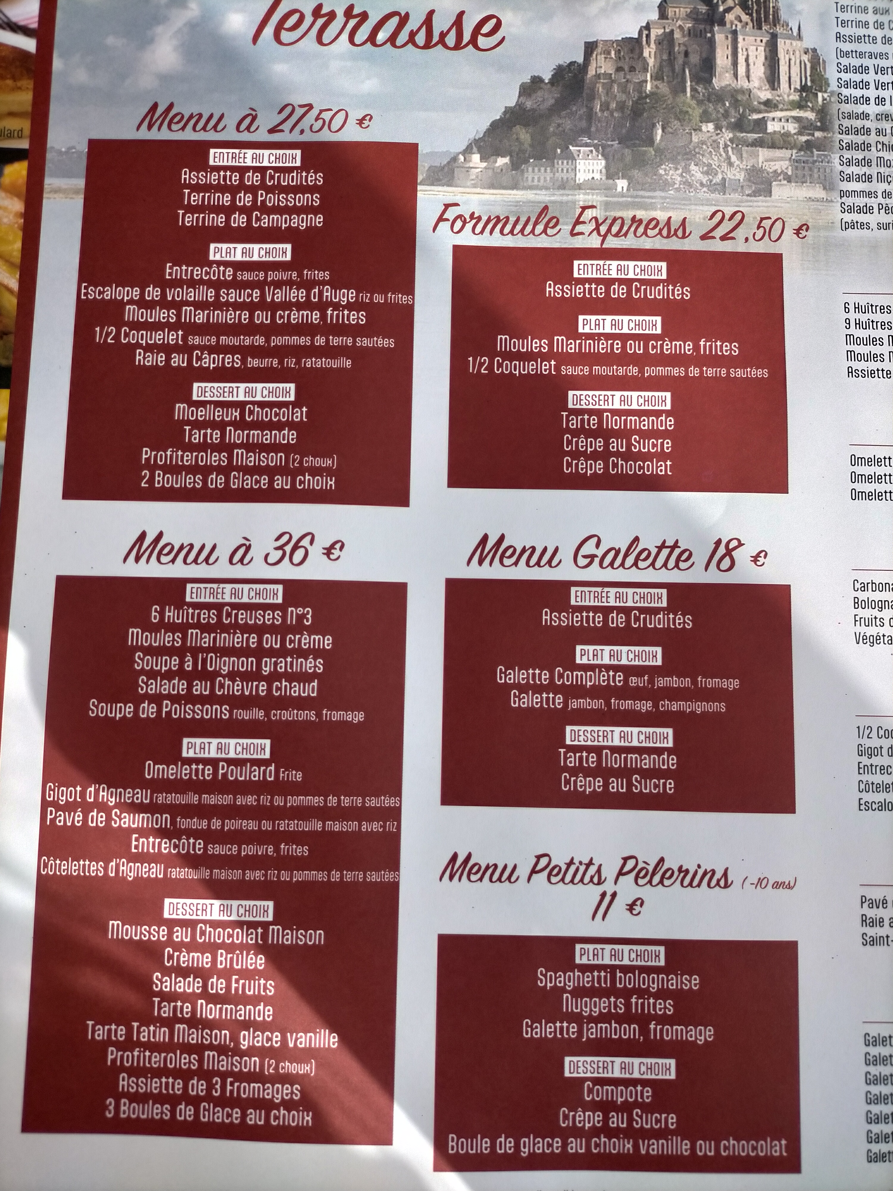J'ai eu une très mauvaise expérience avec ce restaurant. Le Mont Saint-Michel ne manque jamais de touristes. C'est peut-être pour cela que les serveurs étaient très impolis envers les étrangers. Ils manquent tout simplement de courtoisie de base !