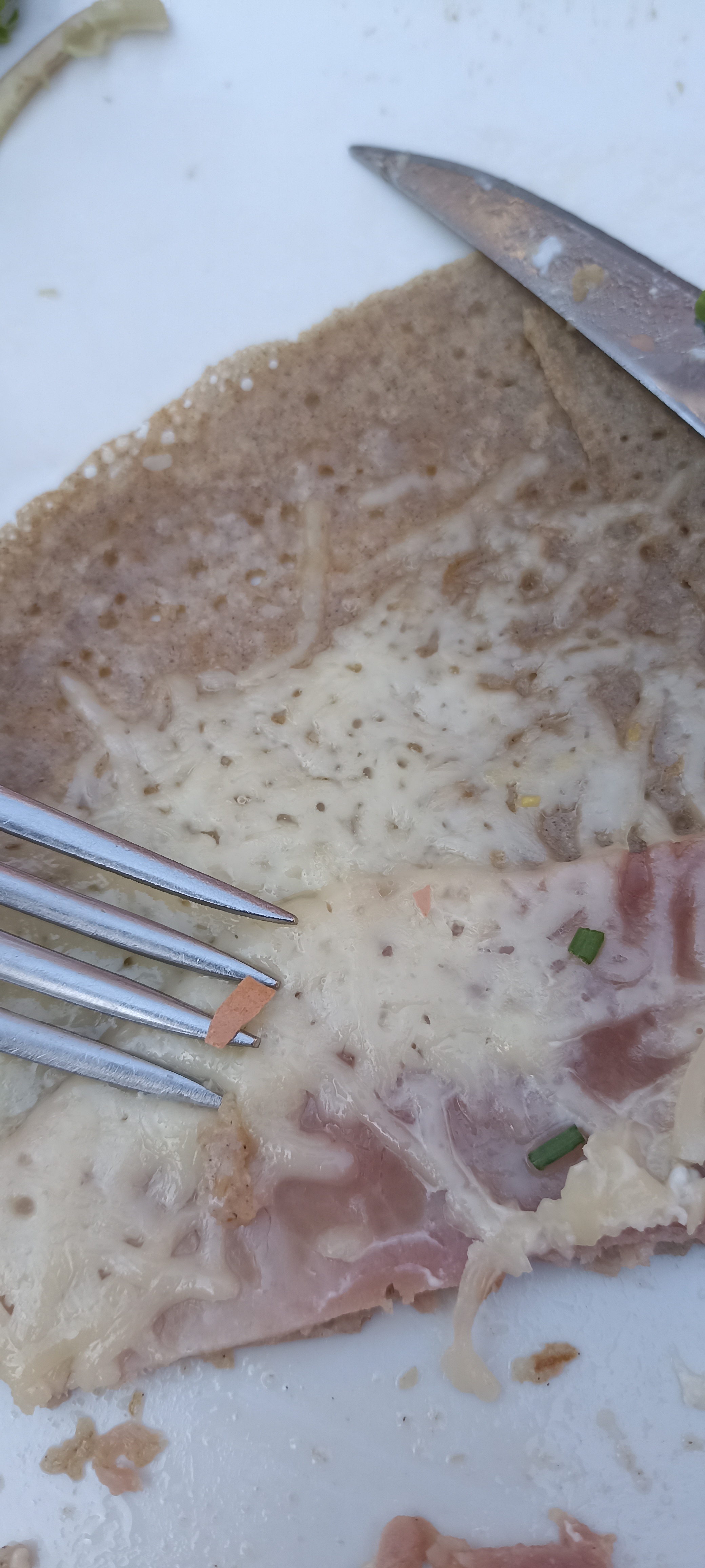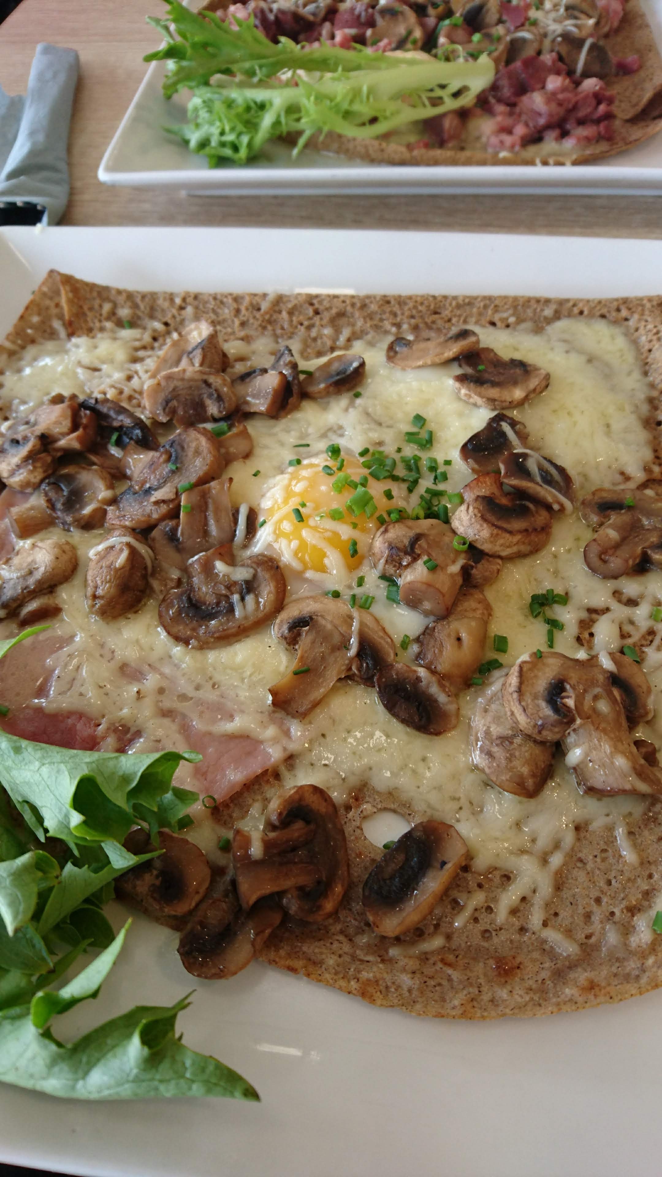 Service mauvais. Talkie walkie à proximité de la clientèle extrêmement bruyant. Crêpe paysanne pas mauvaise mais oeuf et lardons pas cuits (cf photo). Des cheveux/poils retrouvés dans nos deux assiettes. Vue agréable.