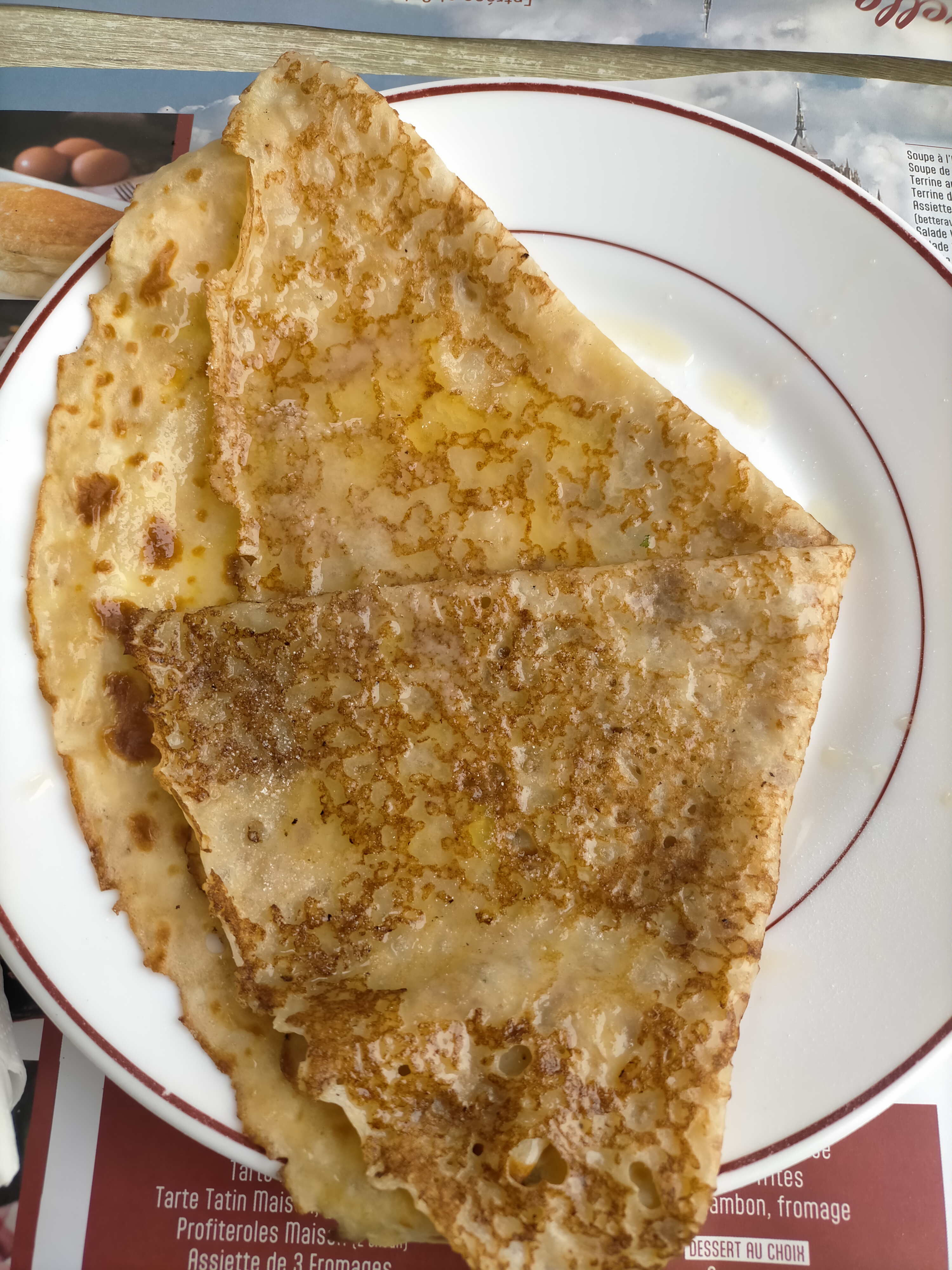 Crêpe basique, correct pour le prix en comparaison au restaurant voisin. Personnel peu aimable, mesures sanitaires peu respectées. Ont eu la gentillesse de nous apporter une carafe d'eau sans que ce soit demandé.