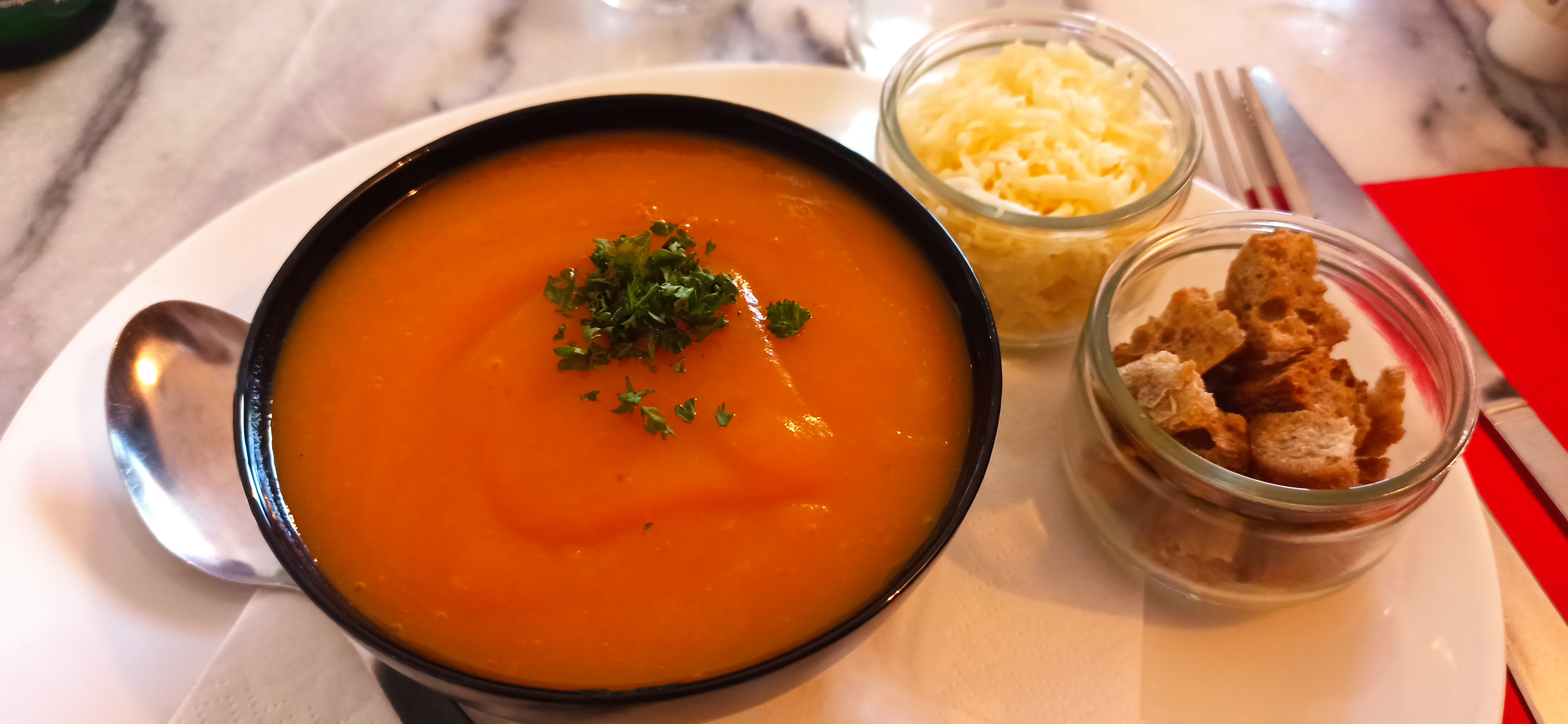 Bonne cuisine , service rapide , il l est tellement qu il nous a même pas été proposé des verres avec une carafe d eau ....