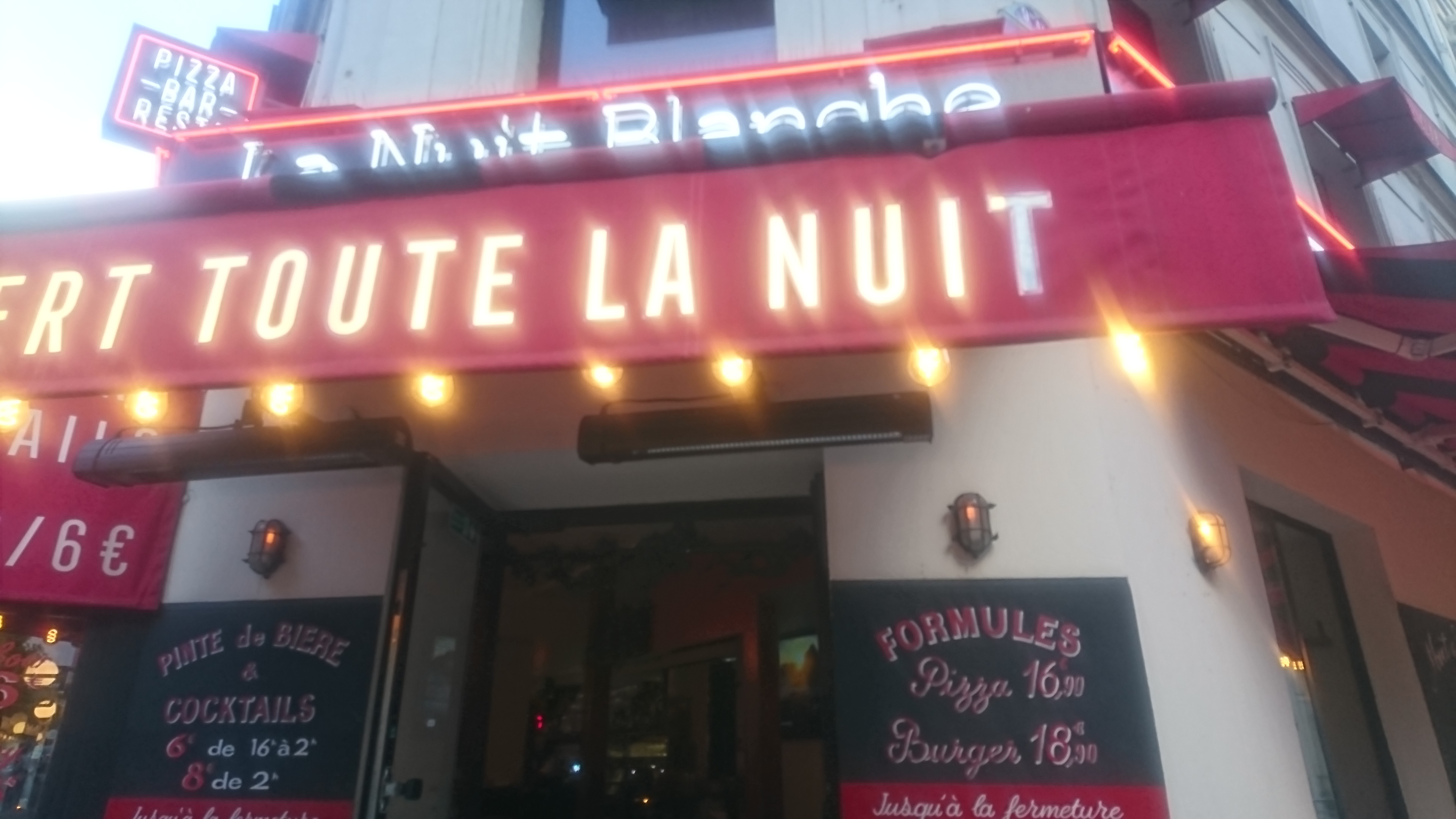 Déjeuner à La Nuit Blanche aujourd'hui. Petite pizza très bonne. Accueil impeccable par un serveur en chemise blanche. On reviendra très vite !
