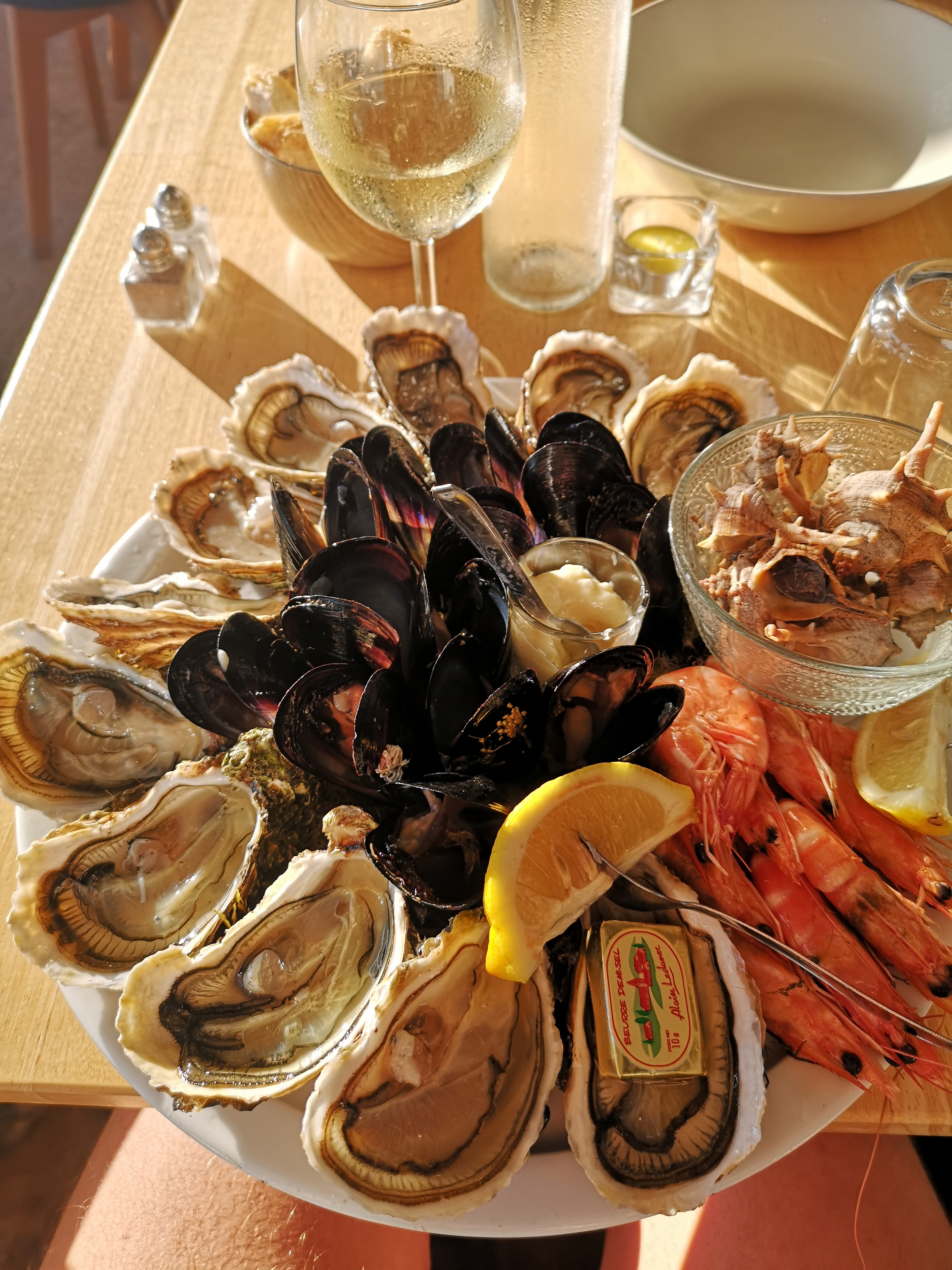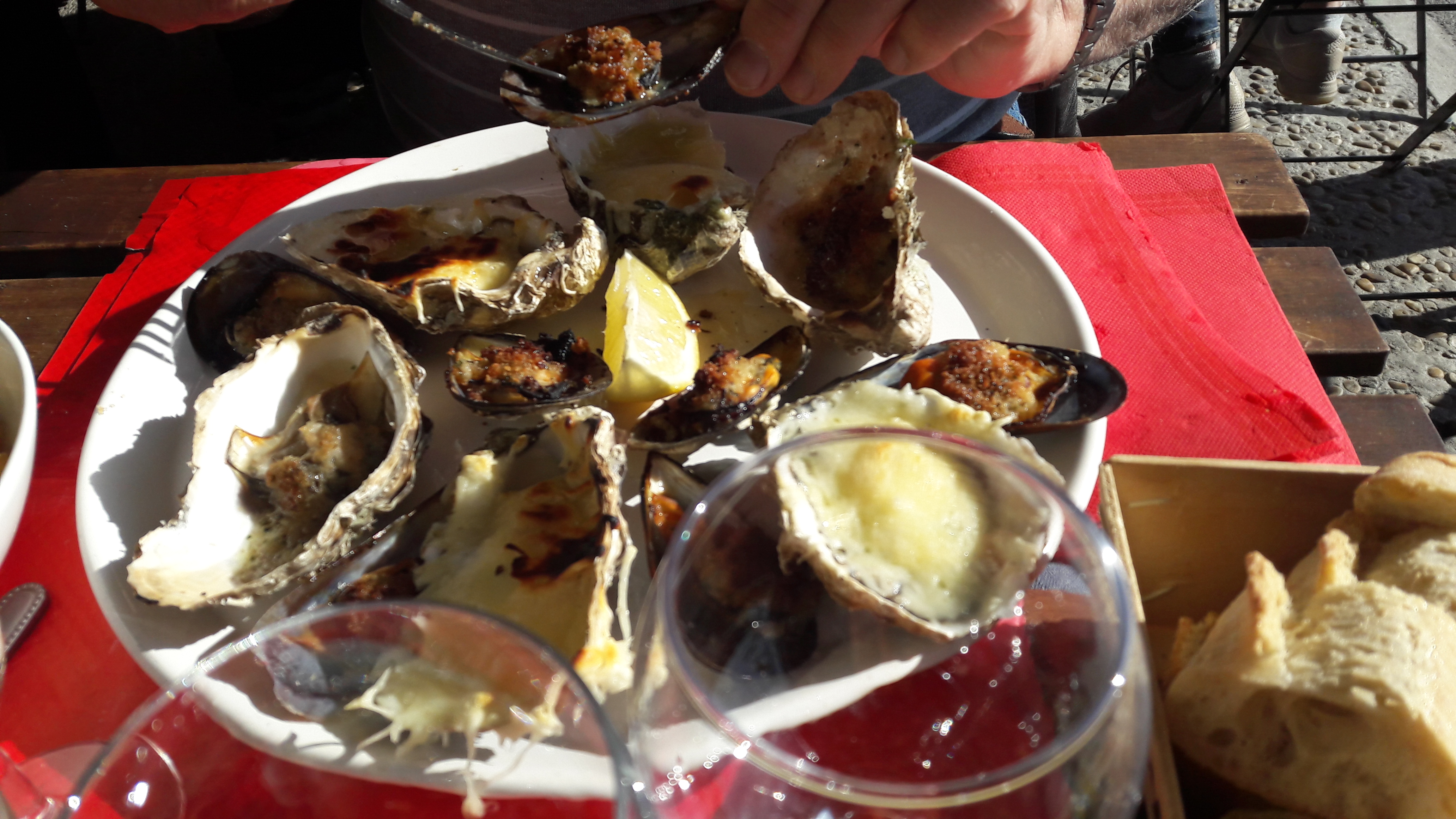 Huitres excellentes, moules légèrement trop cuites