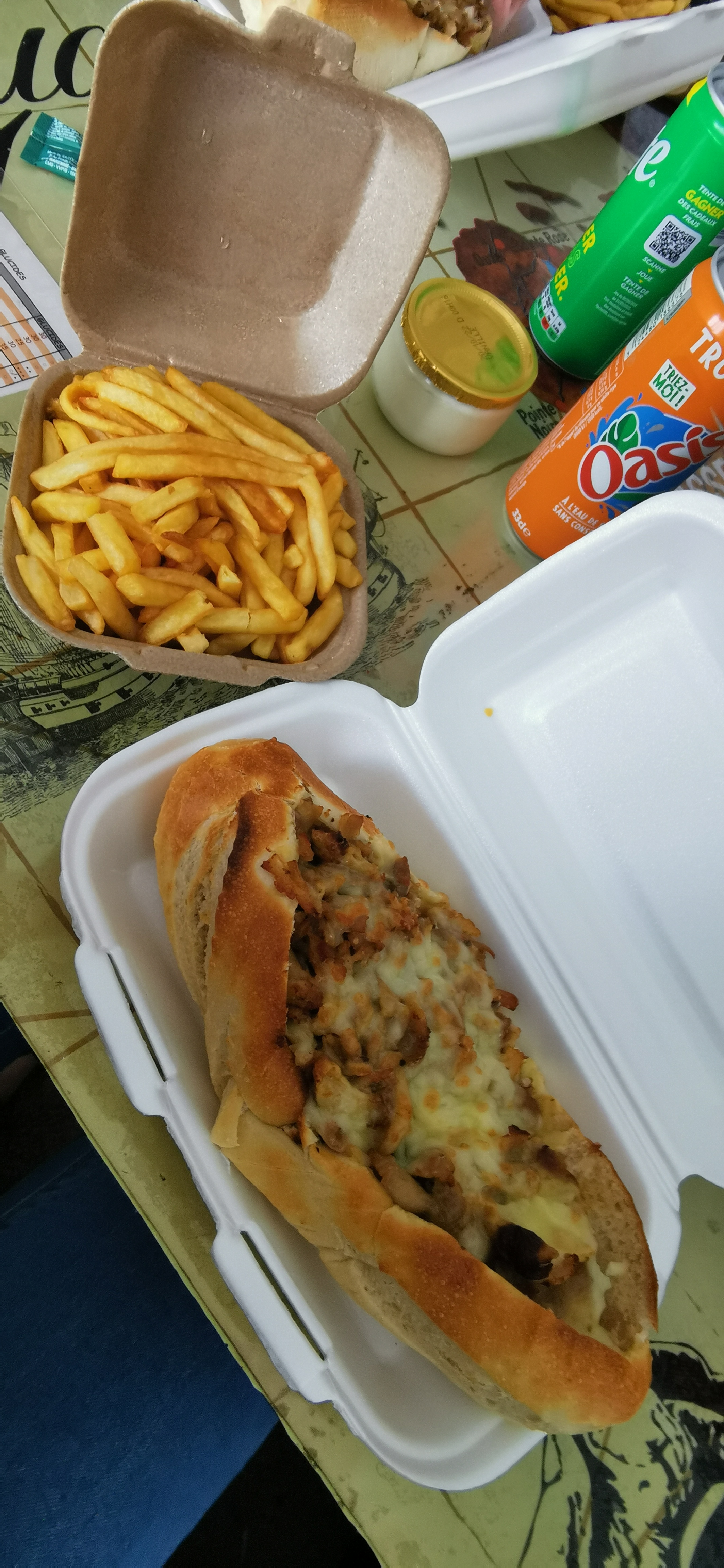 Franchement je suis déçu commander deux sandwich les frites j'ai laissé tous pas aujourd'hui sèches. Les sandwichs vraiment il y a beaucoup mieux ailleurs ! Je comprends mieux que cela a été fait à la vite fait pas de goût vraiment pas bon. 👎 Et pourtant je n'aime pas critiquer la nourriture mais la c'est abusé. Je ne recommande pas du tous .