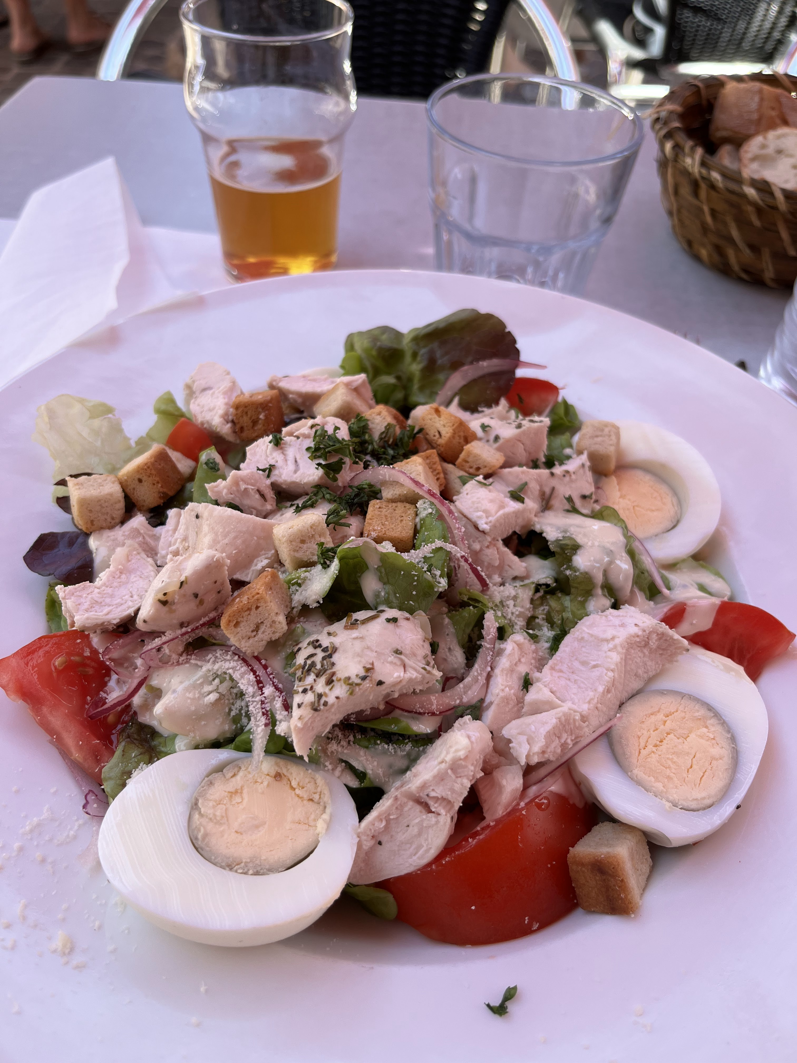 Salade de chèvre chaud et salade de crevette pas bon avocat dur même à coupé avec un couteau une galère. Je ne conseille pas cette établissement. Dommage belle vue sur la cathe