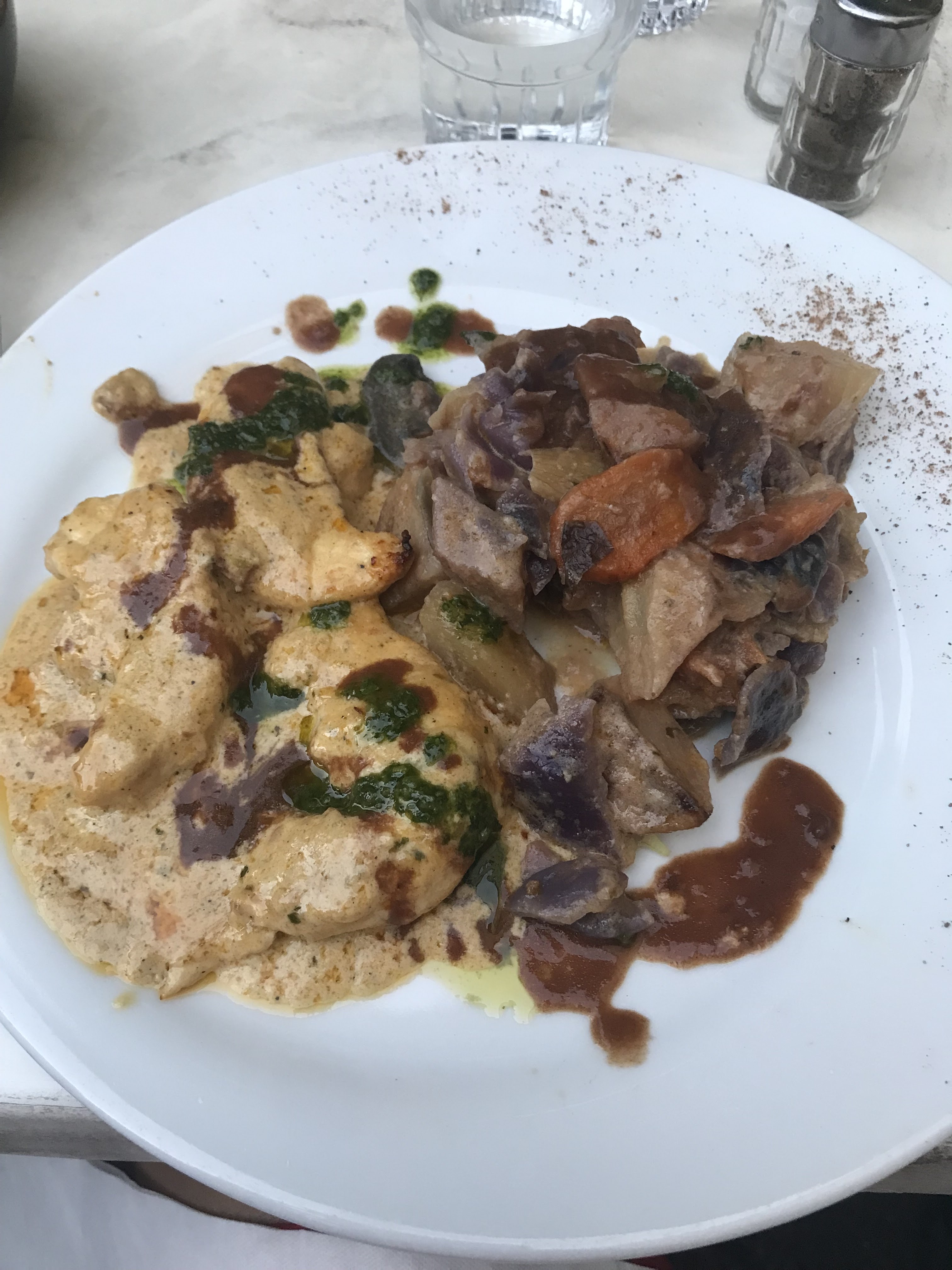 Nourriture correcte. Service ayant quelques marves de p de ogression (faire gouter le vin avant de servir, dire au revoir)