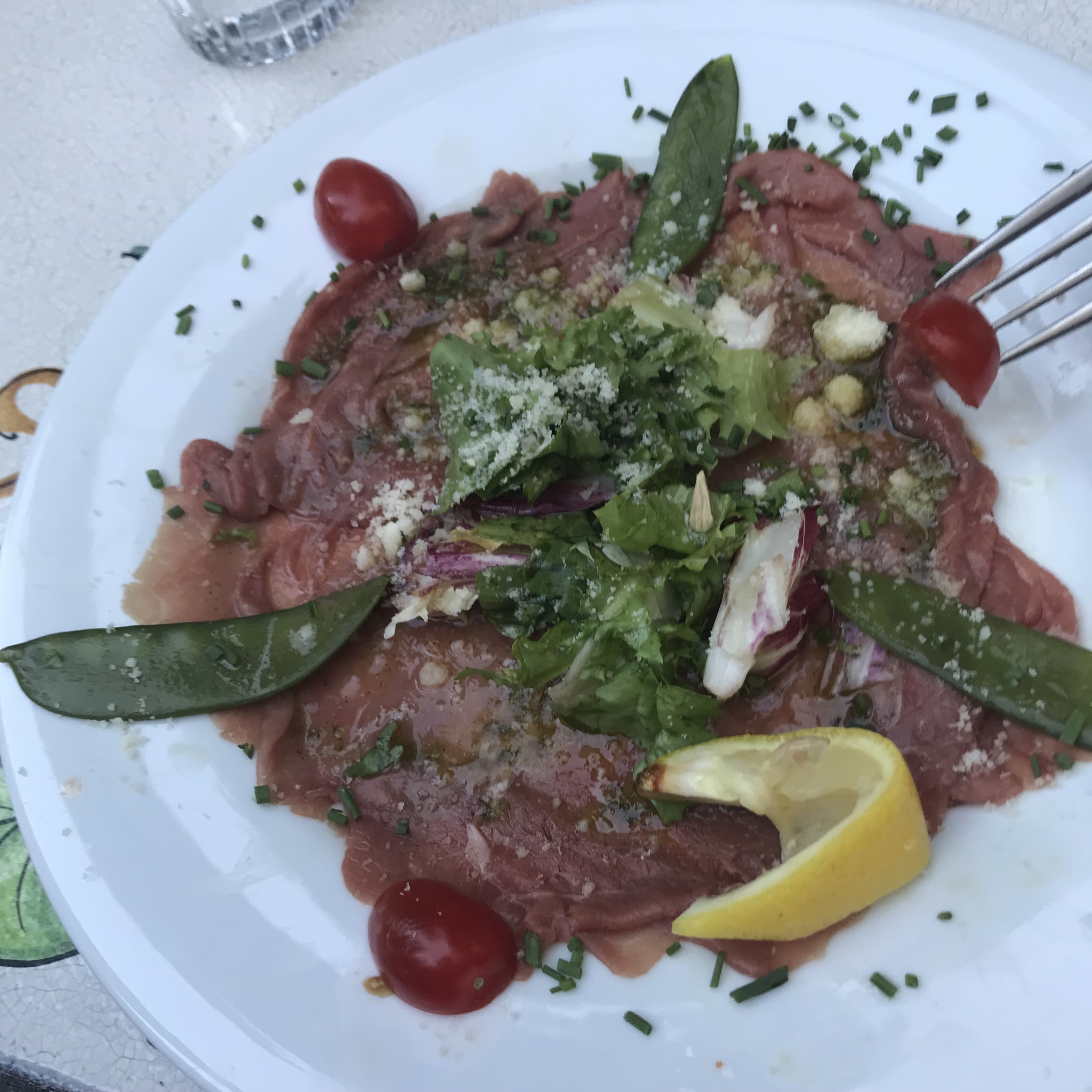 Cuisine française traditionnelle délicieuse et copieuse. Le service de Veronica était excellent. Décor charmant et belle salle à manger à l'extérieur. Notre groupe de 6 personnes a eu le carpaccio de bœuf, le tartare de thon, le foie gras, le filet de poisson, le poulet à la crème et le steak. Tout était cuit à la perfection. Le dessert était divin - la tarte aux myrtilles et la crème chantilly offraient une fin heureuse. Un repas des plus mémorables.