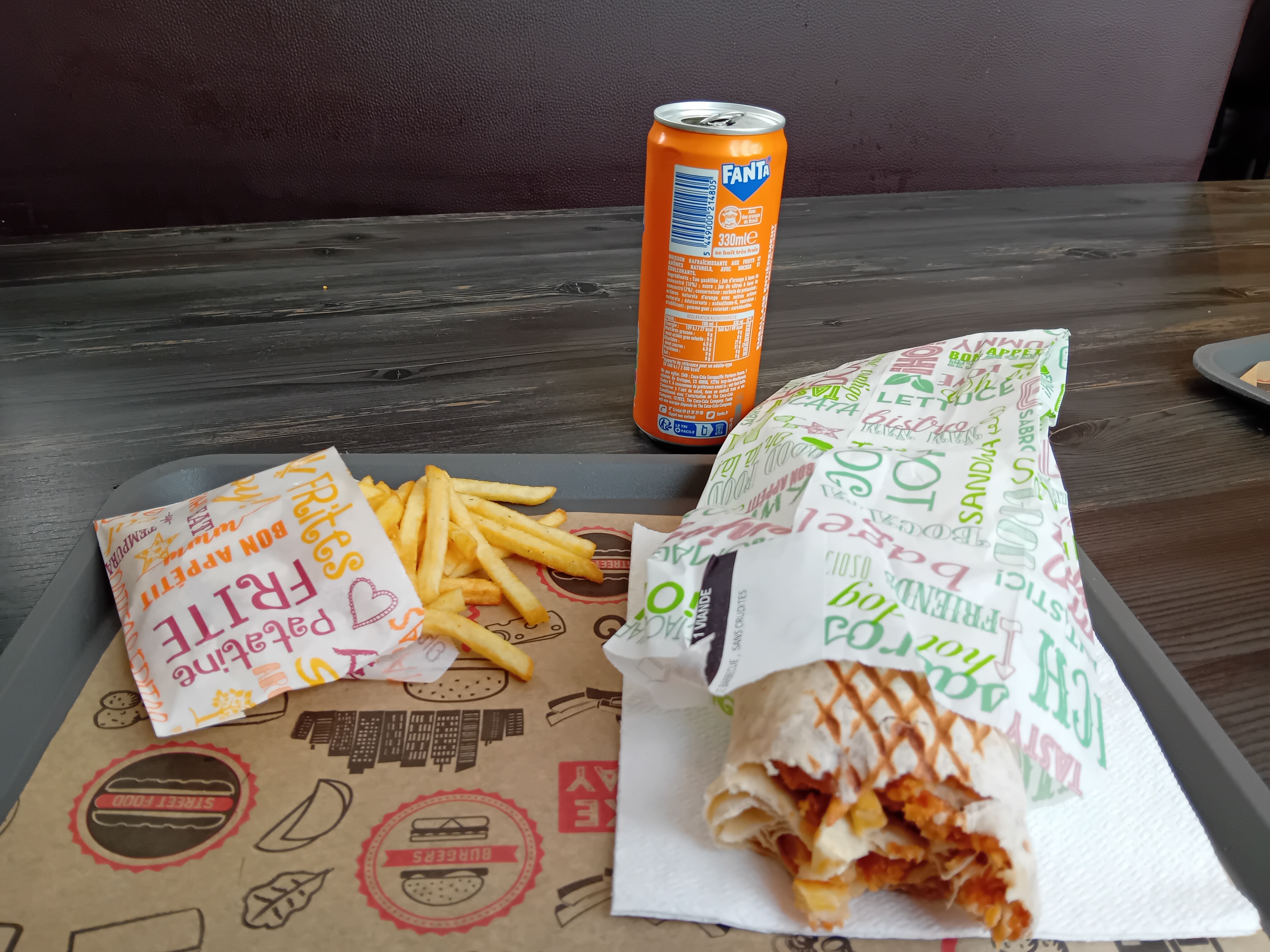 Client depuis 3 ans et vous ayant toujours recommandé, ma déception est encore plus grande. J'ai vu la qualité chuter et les prix doublés (ce que je comprends parfaitement, mais pas aux dépens de la qualité) petit à petit. Ce soir, j'ai voulu retenter l'expérience une fois de trop, la grande frite molle et froide baignant dans sa soupe d'huile, le burger passable, mais ce n'est plus du tout ce que c'était, et le wrap.. pourtant excellent il y a quelques années est devenue maigre, acide ?? et le piment en supplément inexistant (1 ou 2 morceaux tout au fond pour être honnête). Vraiment décevant. Le service de livraison est au top, toujours à l'heure et il ne manque jamais rien à la commande. Cet avis ne concerne pas ce repas, mais la chute globale de la qualité en parallèle de la forte hausse des prix sur 3 années. Soit l'un, soit l'autre, mais pas les 2 ce n'est pas correct.