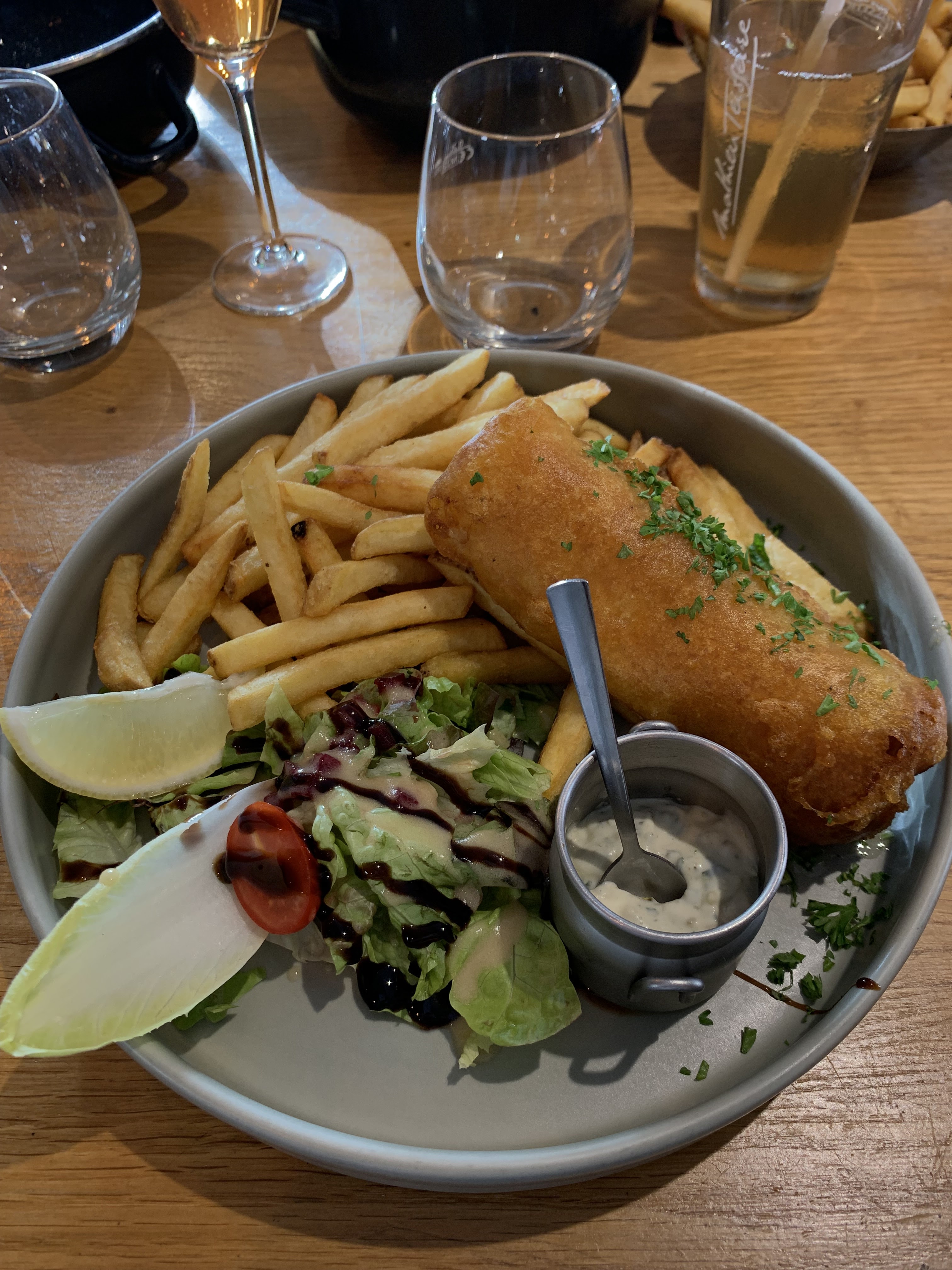 Une cuisine fraîche avec une note féminine dans les plats qui font plaisir ! Plats copieux, bien présentés, un fish and chips maison comme le reste d ailleurs au top !!! Une équipe de Chippendales en salle ! Ambiance sympa et conviviale Nous avons passé un super moment, et nos papilles aussi. Nous recommandons cet endroit 😜