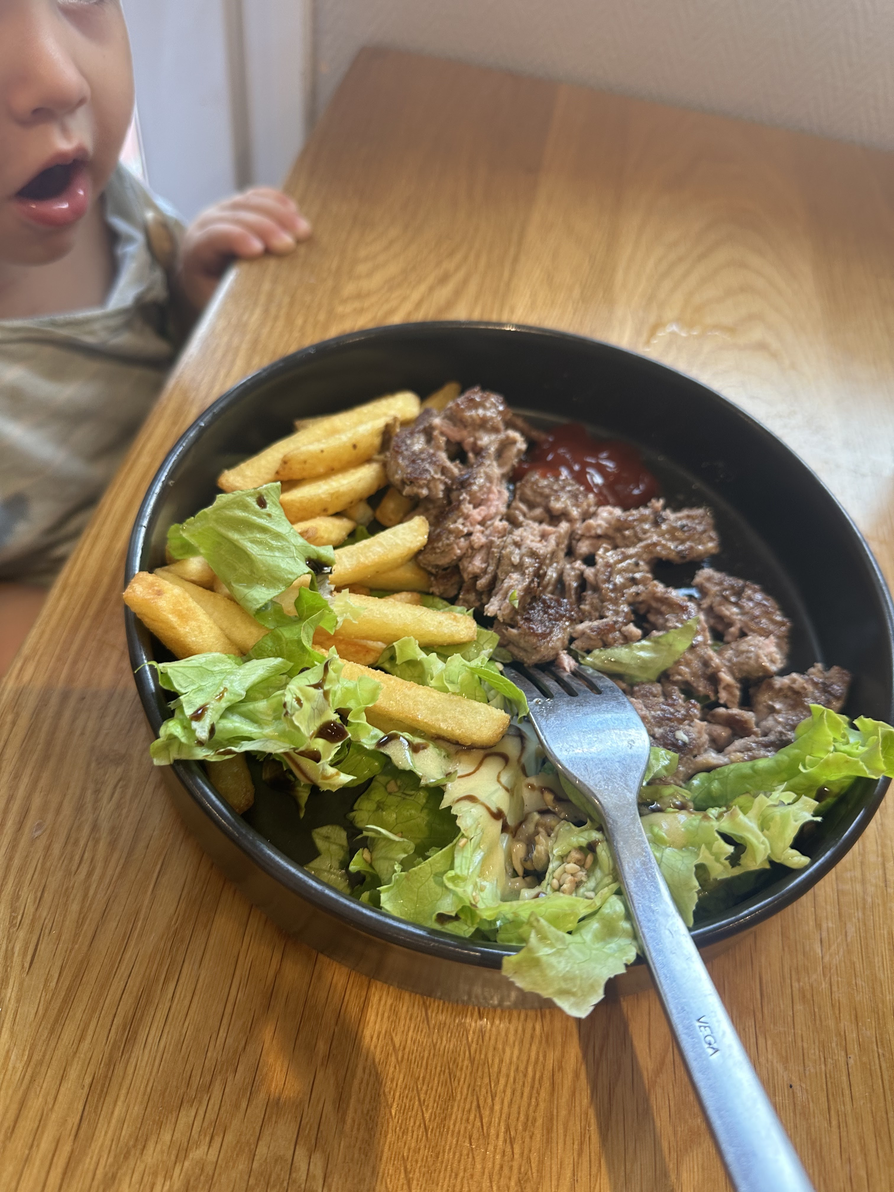 Les produits sont bon Le service déplorable On nous toise longuement a l arrivée mais on ne nous dit pas bonjour On ne s est plus occupe de nous une fois servi du coup personne n est venu pour choisir le dessert du menu enfant et elle n en a pas eue parce qu on avait un horaire a respecté Quand j' ai fait la remarque ça n a pas eue l air d être un problème et j ai payé un menu enfant complet ......dans une ignorance totale J attend encore le merci au revoir