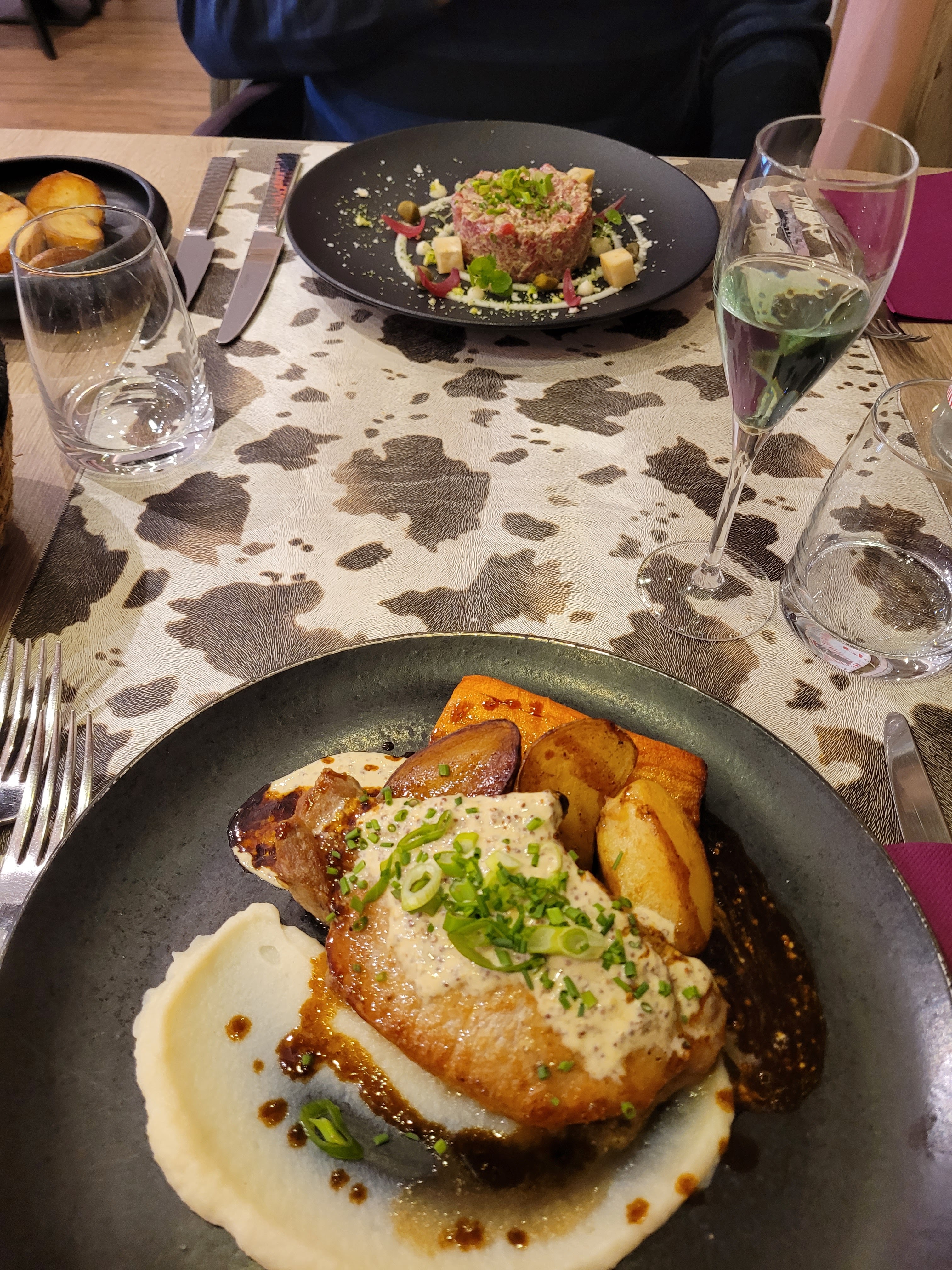 En vacances à Gérardmer, J ai dîner dans ce restaurant et tout d’abord j ai adoré ce côté cosy du lieu. Les serveuses sont délicates et discrètes, ce qui est très agréable.Bien sûr je me suis régalée ! Les mets sont joliment présentés et délicieux ! Et cerise sur le gâteau, j ai eu droit à ma petite bougie d anniversaire posée sur mon dessert 😁. Ce restaurant mérite d être recommandé !