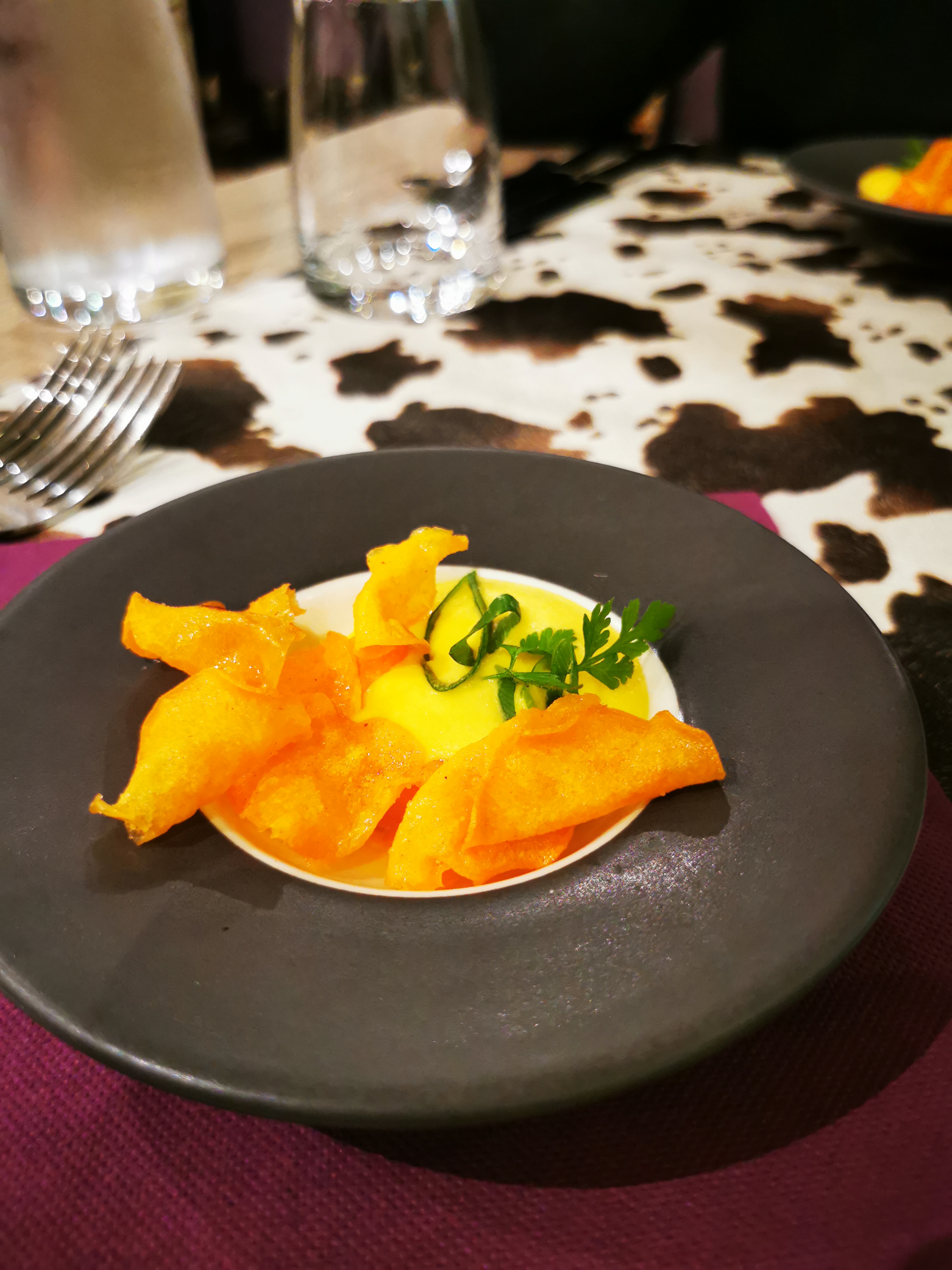 Accueil chaleureux, cadre cosy contemporain version chalet revisité aux tons pastels cérusés, confortables fauteuils design violets, cuisine créative et d'une belle fraicheur à déguster en toute intimité ( les tables sont suffisamment distantes les unes des autres ). Une belle expérience.