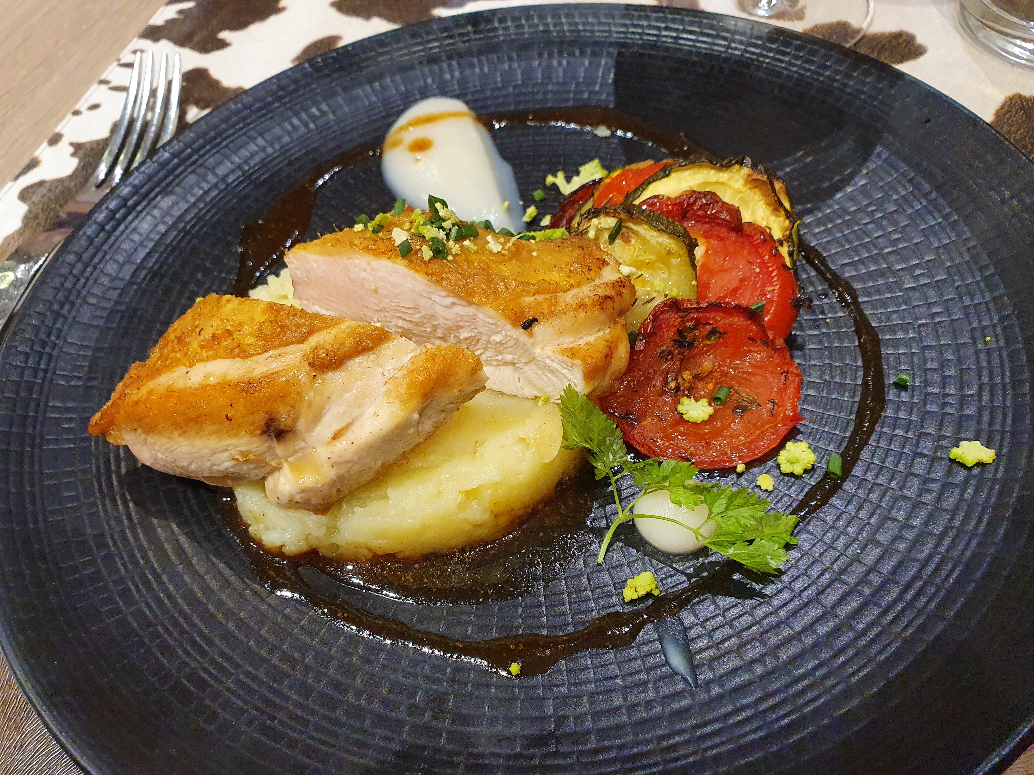Un délice, je me suis régalé, j'ai pris les suggestions du chef et je ne l'ai pas regretté, parfaitement bien assaisonné ni trop salé, ni trop gras cuisine française comme on l'aime de beaux et de bons produits bien préparés. je recommande très vivement.