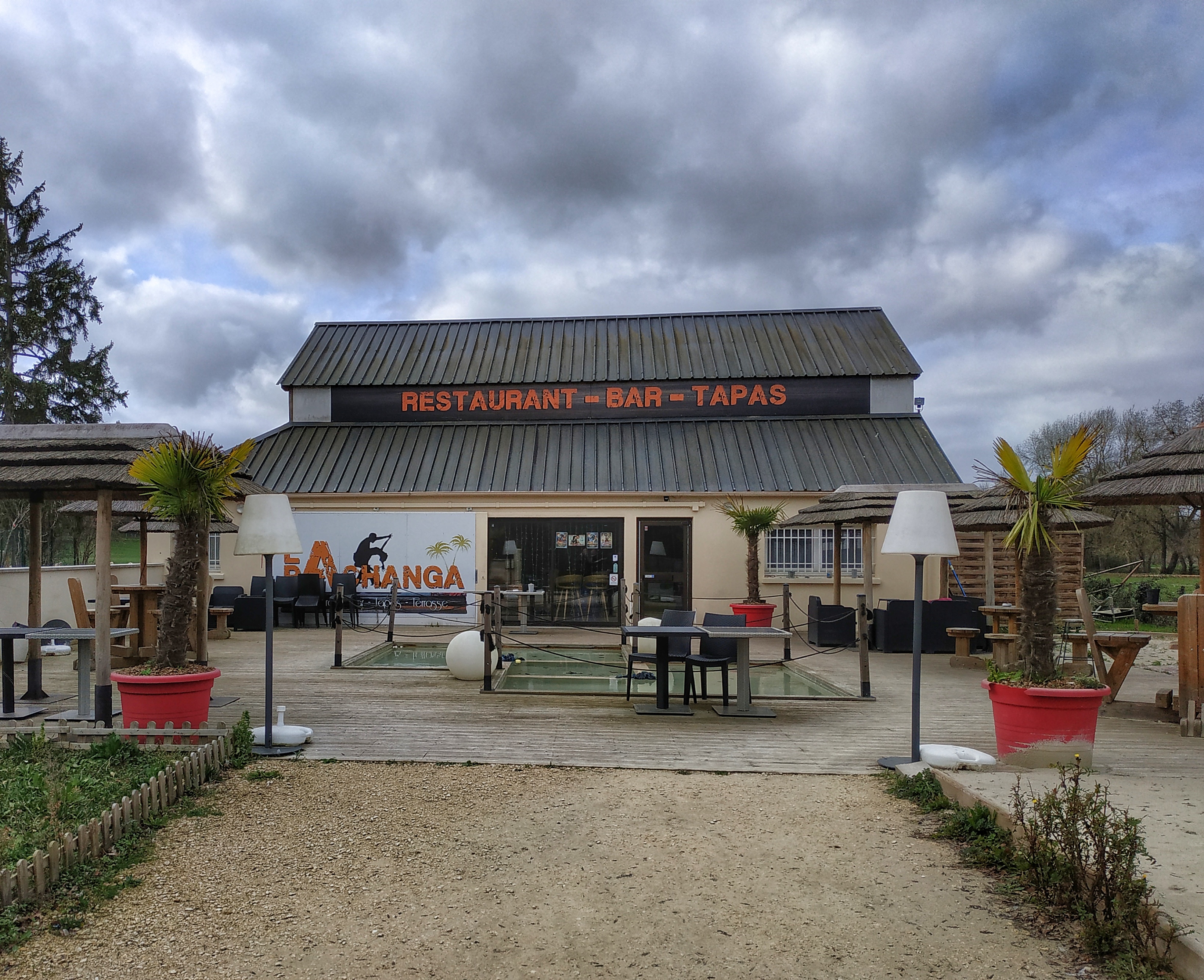 Places de parking à proximité. Terrasse avec décoration extérieure à thème (la plage version île paradisiaque, bassin décoratif, gazebo, parasols). Cette ambiance contraste avec le champs voisin dans lequel broutent des vaches... (En plein été, l'odeur doit gâcher l'expérience.) A l'intérieur, ambiance bois (plancher, poutres) plutôt chaleureuse. (Dommage qu'il y faisait si froid, en ce vendredi midi de février. Problème d'isolation ?). Carte exotique. Plats réussis (mais il faudra penser à rénover le service de table). Accueil et service à table énergique. (Accueil peut-être trop énergique ?) Prix corrects. En soirée, la salle semble faire piste de danse (latino).