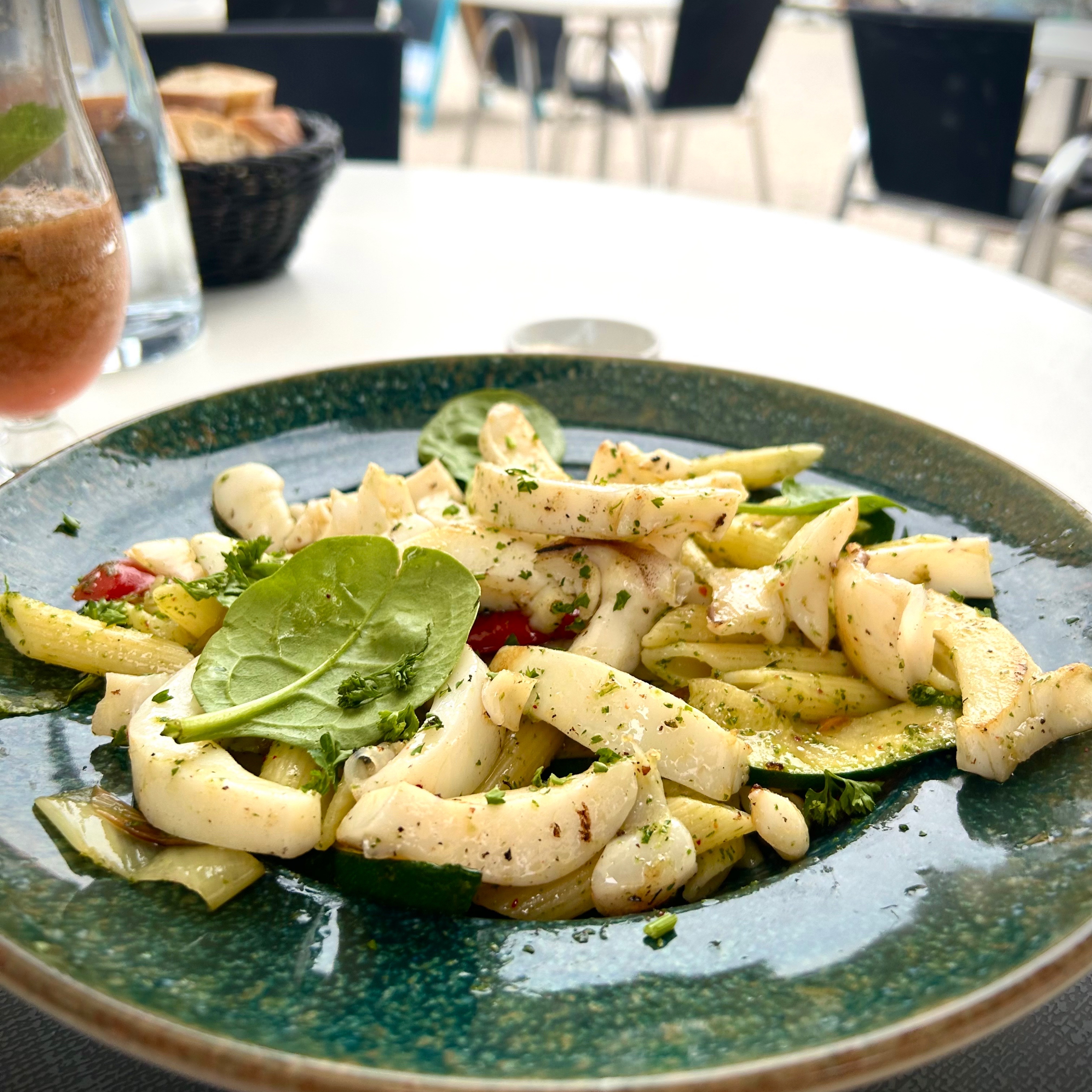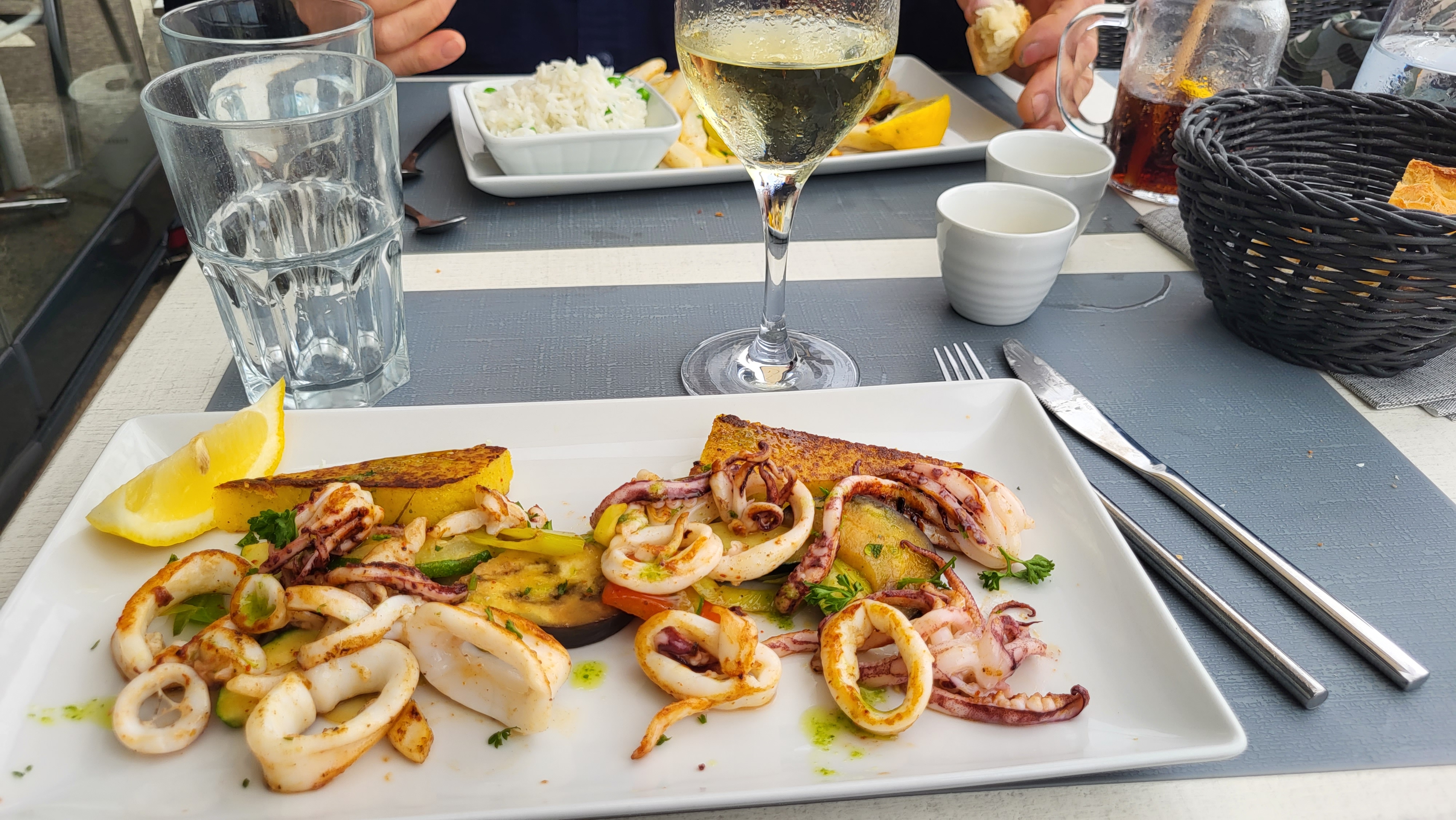 La seiche au piment et à l ail est excellente. Le personnel est souriant et agréable Nous avons mangé un dessert au citron délicieux je recommande et c est le long du port