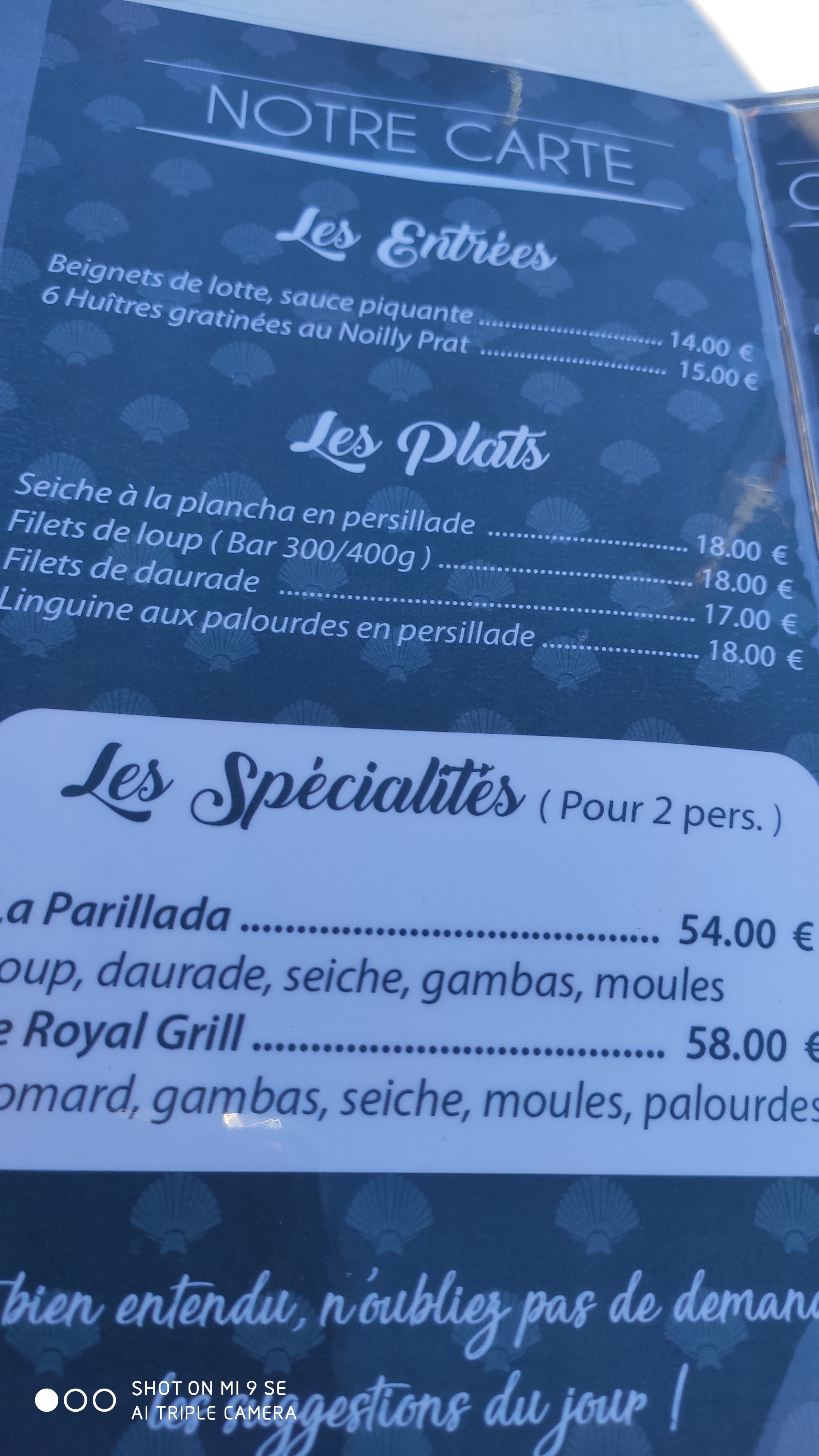 Excellent, l'assiette homard, seiches, moules à 60€ pour deux très bon rapport qualité prix 👍 Dommage accueil un peu froid
