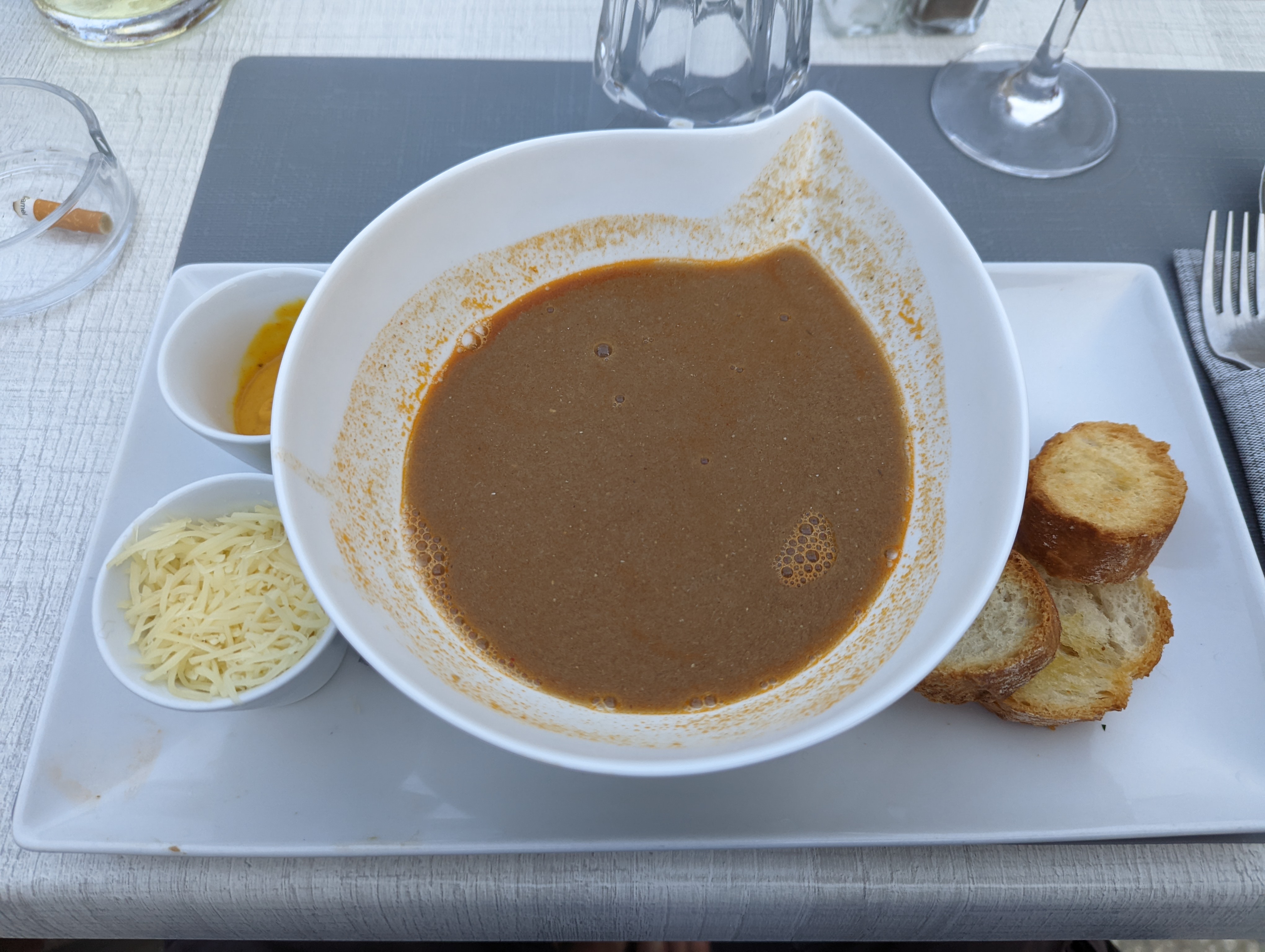 Pour la soupe de poisson très fade , pour le plat je commande un turbo ,on me sert l'arrête, après réflexion auprès du patron la réponse, c'était le dernier, alors je vous le déconseille cette adresse