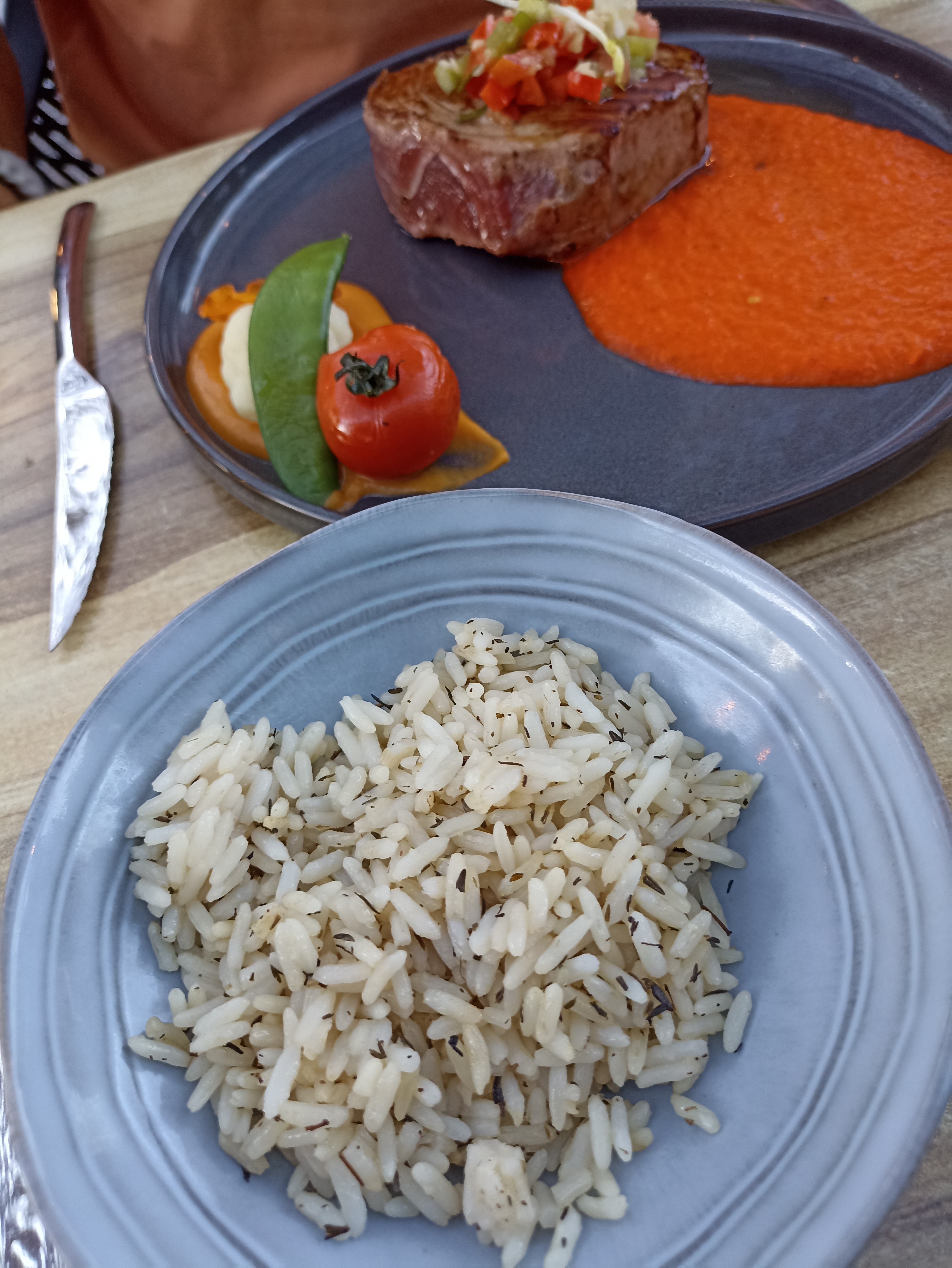 A peine après avoir reçu nos apéritifs, nous avons reçu nos plats. Du coup, soit on terminait rapidement son apéritif, soit on en profitait normalement... et notre plat était alors refroidi... Nous avons pris un padene, comme nous avions déjà apprécié à plusieurs reprises ce plat. Mais il n'y avait comme légumes que quelques tomates, alors que nous recevions auparavant aussi des poivrons, carottes, gourmettes,... grillés. Nous apprécions en général beaucoup ce restaurant mais nous avons néanmoins été déçus du plat et du service.