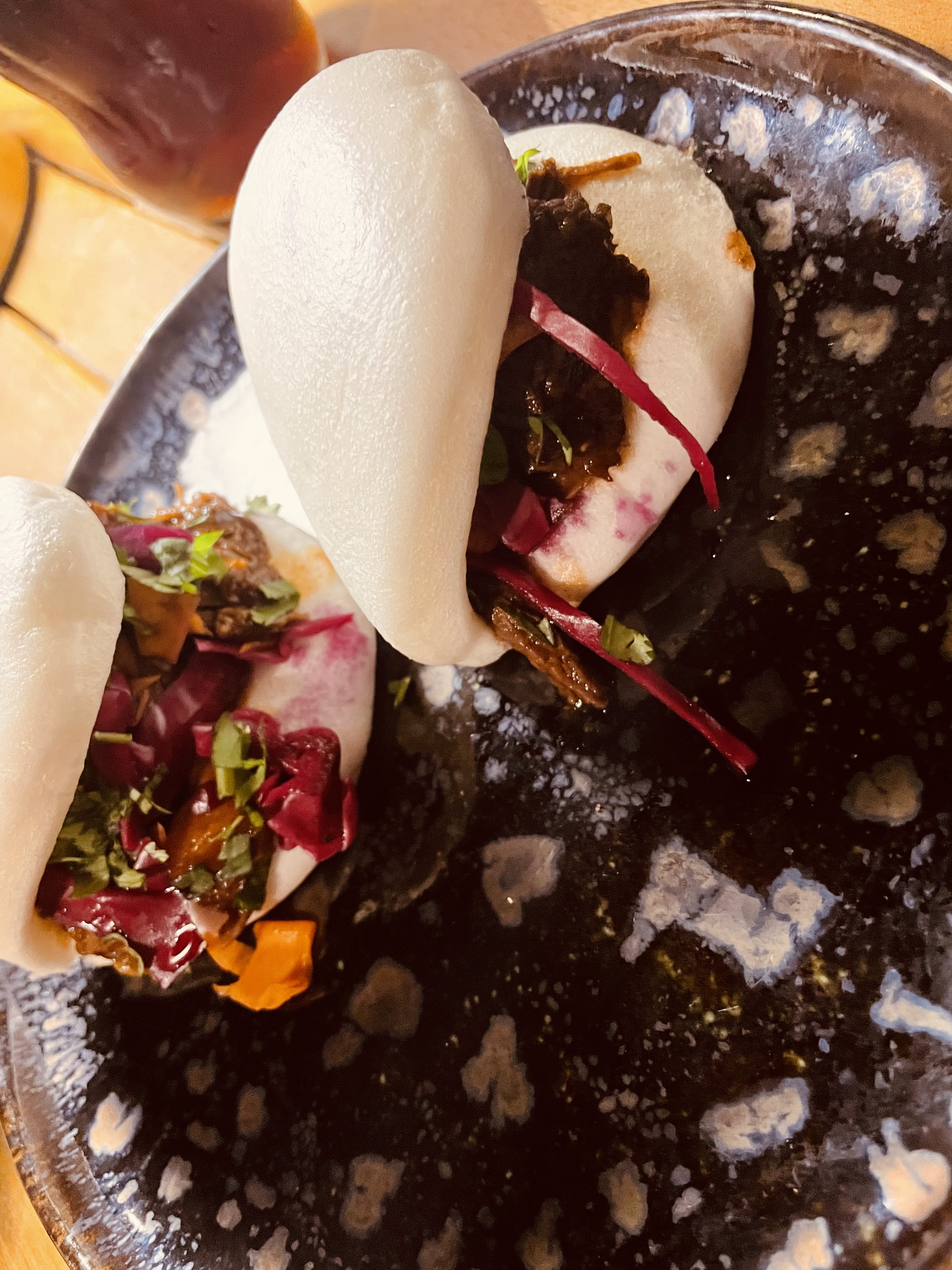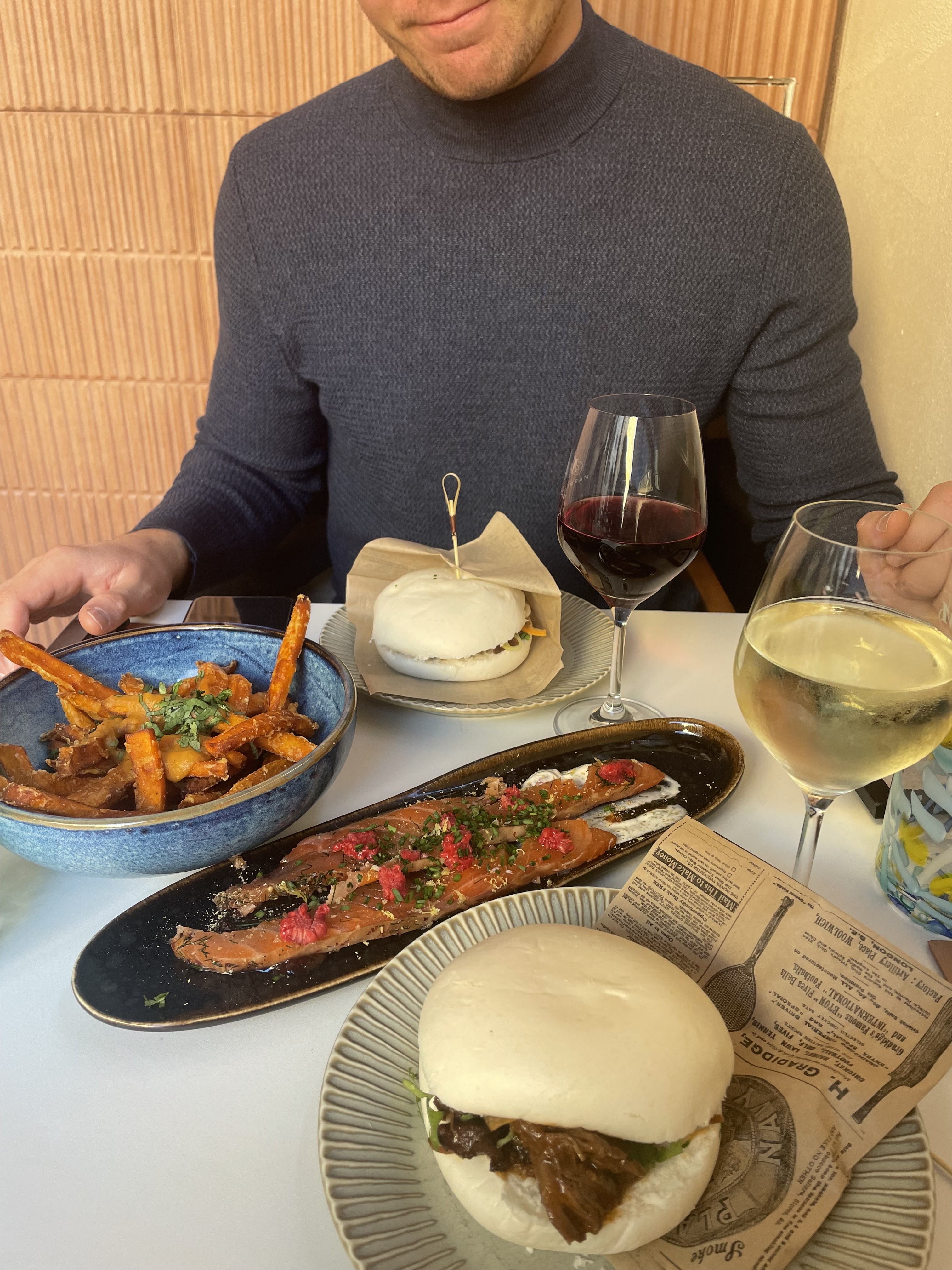 Nouveau restaurant avec un concept qui repose sur le partage! Une adresse proposant une cuisine vivante, des cocktails réfléchis, des plats cuisinés en petites portions bien souvent à partager. Derrière ce restaurant se planquent deux gamins du quartier, des potes depuis la maternelle! Nous avons pris : Gyosas à la crevette, sauce aigre-douce & ciboulette & panisses à l'ail et romarin coupés au couteau, mayonnaise aux herbes acidulées / Filet de boeuf marqué au grill puis mariné façon tataki, coriandre, citronnelle & piment - Buratta, Truffe & Basta - Premier butternut d'automne servis en gnocchi, crême fusé à la sauge et au parmesan - Bao monté sur l'instant à l'effloché de bœuf confit de 48h, pickles & condiment fumé