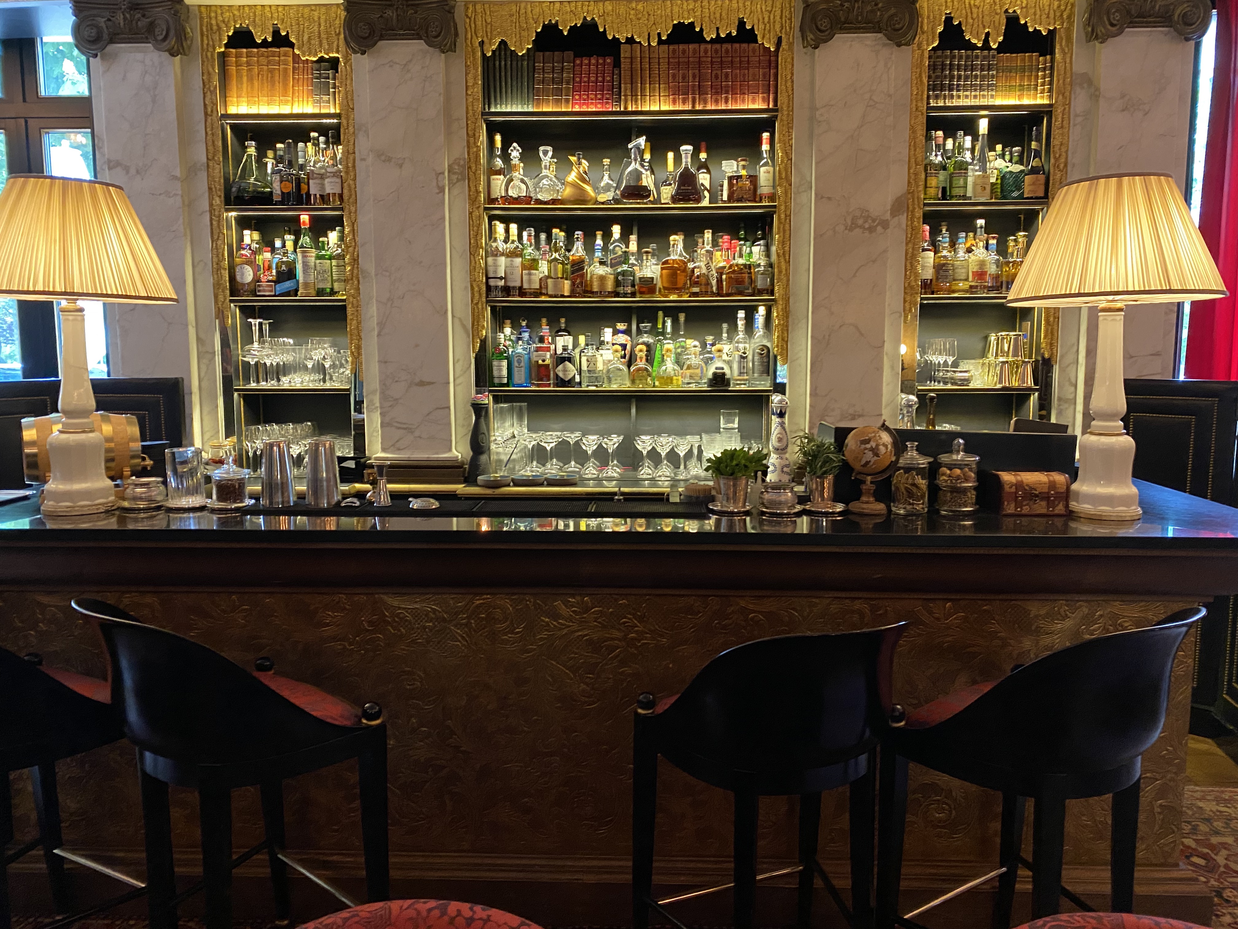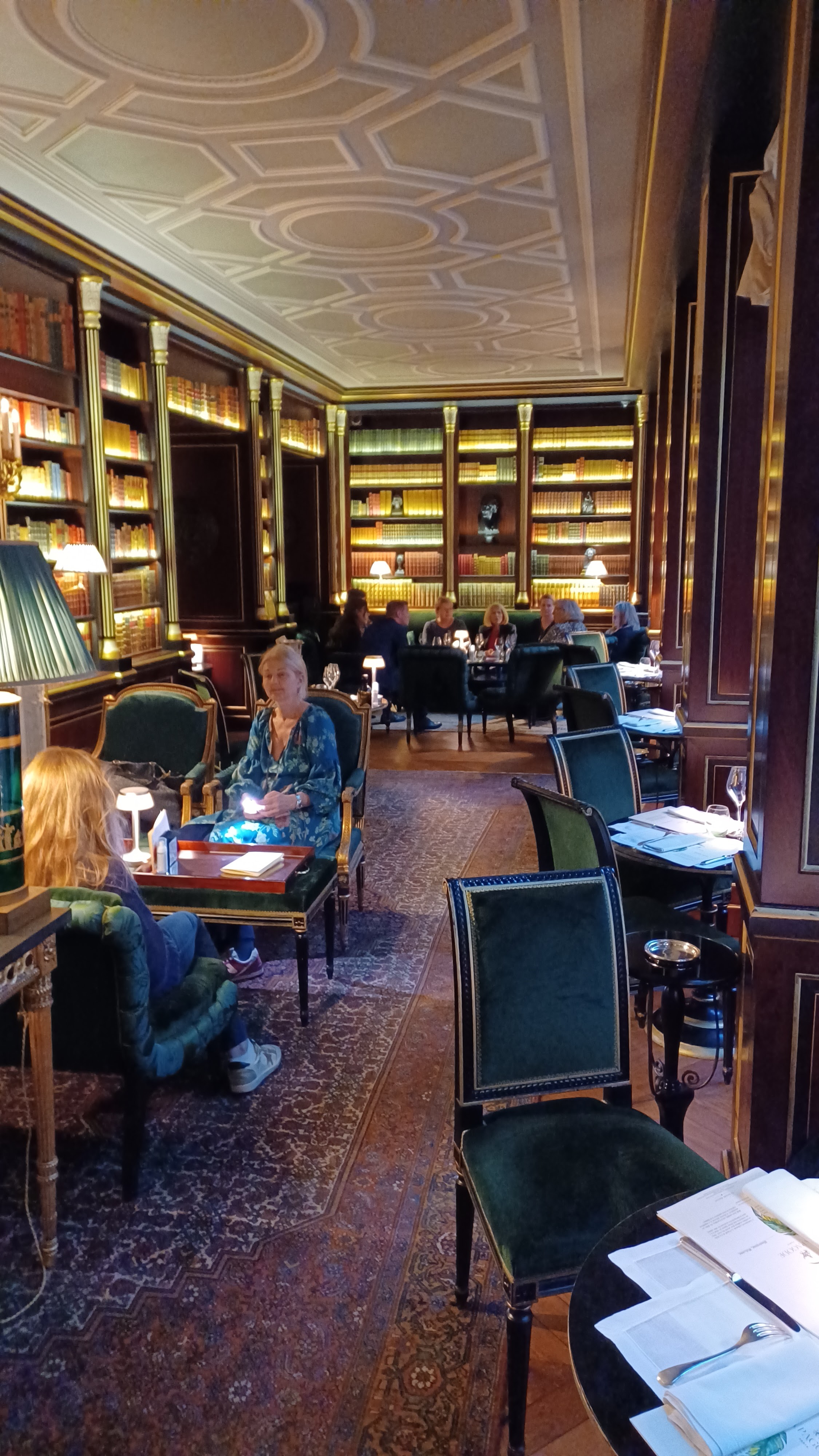 Nous avons dîné dans la bibliothèque, c’est un très bel endroit, raffiné et intimiste. Le personnel de tout l’hôtel, et du restaurant, est particulièrement attentionné sans être dérangeant, ce qui mérite d’être souligné. Le lieu est superbe. Dommage que la musique soit si forte et gêne la conversation. Moment très agréable, clientèle de grand hôtel mélange de noceurs, étrangers fortunés et professionnelles. Seul bémol, la cuisine qui est bonne mais exagérément chère (par ex. le pain était quelconque et les desserts manquaient d’originalité).