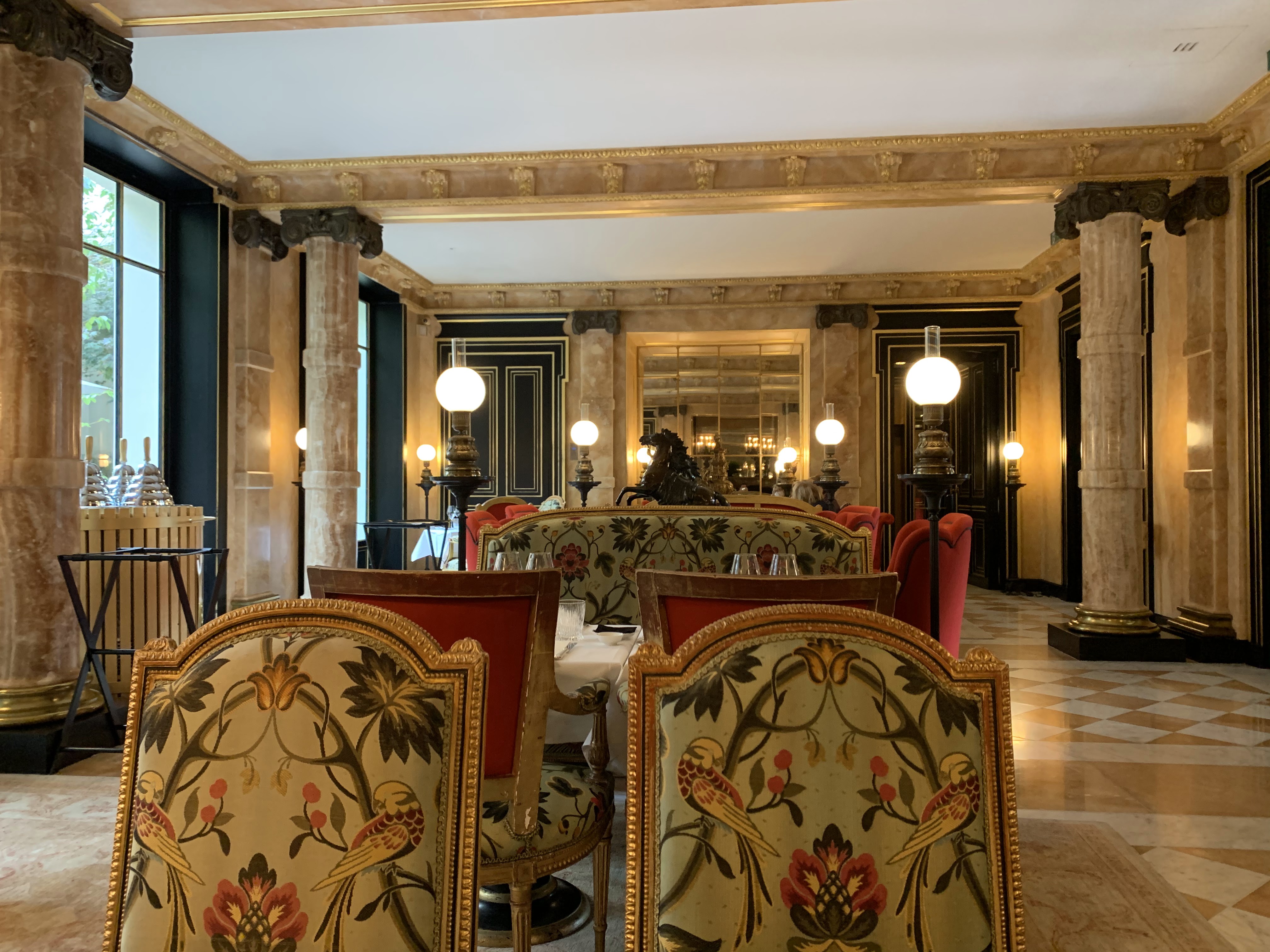 1h15 d’attente pour ne pas être servies Serveur fuyant et terrorisé par ce qu’il peut dire en cuisine Aucun service en salle sauf à faire des grands signes avec les bras en espérant être vues Une responsable aux explications vagues sur un changement de carte mal géré par la cuisine 2 tables d’hommes arrivés après et servies avant mais nous aussi c’était un déjeuner de business On a perdu 1h30 et on est parti sans déjeuner Encore une chance que on ne soit pas des touristes étrangers qui garderaient une image piteuse d’un palace parisien
