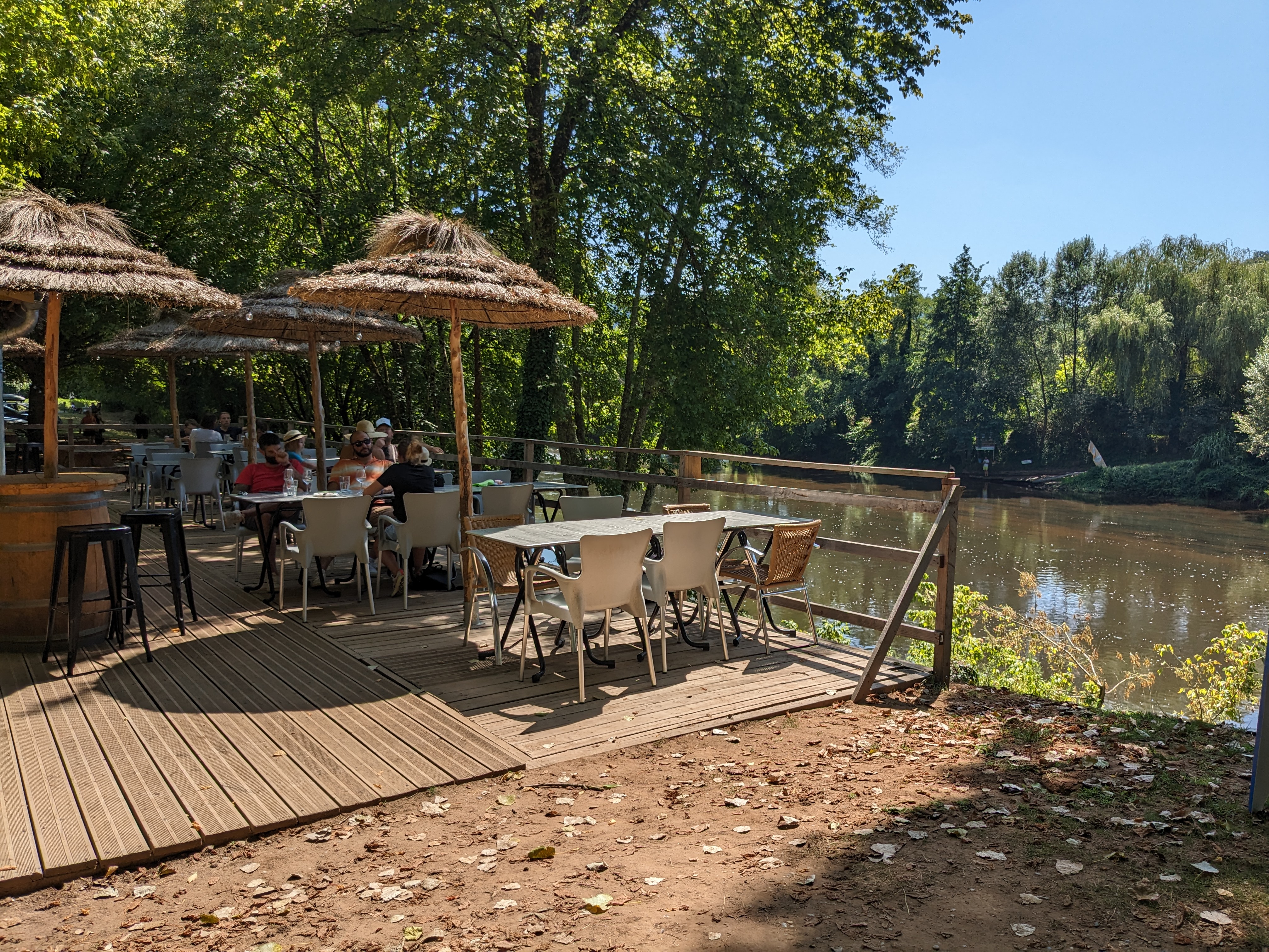 Superbe endroit au bord de la Vézère, cadre atypique sous les parasols en paille, parfait pour boire un verre. Je recommande vivement pour une profiter de la meilleure expérience aux Eyzies! En plus le monsieur derrière le comptoir est vraiment sympa!
