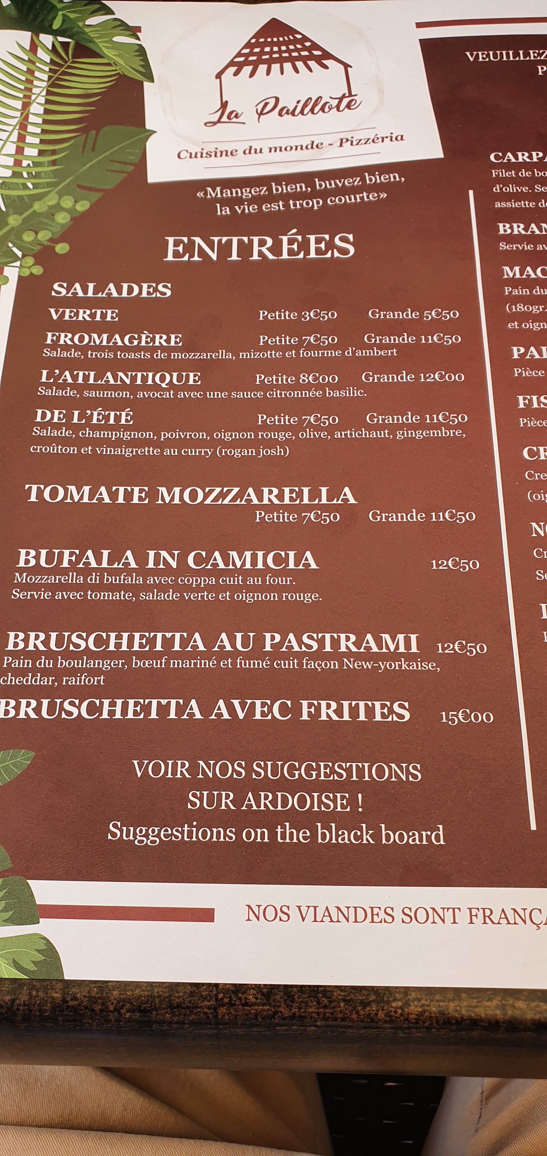 Différents types de plats sont proposées pour un bon rapport qualité/ prix, la spécialité moule frite paillote est vraiment excellente, les salades sont très bien garnies! Accueil sympathique et service rapide.