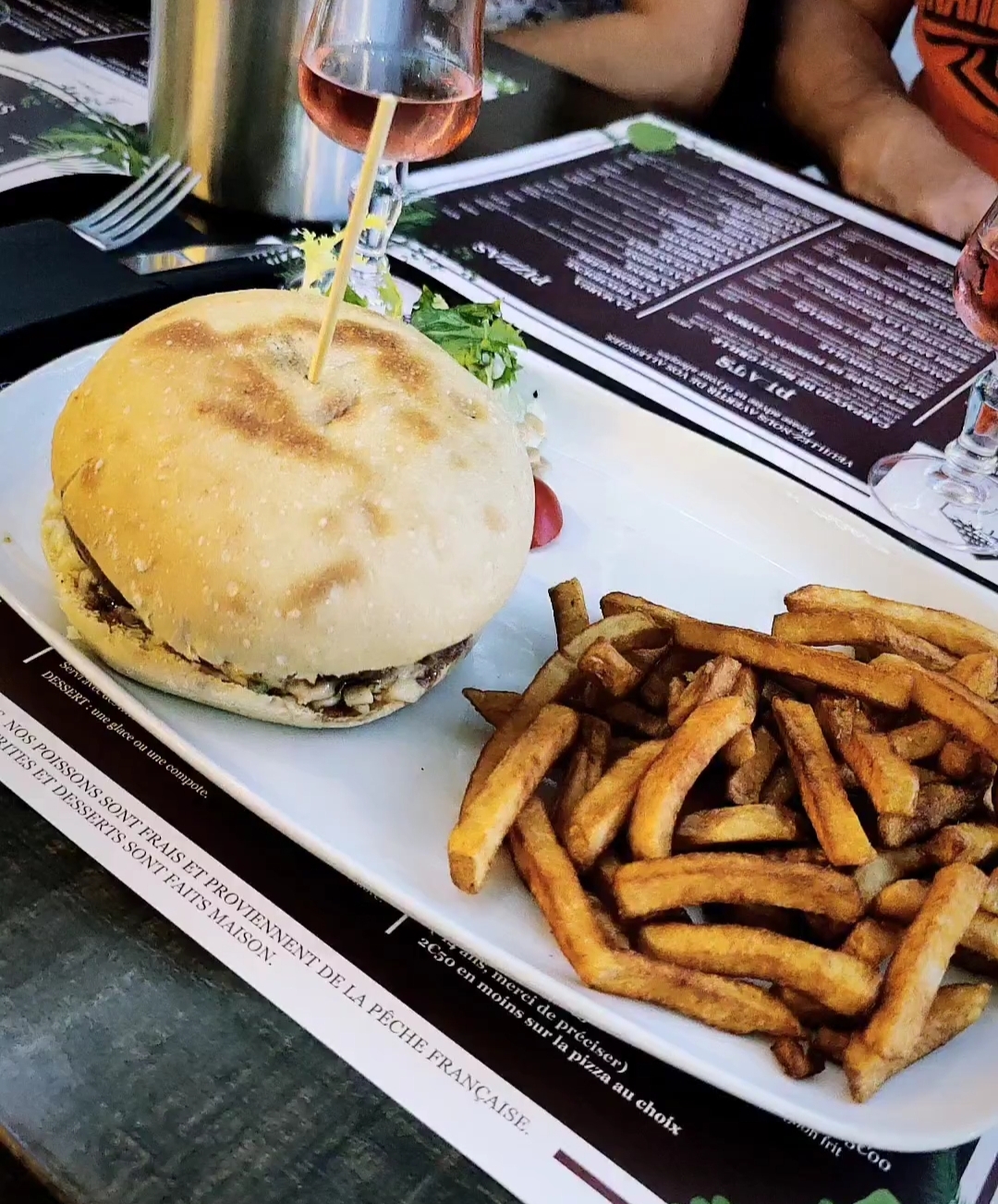 Nous avons pris les burgers (le fameux Mac Doudouille), une catastrophe, viande archi cuite, pain burger presque cramé, frites douteuses (certainement recuites et trop salées), burger très sec, pas de sauce dans les burgers. Nous avions pris le menu enfant pour mon fils (nuggets poulet qui avait goût de poisson). Serveurs pas professionnels du tout mais serviables. La patronne a été très commerçante et nous a offert les apéros, je tiens à le signaler.