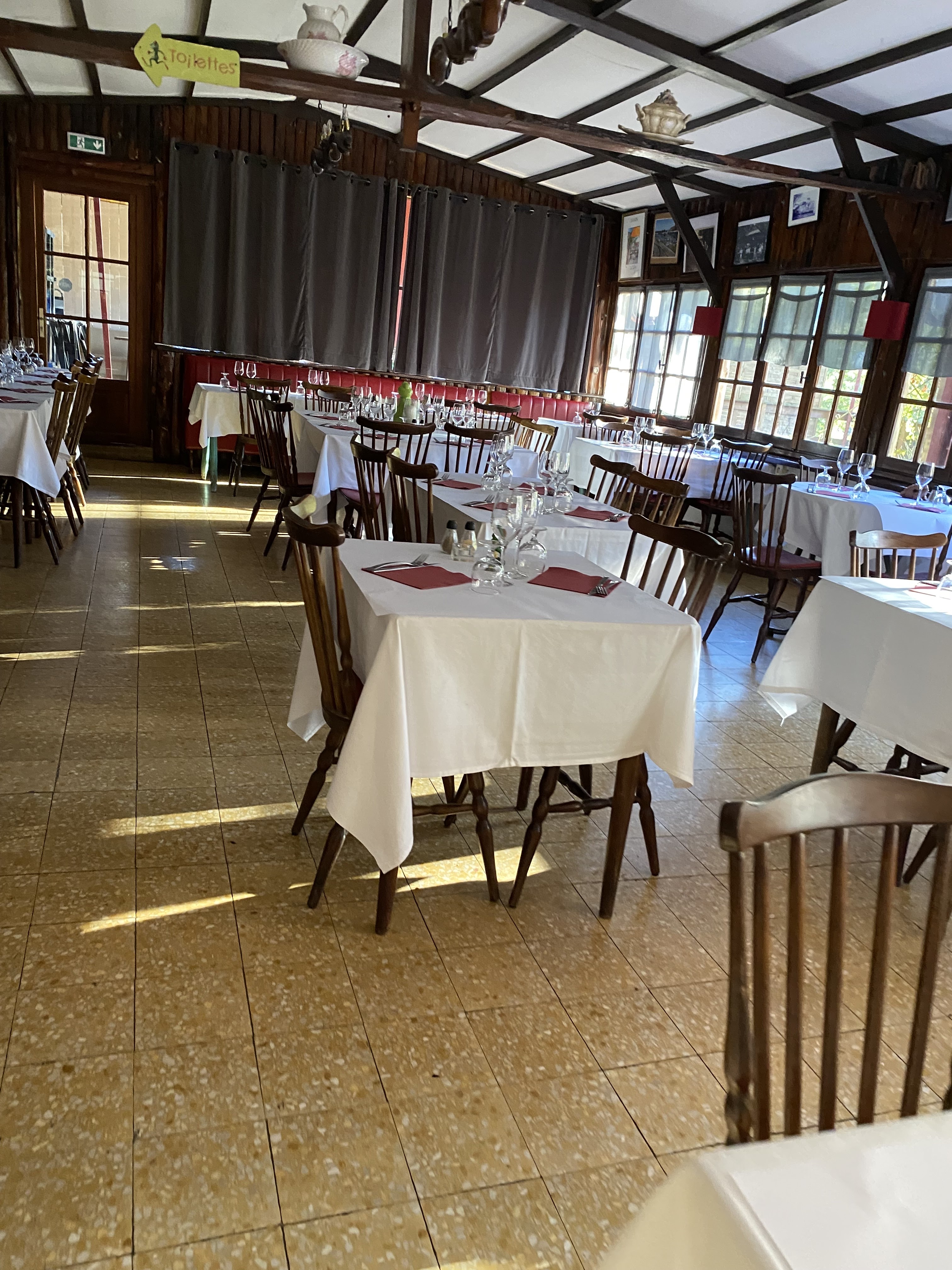 On est venu un dimanche. Je trouve les prix un peu cher. Typiquement menu à 36 euros, il n'y a pas d'accompagnement avec les grenouilles (même pas de frite ni de salade) Ensuite, diabolo grenadine pour mon enfant (parce que ce n'est pas compris dans le menu enfant) : 4 euros. Les points positifs sont le parc enfant pour laisser jouer les enfants pendant qu'on mange et le personnel plutôt chaleureux, même si en ce début mai, les serveurs étaient encore à se poser la question des numéros de table.