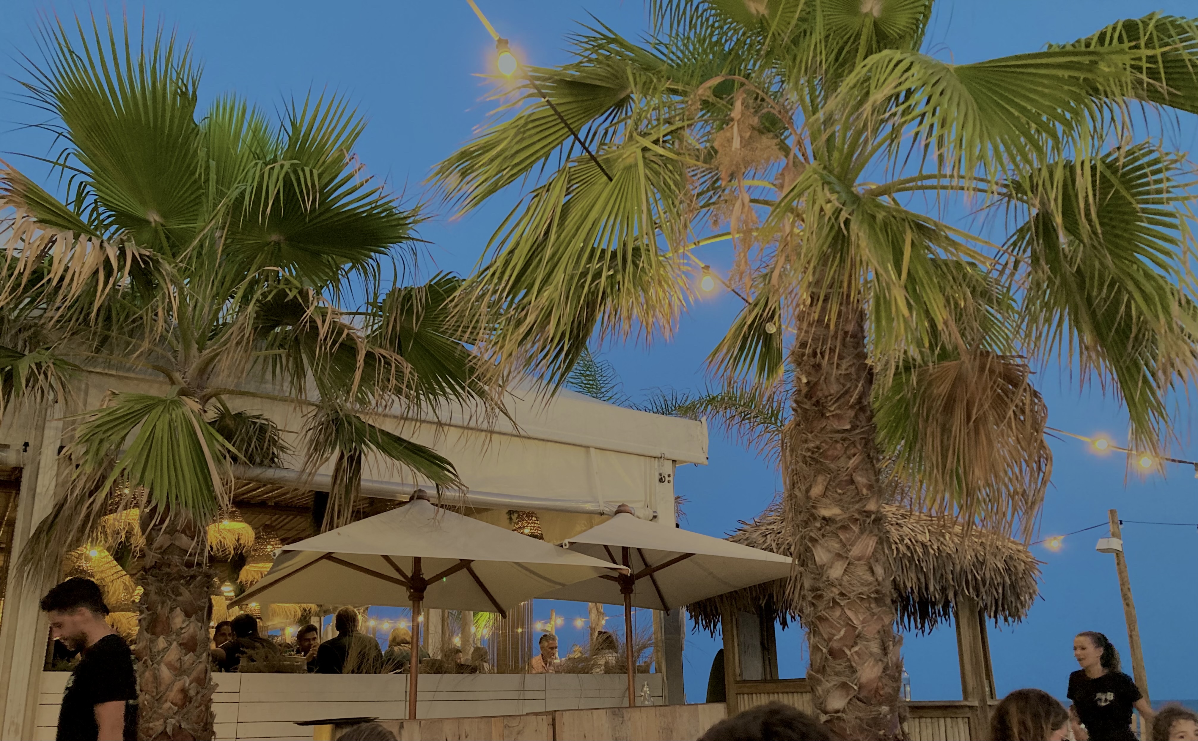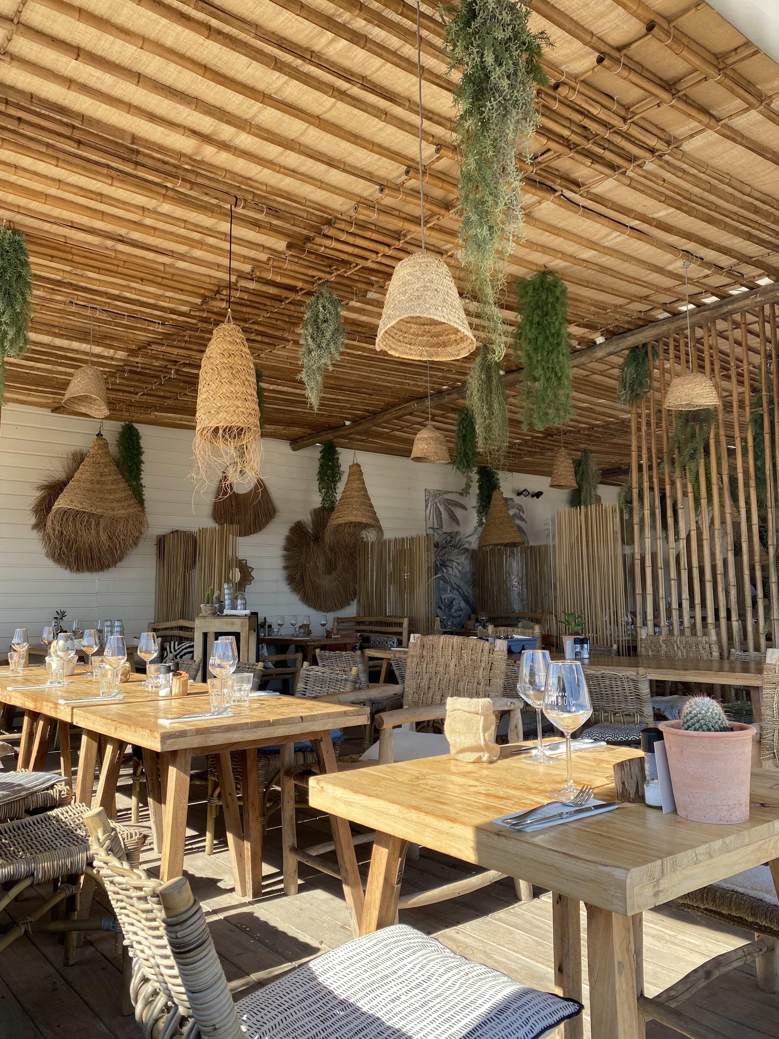Lieu très sympathique avec une bonne ambiance Vous pouvez y prendre l'apéro avec des tapas plat à partager ou vous pouvez y manger au restaurant à la carte Bel endroit sa décoration est avec goût et se fond parfaitement avec la plage Le personnel est sympa tant les serveur et serveuse ainsi que les agents de sécurité Toutefois il est vrai qu il y a un petit détail à mentionné, les prix sont assez élevés mais le cadre se paye