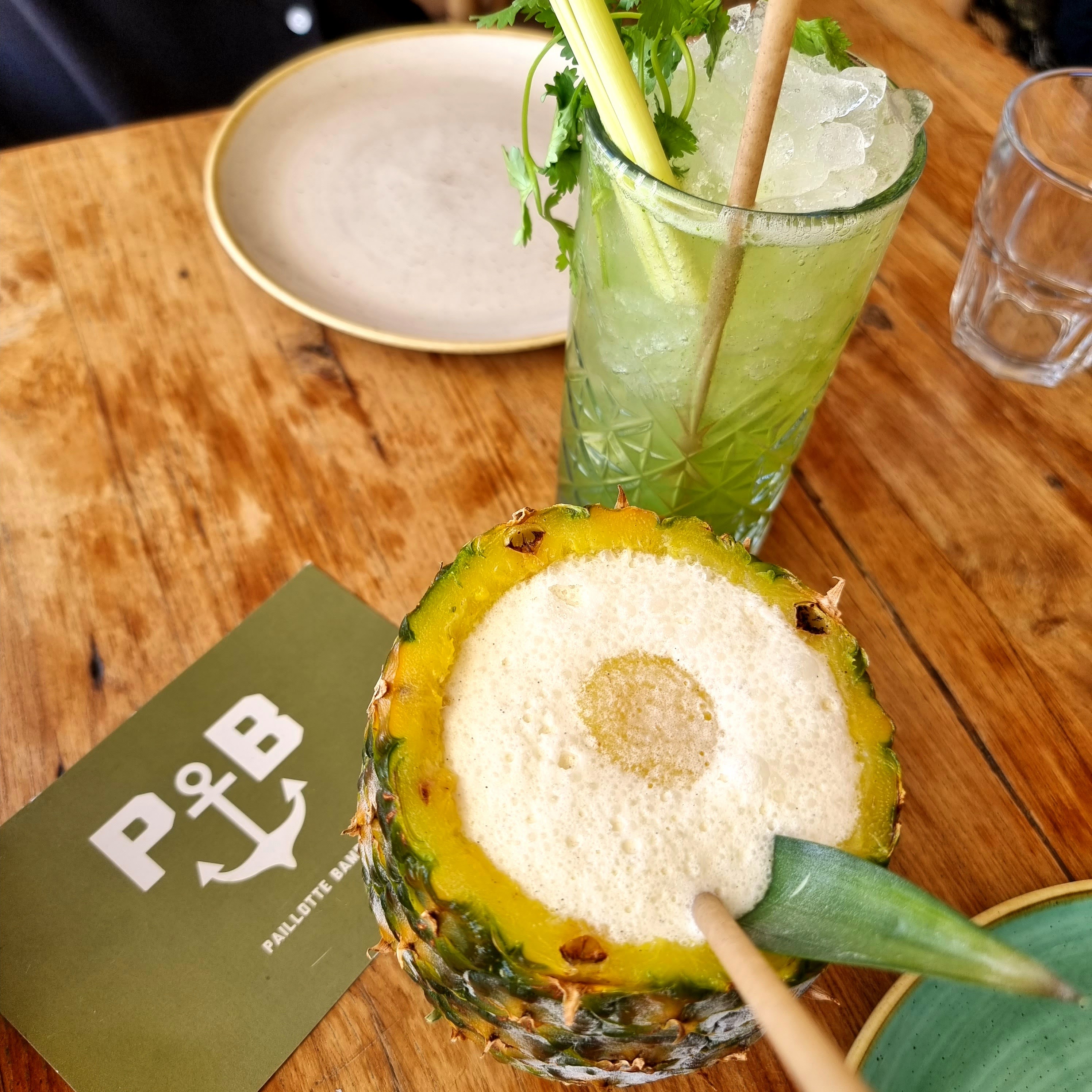 Sympa, belle déco, cocktails sympathiques. Belle paillote. Parking payant appartenant à la paillote bambou un peu plus haut 5€.
