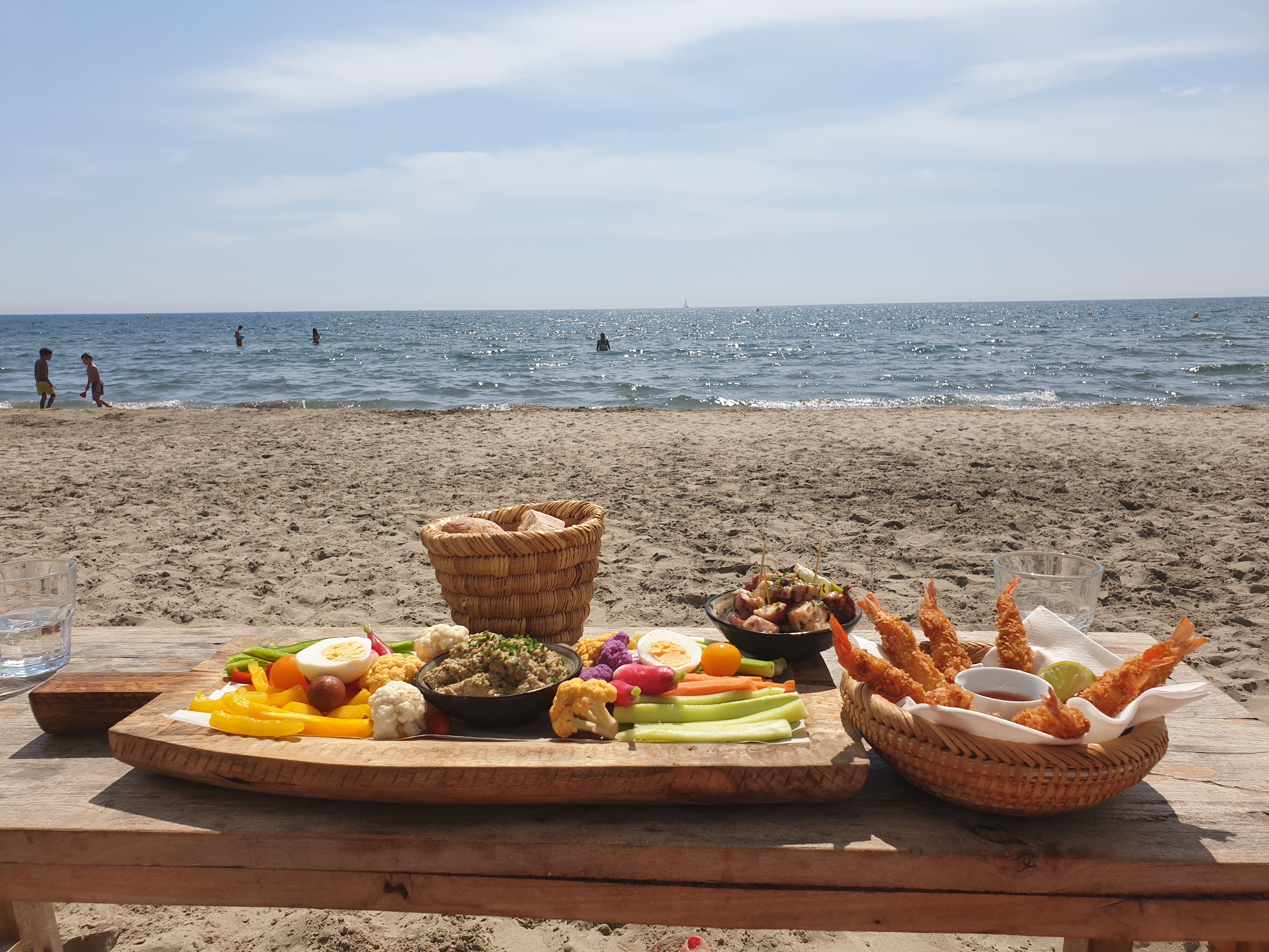 Cadre au Top ! Les pieds dans le sable, serveur jeune et sympa qui ne se prenait pas pour un Cador, plutôt rare sur ce genre de plage ! Bonne musique. Cocktails originaux. En dehors des fruits de mer qui sont bien frais et bons, les plats laissent à désirer. Boboon pauvre et sans saveur, la viande servie avec une demi tomate cuite et une cuillère de caviar d’Aubergine. L’accompagerment est vraiment ridicule. Obligé de commander un complément de légumes croquants à 4 euros. C’est volontaire à mon avis. A ce prix ça doit suivre quand même ! Un minimum ! Baba au rhum énorme. Mais bon ! Ne nous gâchons pas ce bon moment passé sur cette plage !