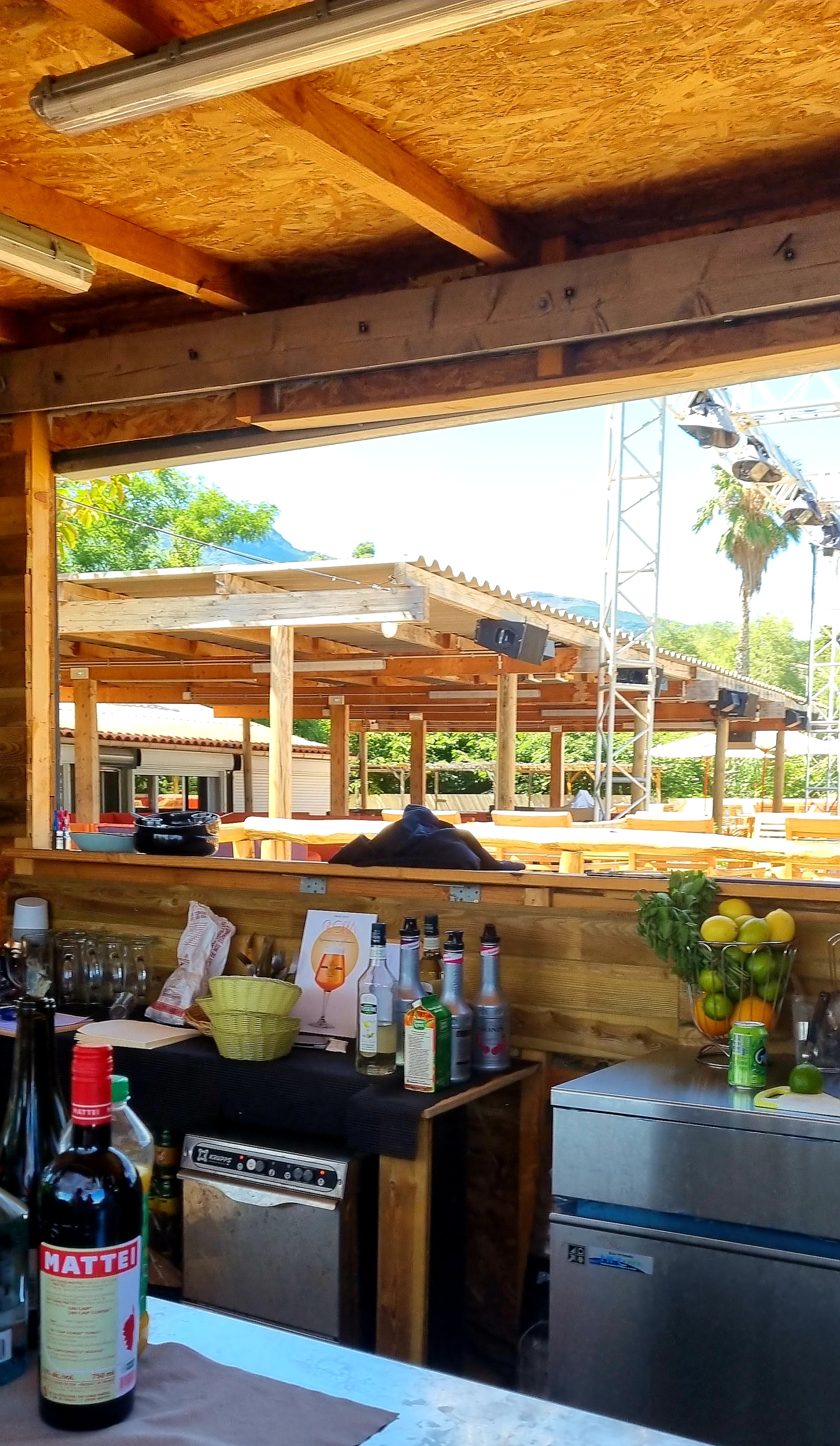 Lieu avec terrasse en bois en bord de mer, cadre plutôt sympa, bouffe pas terrible, équipe pas très sympa, il y a souvent des concerts ce qui me fait mettre 2 étoiles.