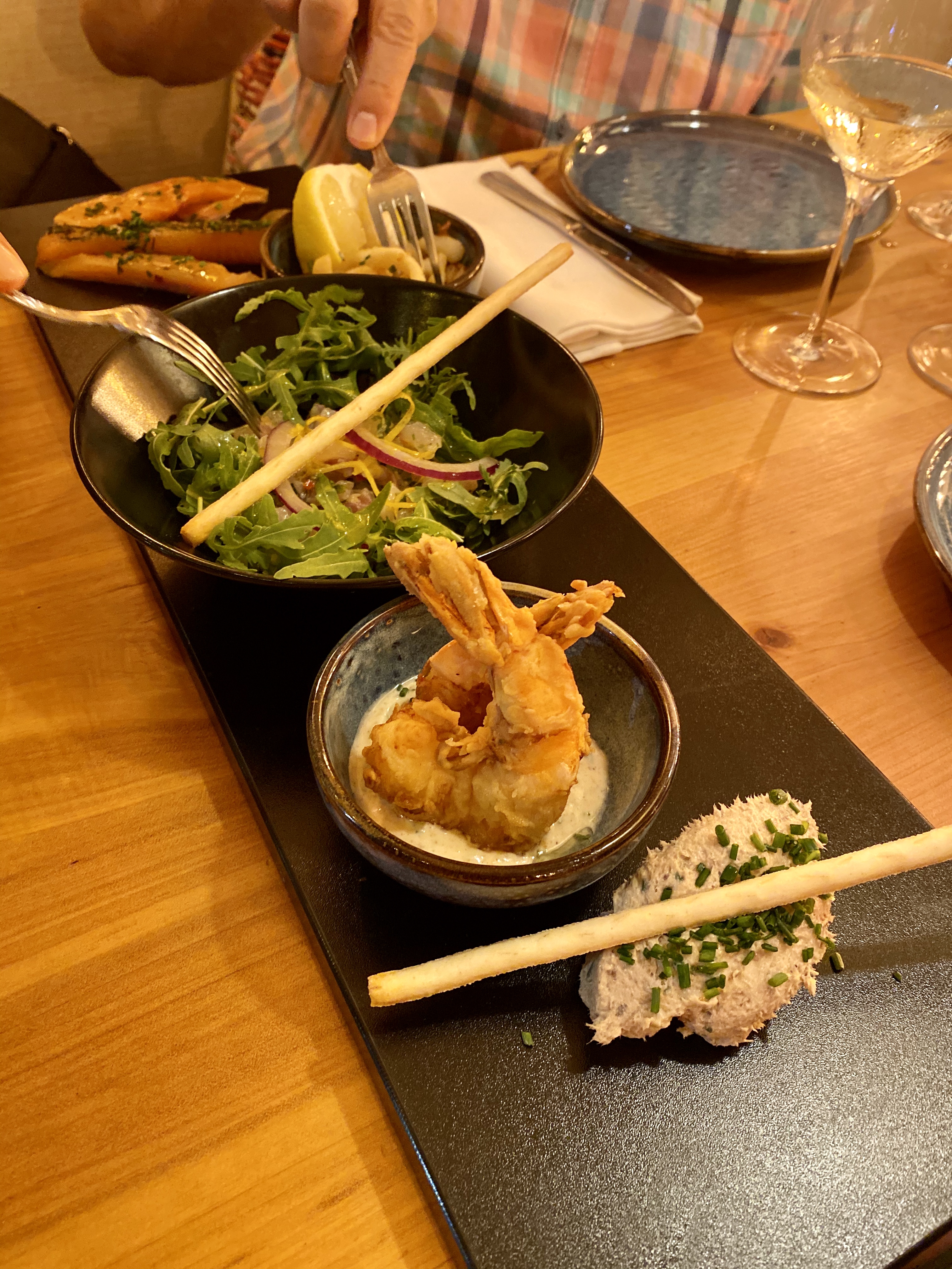 Excellent repas. Le plat le plus mémorable était l'apéritif de crevettes royales avec une sauce au beurre de gingembre et aux herbes. Dans l'ensemble très bien et je le recommande vivement.