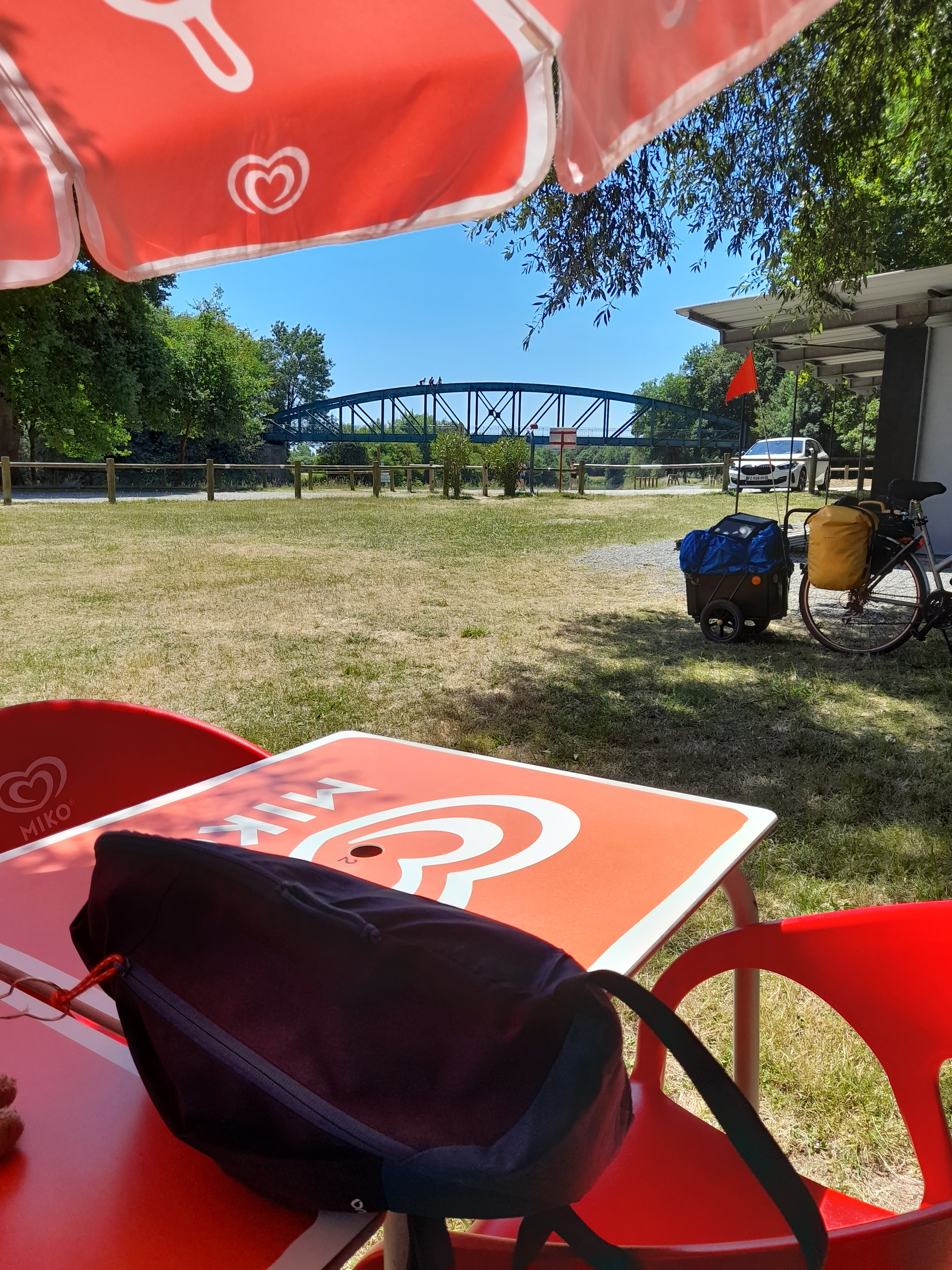 Une véritable aubaine quand vous voyagez à vélo le long du canal, fatigués, affamés et assoiffés ! Quelle pause réconfortante ! On aimerait en trouver partout.