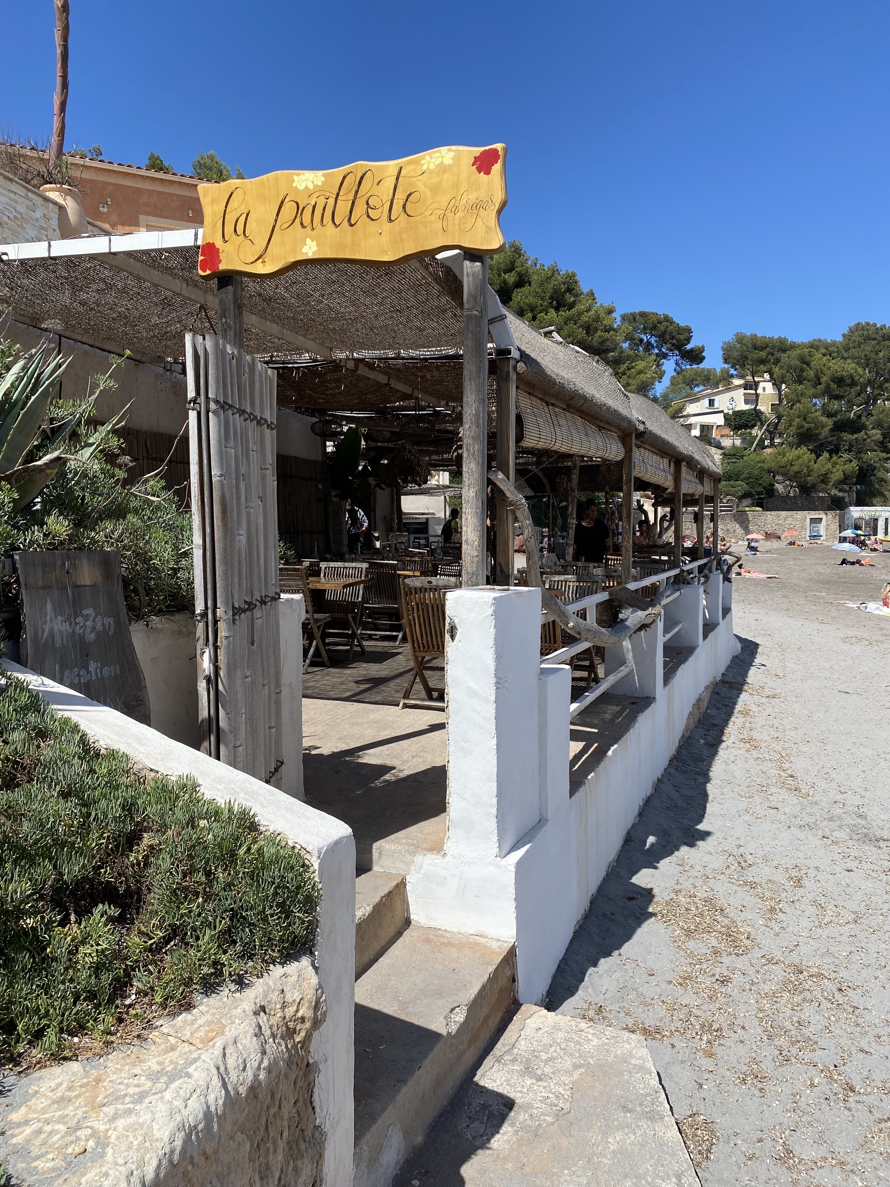 La paillote fait partie des rares adresses où vous pouvez encore vous installer quasiment les pieds dans le sable, dans une crique sauvage et face à la mer, bien protégés du vent... Les plats y sont délicieux et les portions généreuses, les prix très en phase avec leurs belles assiettes. Pour avoir eu le temps de papoter un peu avec la gérante, leurs produits sont ultra frais, elle met un point d'honneur à utiliser des oeufs bio (ce n'est quasiment jamais le cas dans d'autres restaurants), la pêche est du coin, bref... allez -y ! une belle éthique et en plus on se régale...!