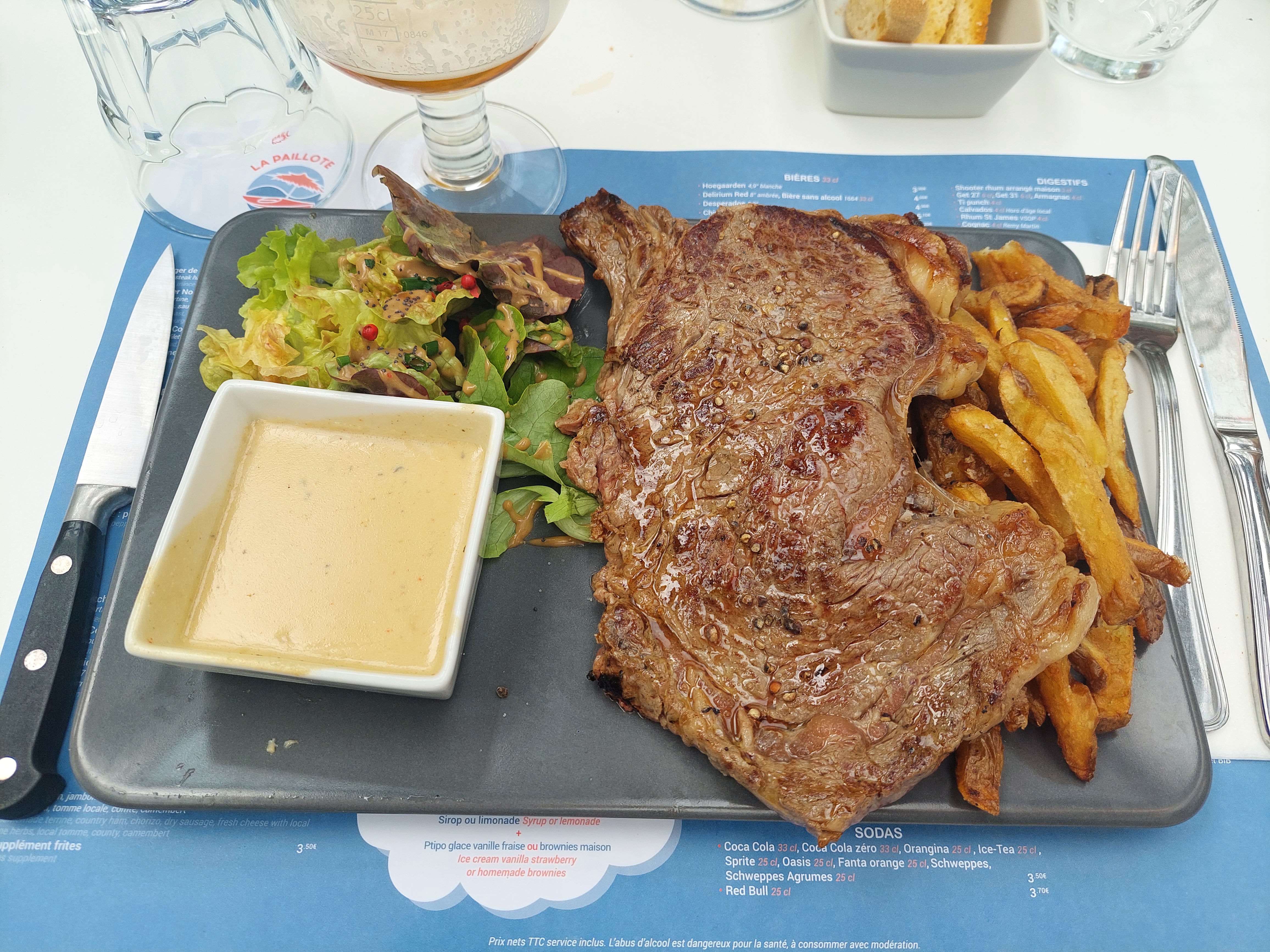 Tres bon moment passé entre amis a l'occasion d'une ballade moto. Le service était dynamique et soigné, aucun raté malgré notre table de 16 personnes, important de le souligner. La piece de bœuf 250g (18€) est passée comme une lettre a la poste, viande de qualité pour un prix non excessif, un plaisir. Dessert coupe trois boules, vaste choix dans les parfums. Je reviendrais avec mes proches et je recommande cet endroit !