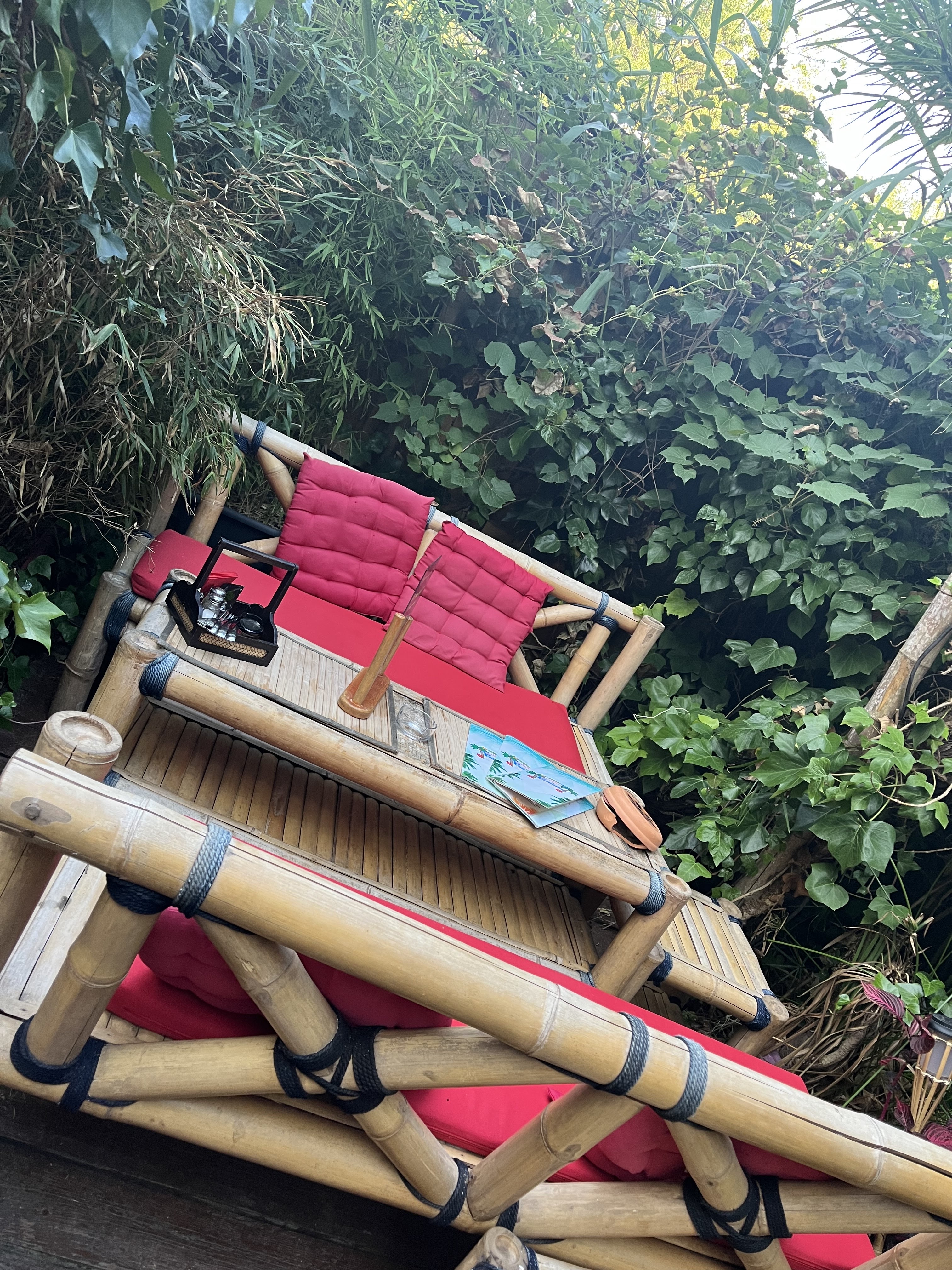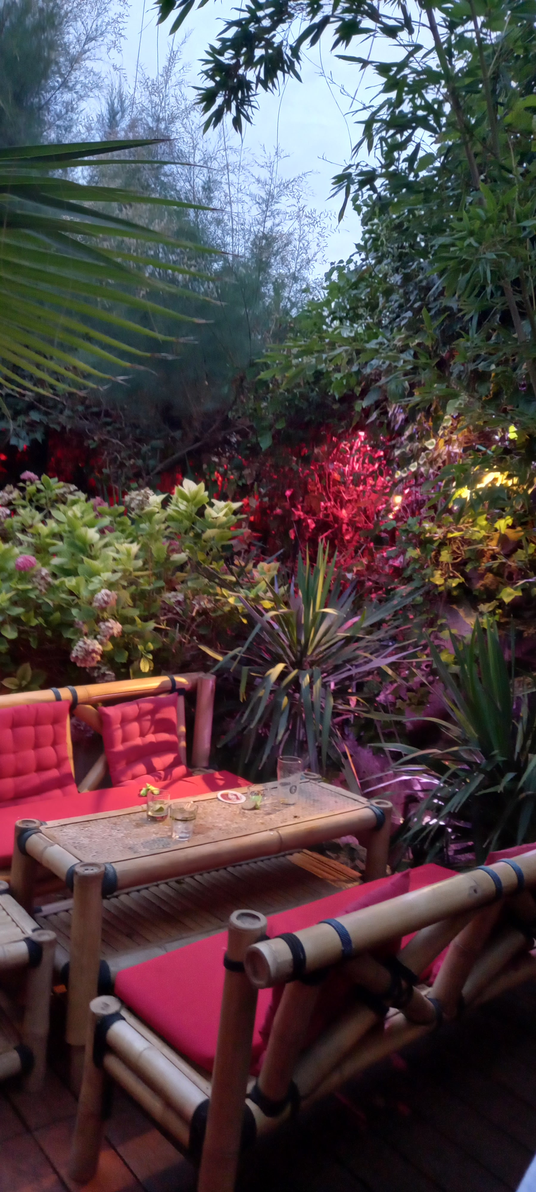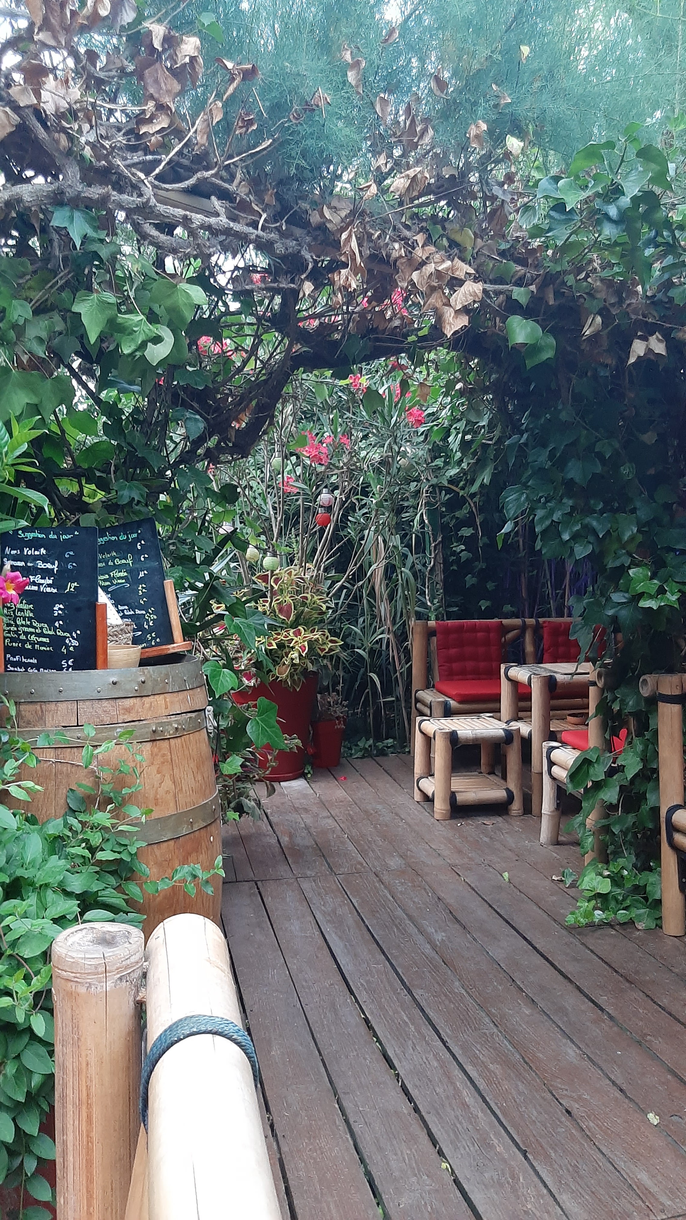 Un lieu paradisiaque. Les tables et la décoration sont soignés. Elles sont espacées entre elles créant intimité et confort. la décoration du jardin est un vrai plaisir. les plats sont très bon et joliment décorés. le bar est sympathique. il y a des hamacs pour inviter à la tranquillité. Bravo pour ce lieu.