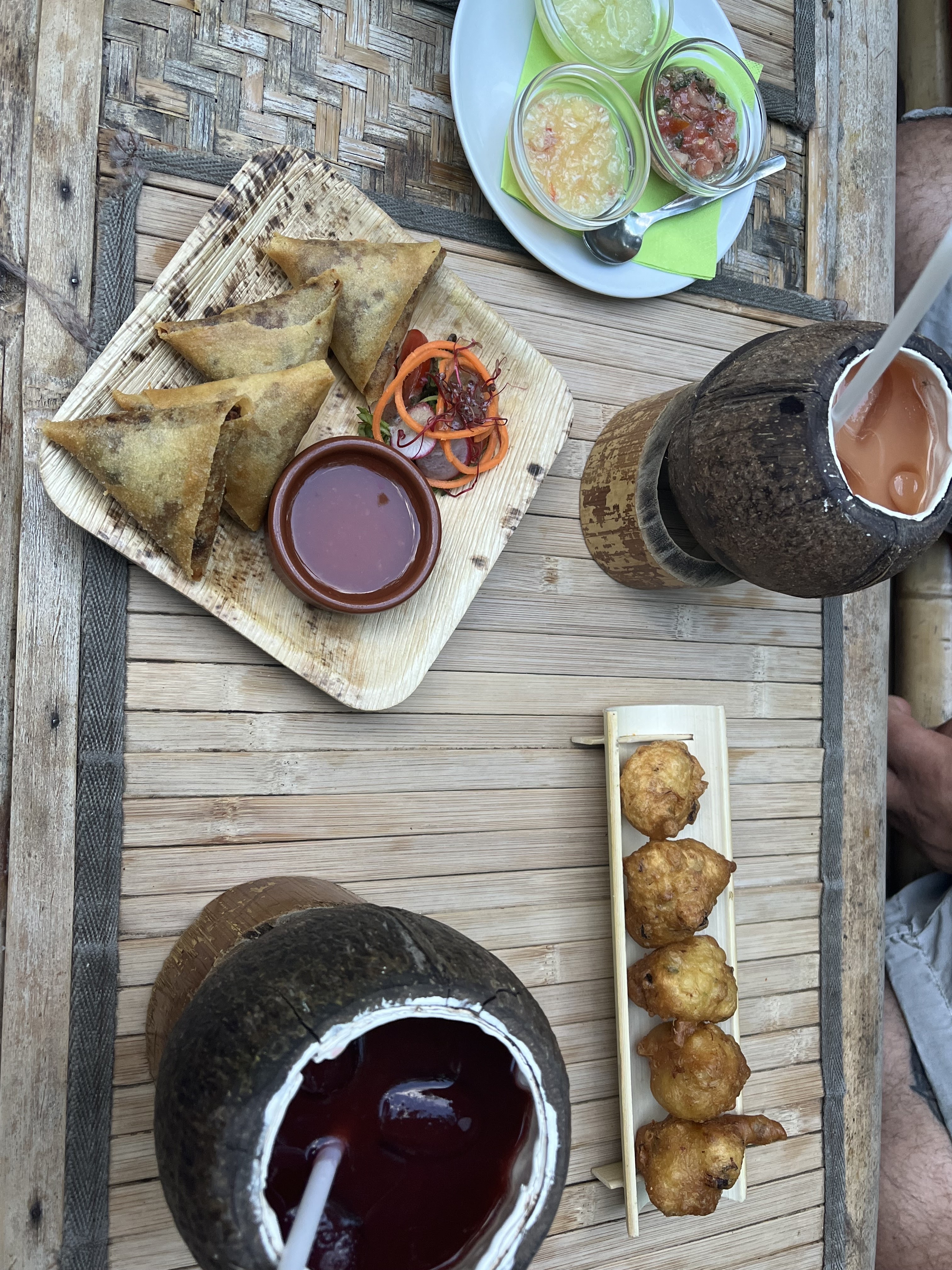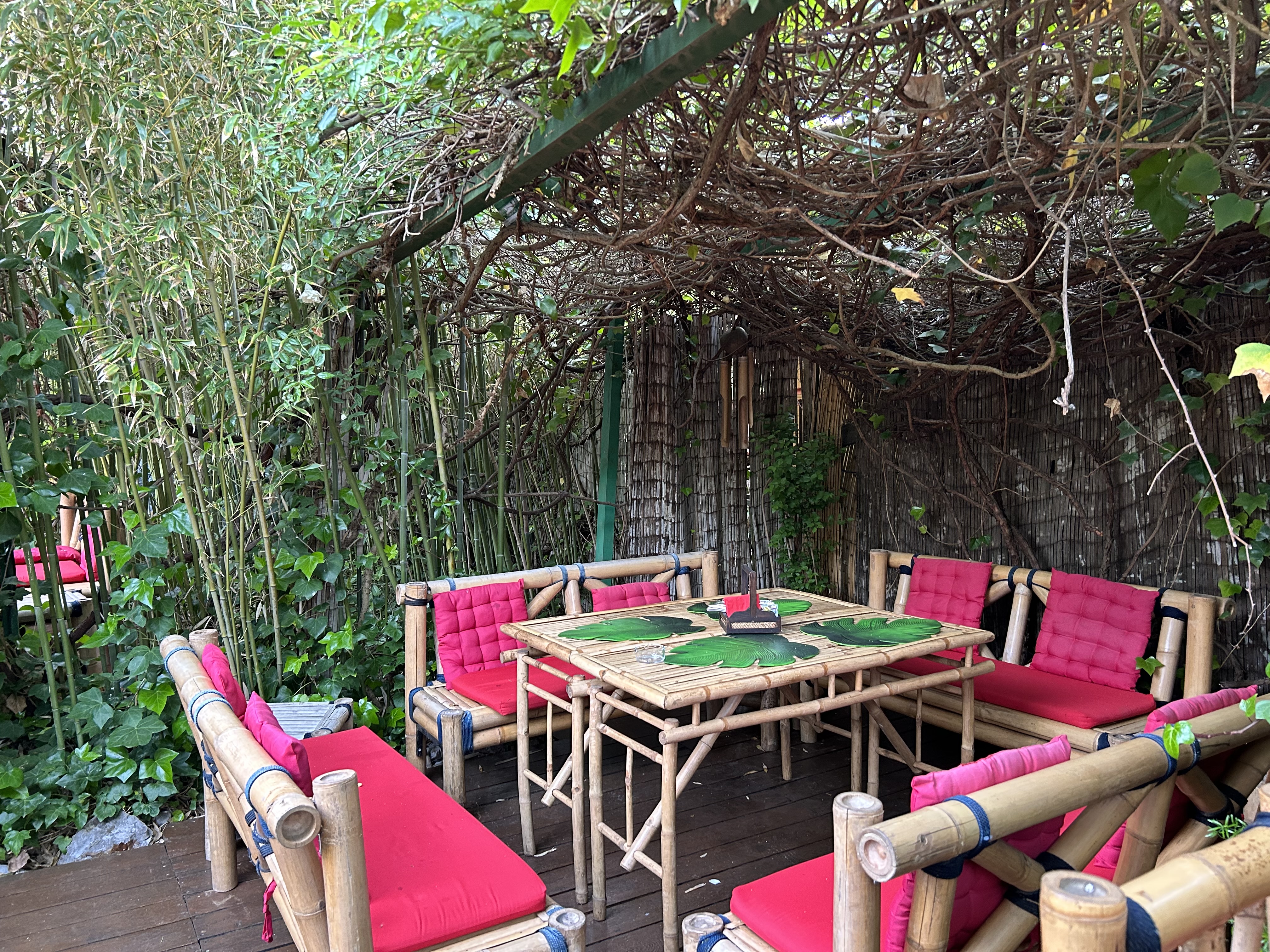 Resto super sympa ! Cadre dépaysant avec sa végétation, ses meubles en bambou, sa musique ! Personnel très agréable ! Cocktails servi dans des noix de coco ! Plats délicieux, on ne sais pas quoi choisir (Il faudra revenir 😁) ! Pour les adeptes de la cuisine exotique ! A savoir : petits prix / petites quantités ! Adresse à retenir