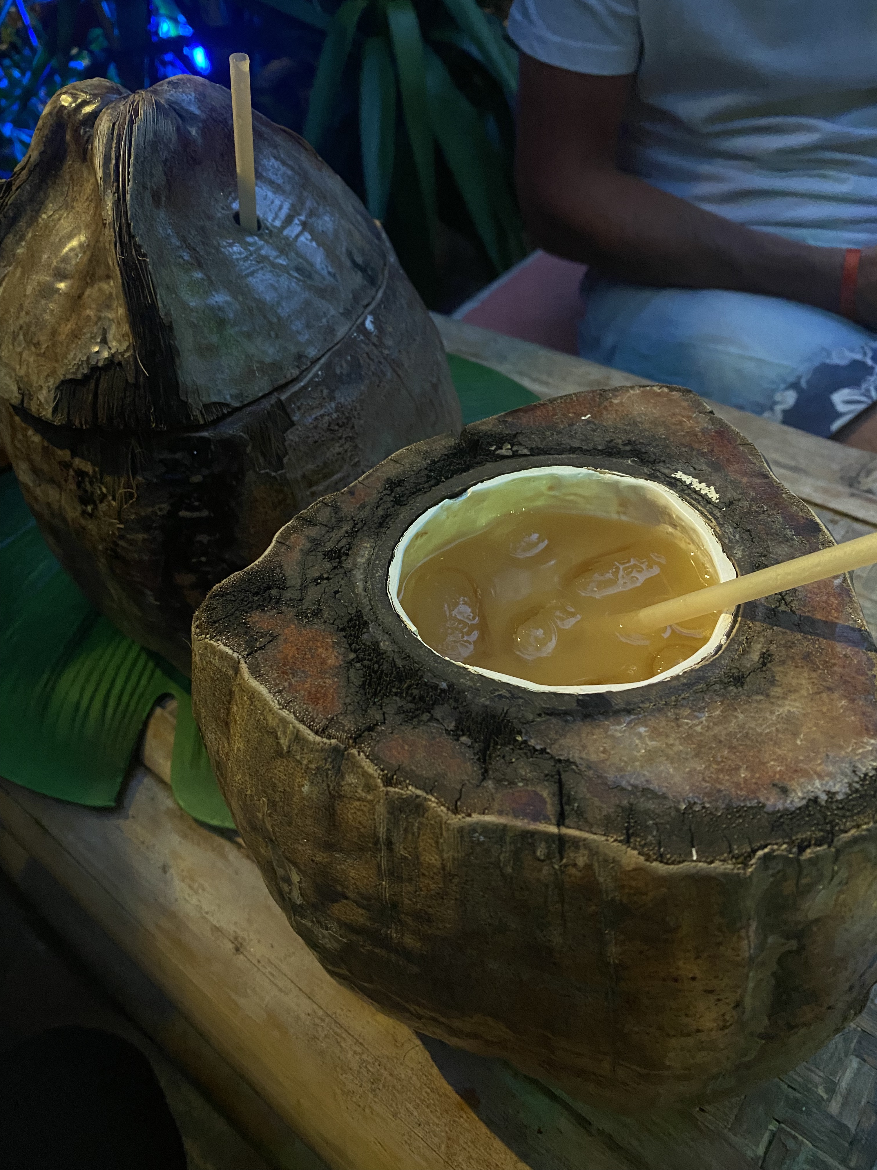 Le décor est vraiment bien cependant c'est le seul point positif. Nous avions commandé 5 cocktails nous en recevons uniquement 4. Les cocktails sont en effet très beau ( dans des noix de coco) par contre la quantité est vraiment limite et la qualité de ma piña collada était catastrophique, une des pires que j'ai goûté. Enfin, le prix y est exorbitant. vous payerez uniquement le décor.