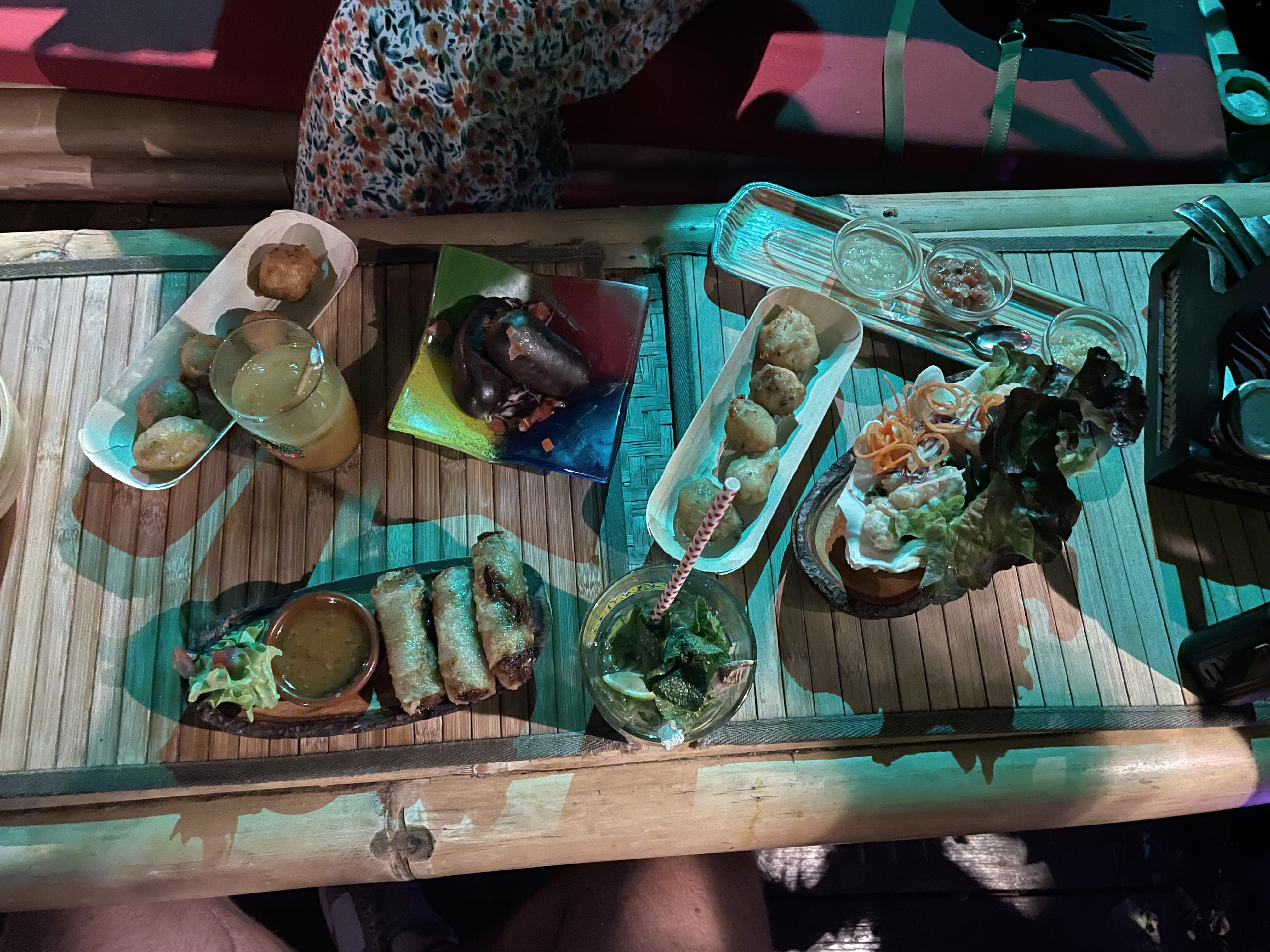 Au départ, on pourrait penser à un attrape touristes, pas du tout. Certes la déco est kitsch mais on adore, de la couleur partout, de la végétation, bambous, palmiers, vigne sur pergola, petite cascade d'eau dans un coin, mobilier de table en bambou, tables hautes, éclairages partout, bref enchanteur et dépaysement garanti. J'ai posté 2 photos car d'innombrables clichés des plats sont déjà publiés. Les cocktails sont délicieux, ceux à la coco servis dans une grosse coque de noix de coco comme là-bas !, les plats m'ont transportée en Guadeloupe (pour ma part!) le temps du dîner. Un vrai régal. Les serveurs d'une gentillesse, bonne humeur et de bon conseil (surtout pour les plats pimentés), malgré cette fin de saison estivale compliquée. Nous étions 4, et étions ravis de découvrir cet endroit. Merci à vous pour les shots lors de notre départ. Nous y reviendrons, c'est certain.