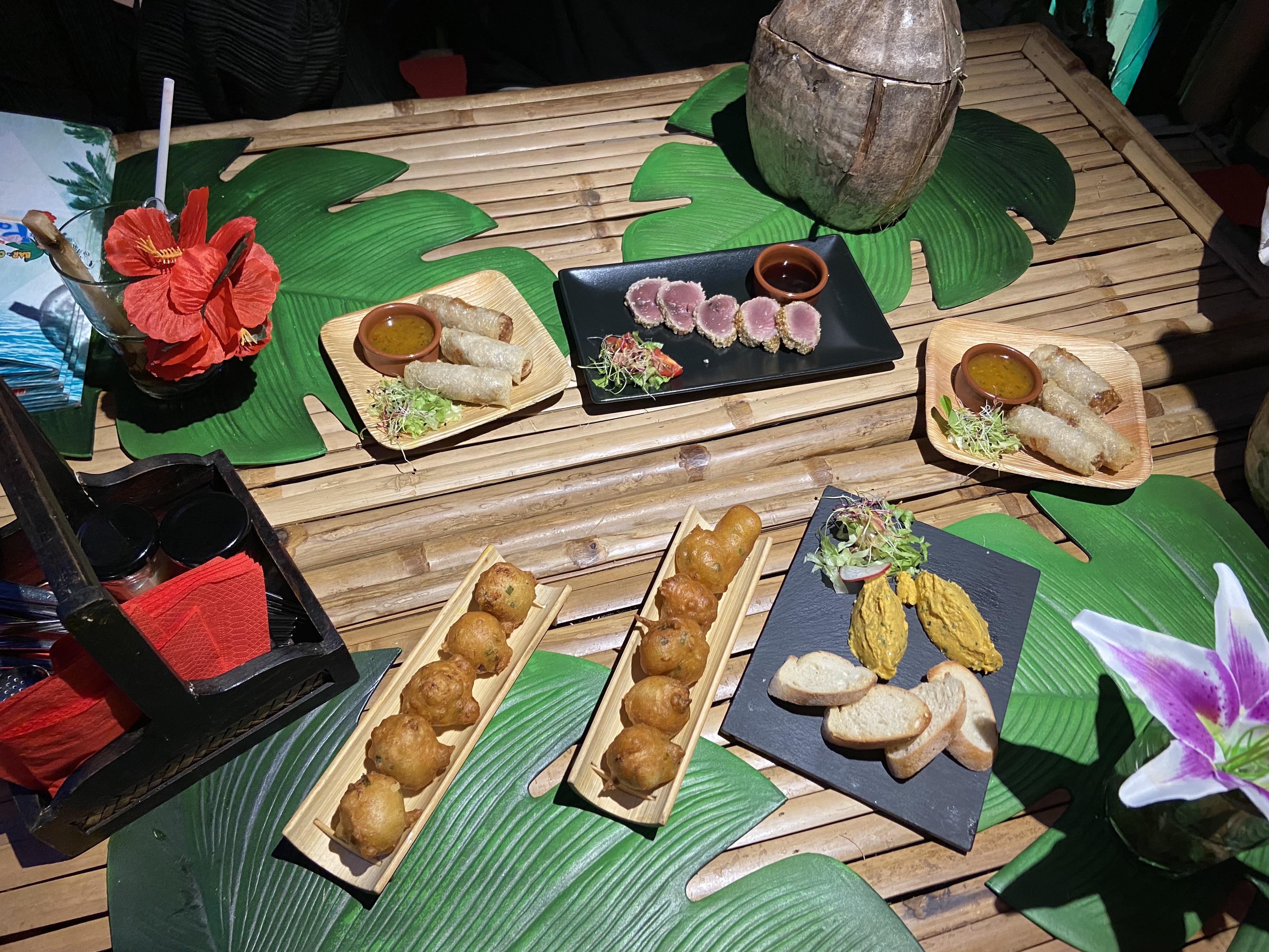 Très bel endroit dépaysement total! On en prend plein les yeux. Les cocktails, planteurs et sans alcool pour nous, délicieux. Les tapas (ou entrées) : samoussas, nems et accras, terribles! On en a repris une 2e fois 😉 Par contre je mets un bémol sur les plats qui ont beau être très bien présentés, appétissant, mais qui sont malheureusement insipides. Manque de goût pour le colombo les légumes paraissaient cuits dans l'eau 😞 dommage j'adore ça pourtant. Même chose pour le riz haricots rouges, trop flotard. Les sauces étaient sans goût même avec un rajout de sel. Ensuite les desserts très bons! Banane à Split et Sorbet coco excellents. Peut être que le cuisinier a eut un problème ce soir là.... J'espere que ça pourra être amélioré a ce niveau là car on a été déçu sur les plats dommage.