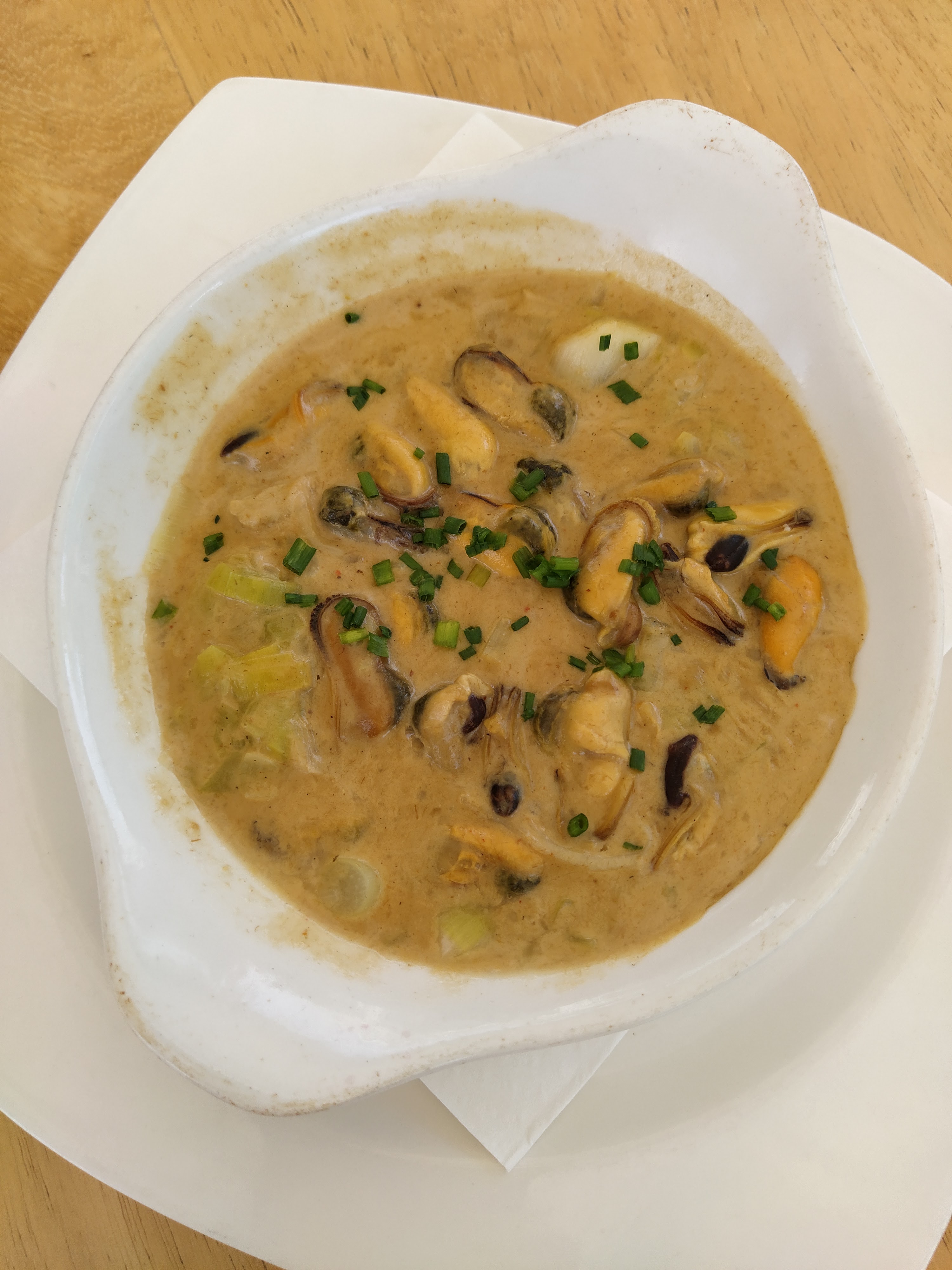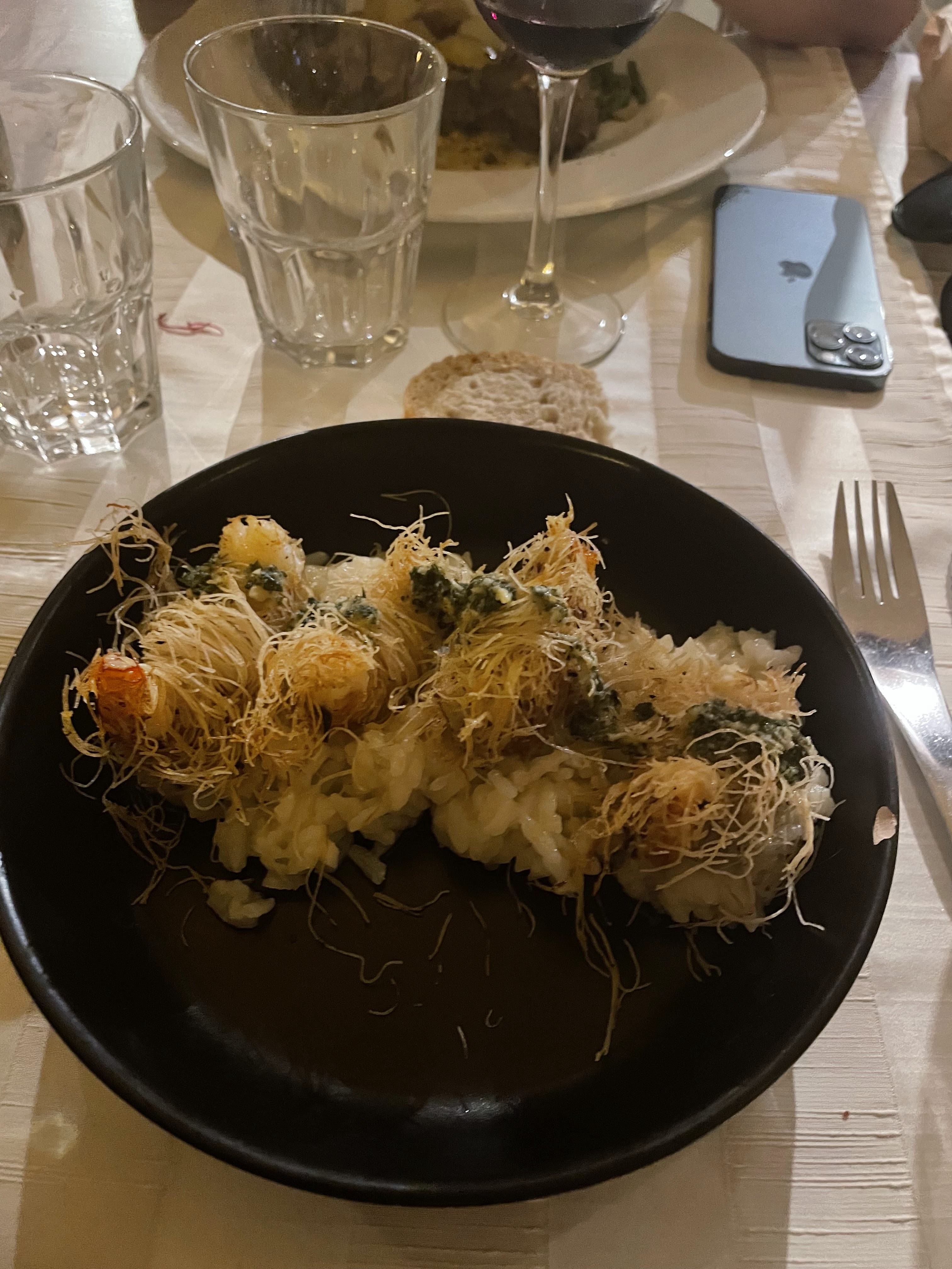 Excellent. Gambas Thaï, soupe de poissons de roche, bar grillé, fenouil flambé au pastis, thon tataki 😋😋😋