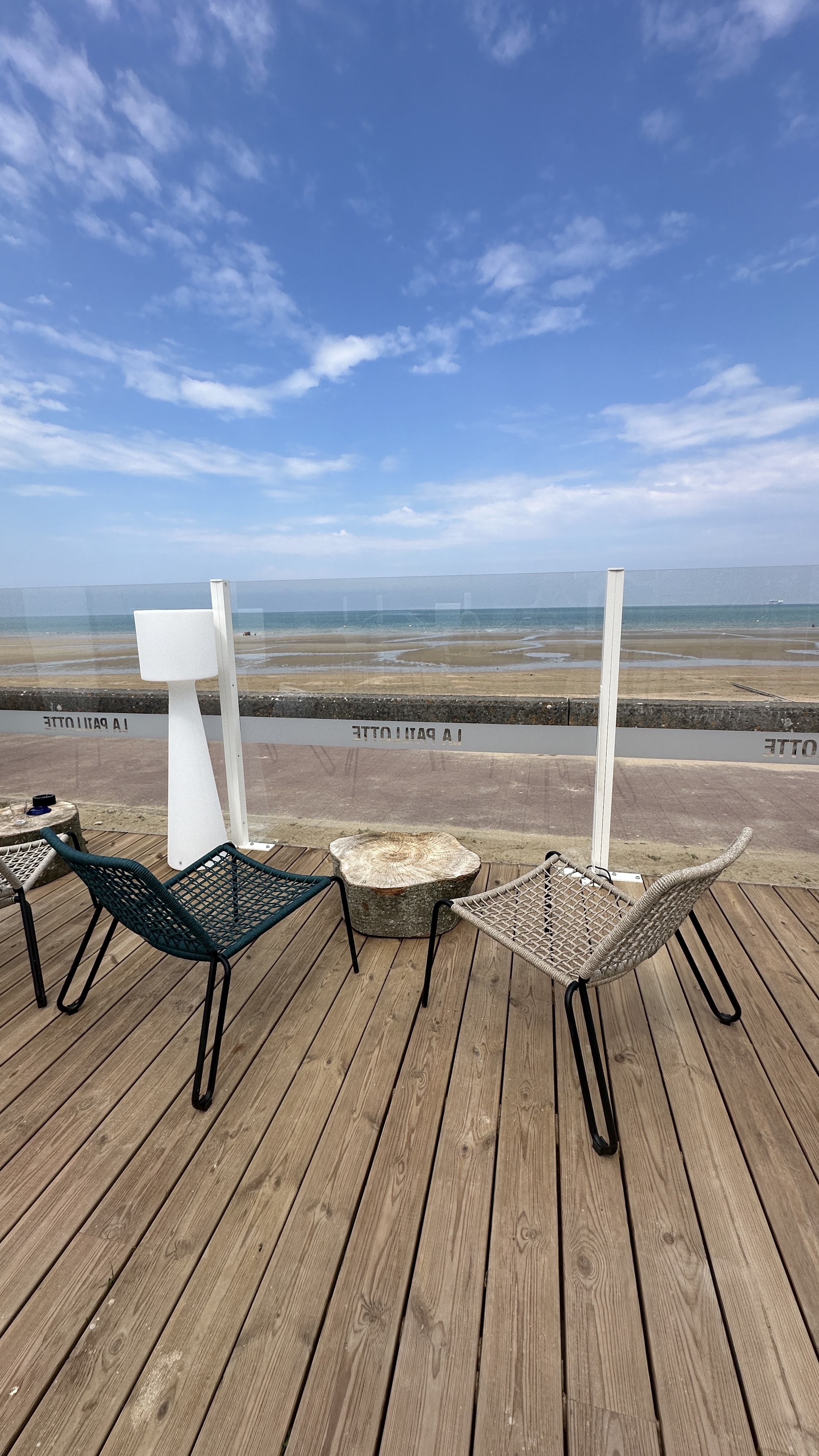 Sur la digue de Ouistreham au plus près de la mer,une ambiance,pas de chichis,juste l'essentiel pour y être bien..😉