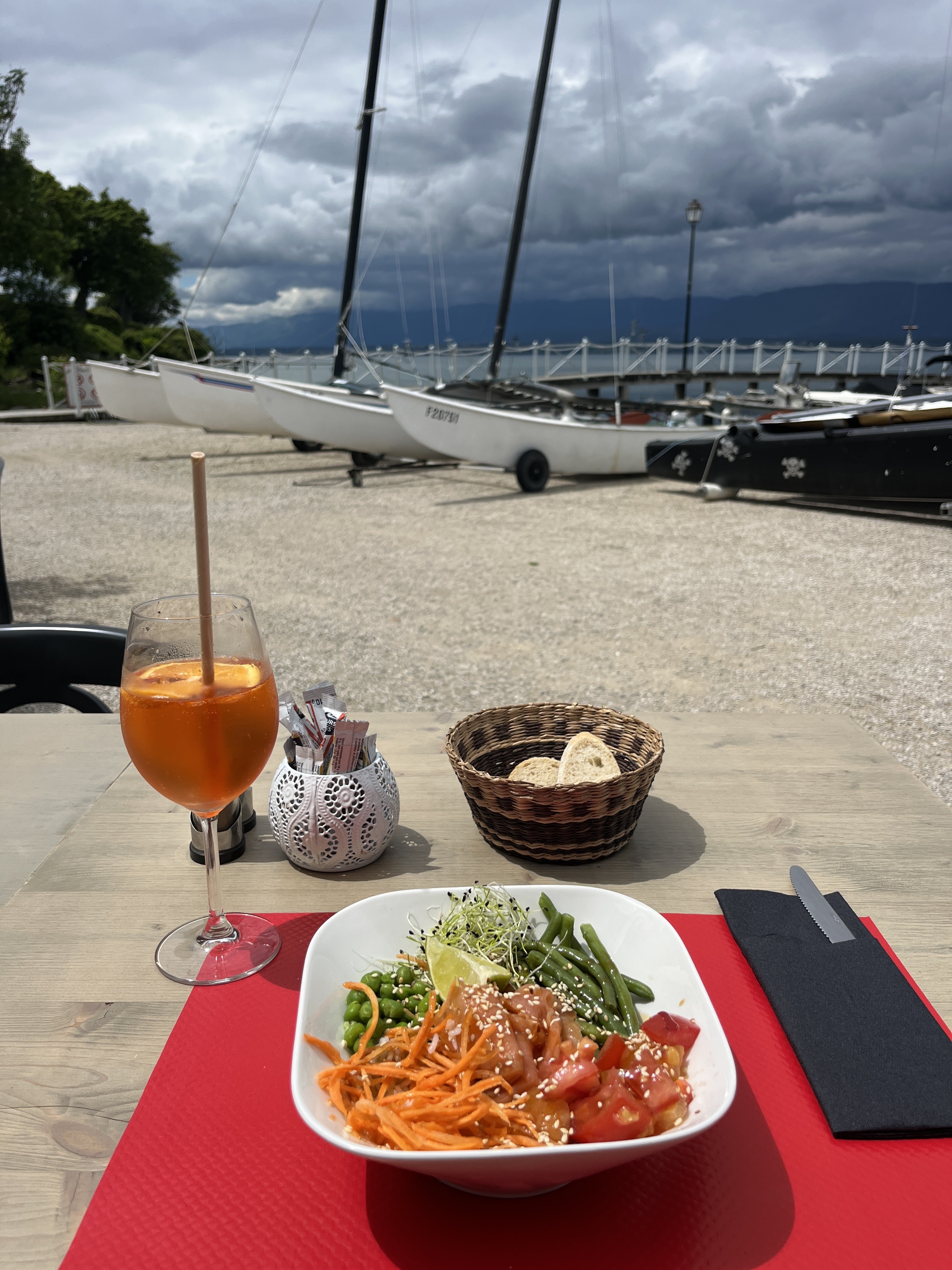 Délicieuses Brushetta, burgers généreux, salades de produits frais (j'ai adoré la mozza), le tout flanqué d'une merveilleuse vue sur le lac et d'un accueil ensoleillé ! On en r'demande !