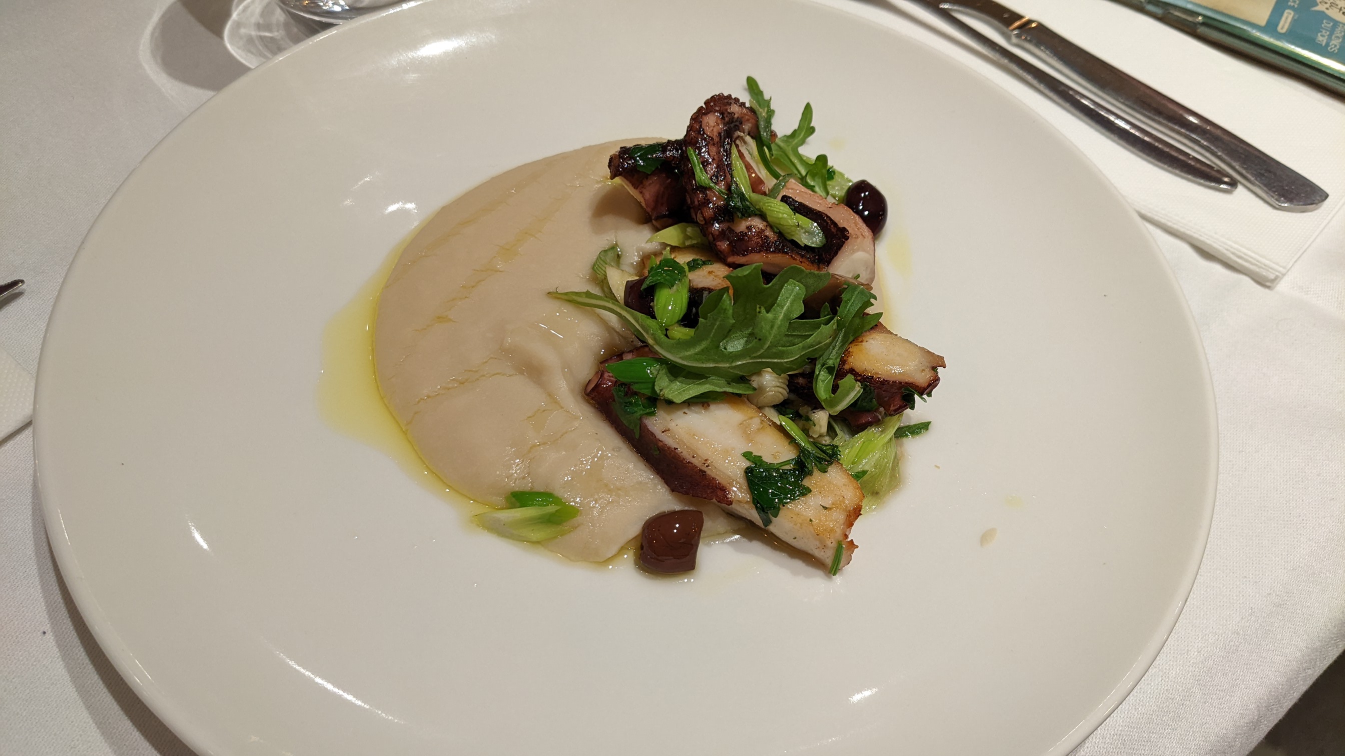 Très bel endroit avec une cuisine délicieuse. Nous y sommes arrivés pour le déjeuner. Nous sommes venus en grand groupe. Nous avons eu droit à un tas de plats différents : entrées à partager, plats principaux variés, desserts. Tout était bon et tout le monde était content de ce qu'ils avaient. Je mettrais en avant le poulpe grillé. C'était brillant. C'était bien mieux même par rapport à ce que j'avais essayé au Portugal. Très tendre et savoureux. Parmi les desserts, nous en avons partagé un tas, j'ai beaucoup aimé les profiteroles, elles étaient bonnes. Le service était bon aussi. C'était un grand groupe, mais ils ont tout servi assez rapidement. Je recommande vraiment cet endroit!