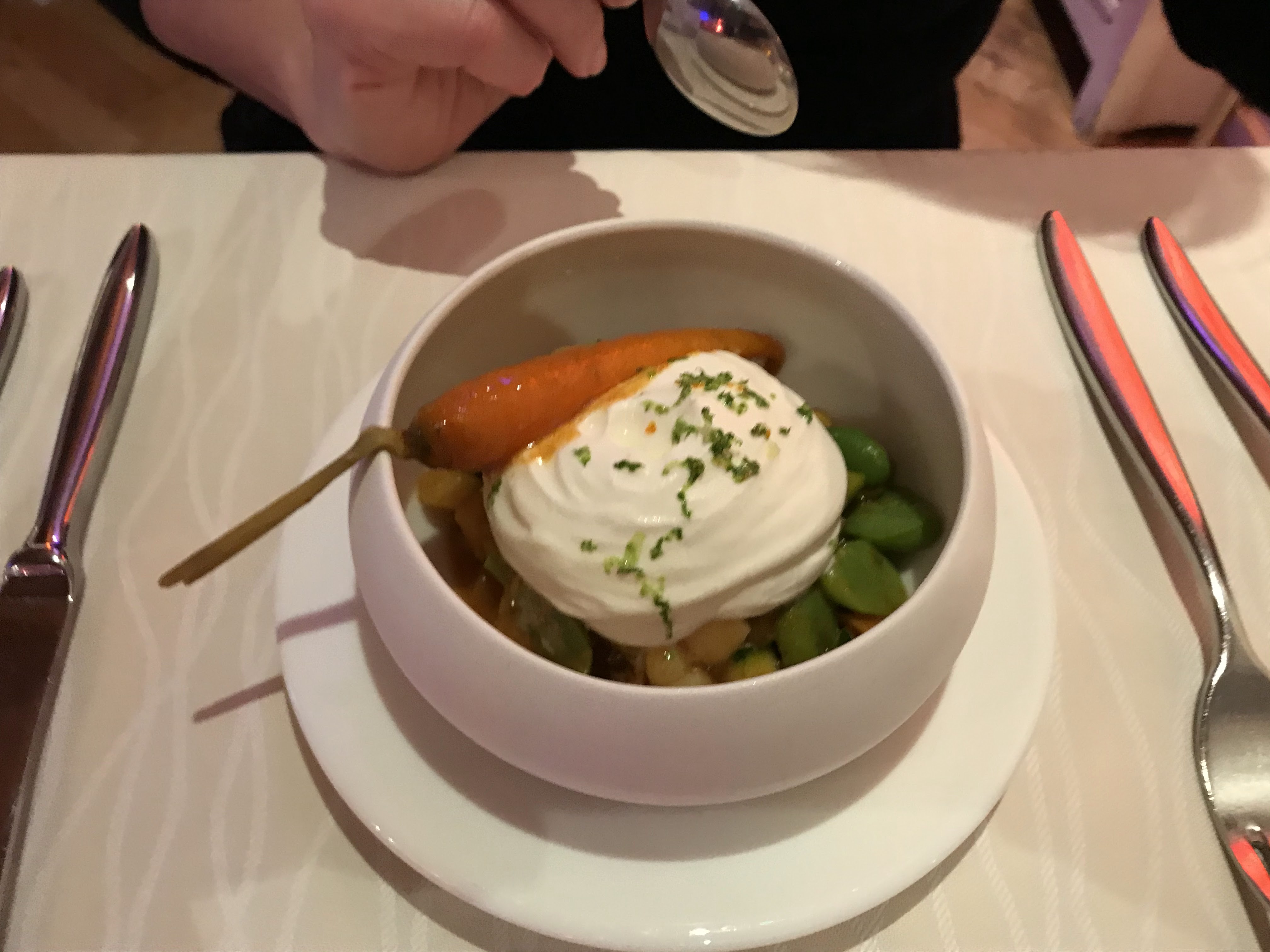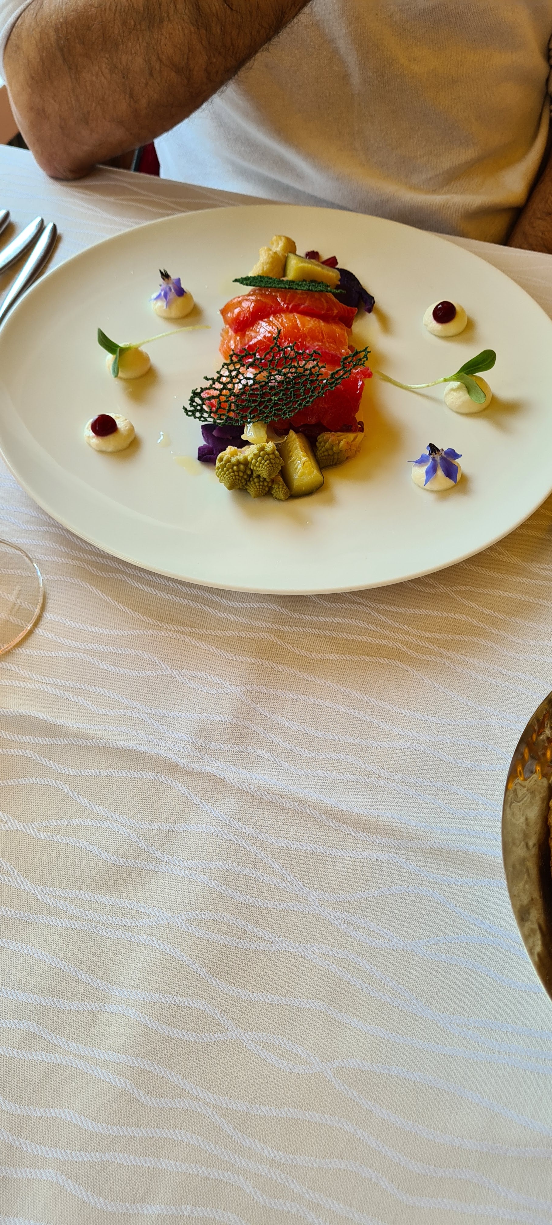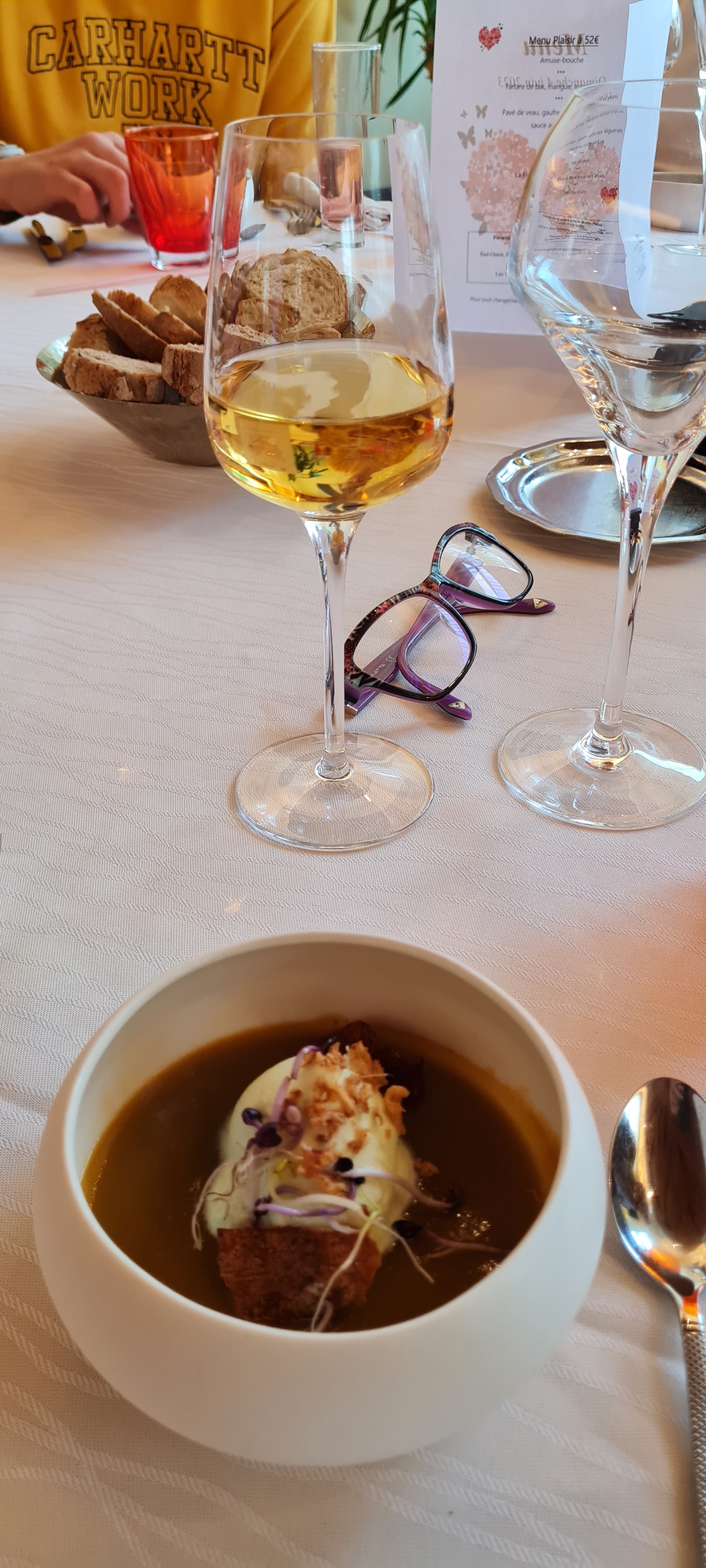 Déjeuner dimanche, belle présentation des assiettes et le contenu excellent. Sans compter les petites verrines entre les plats. Je recommande