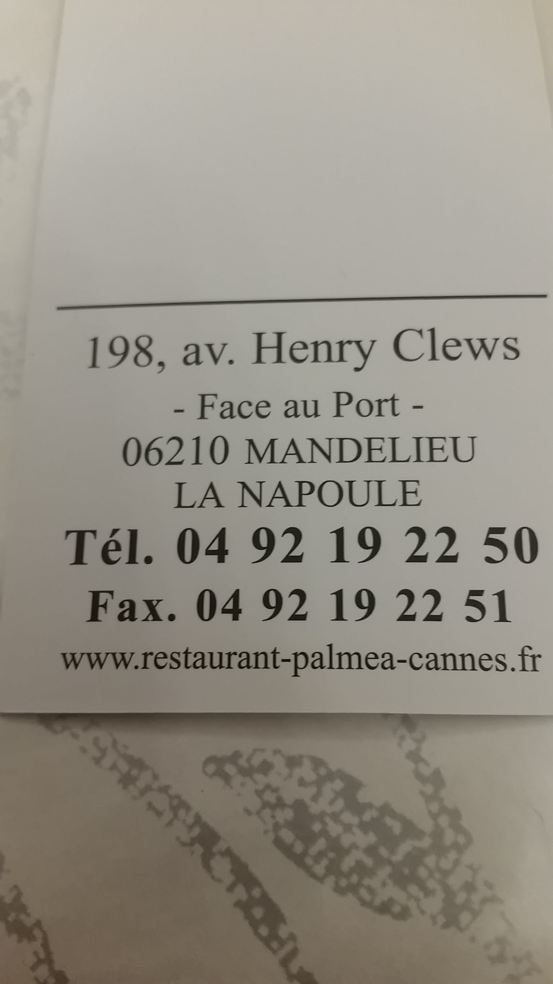 Voici toutes les informations sur le Restaurant La Palméa qui ce trouve au 198 Av. Henry Clews, 06210 Mandelieu-la-Napoule (06). Sur cette fiche vous trouverez les photos, l'adresse, les horaires d'ouverture, le numero de téléphone et les avis clients.Vous pouvez églement rédiger un avis si vous le souhaitez en bas de page.