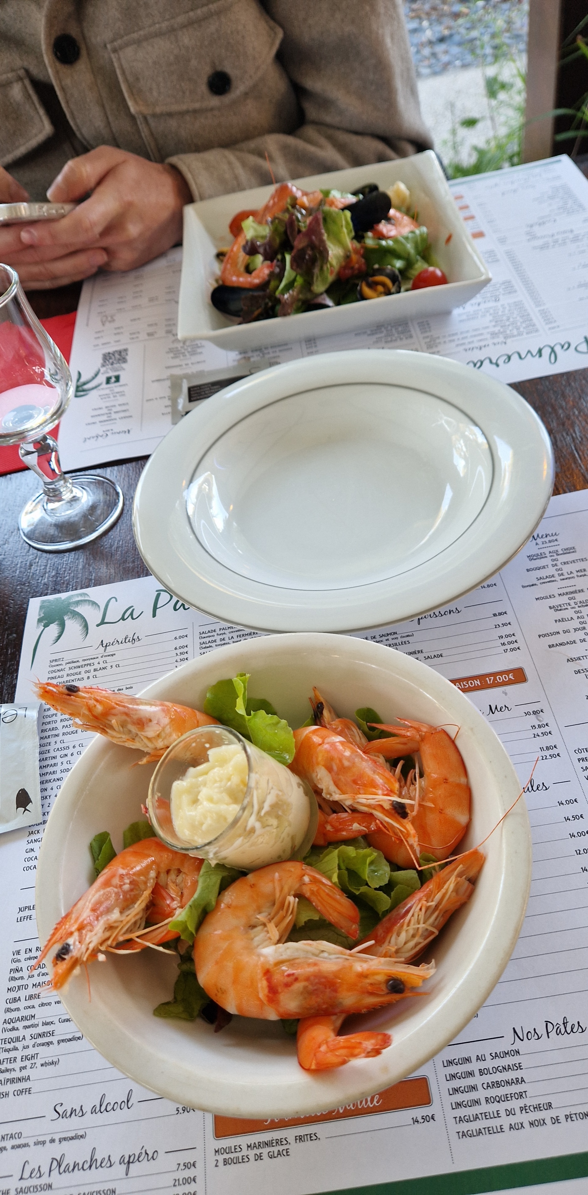 A éviter c'est très cher pour ce que c est !!! La salade composée se noyait dans la salade verte. Pour la paella préférez la formule plutot que le plat unique c est le même contenant c est juste la taille de l assiette autour qui change et une langoustine en plus. Les fruits de mer sont congelés !!! O