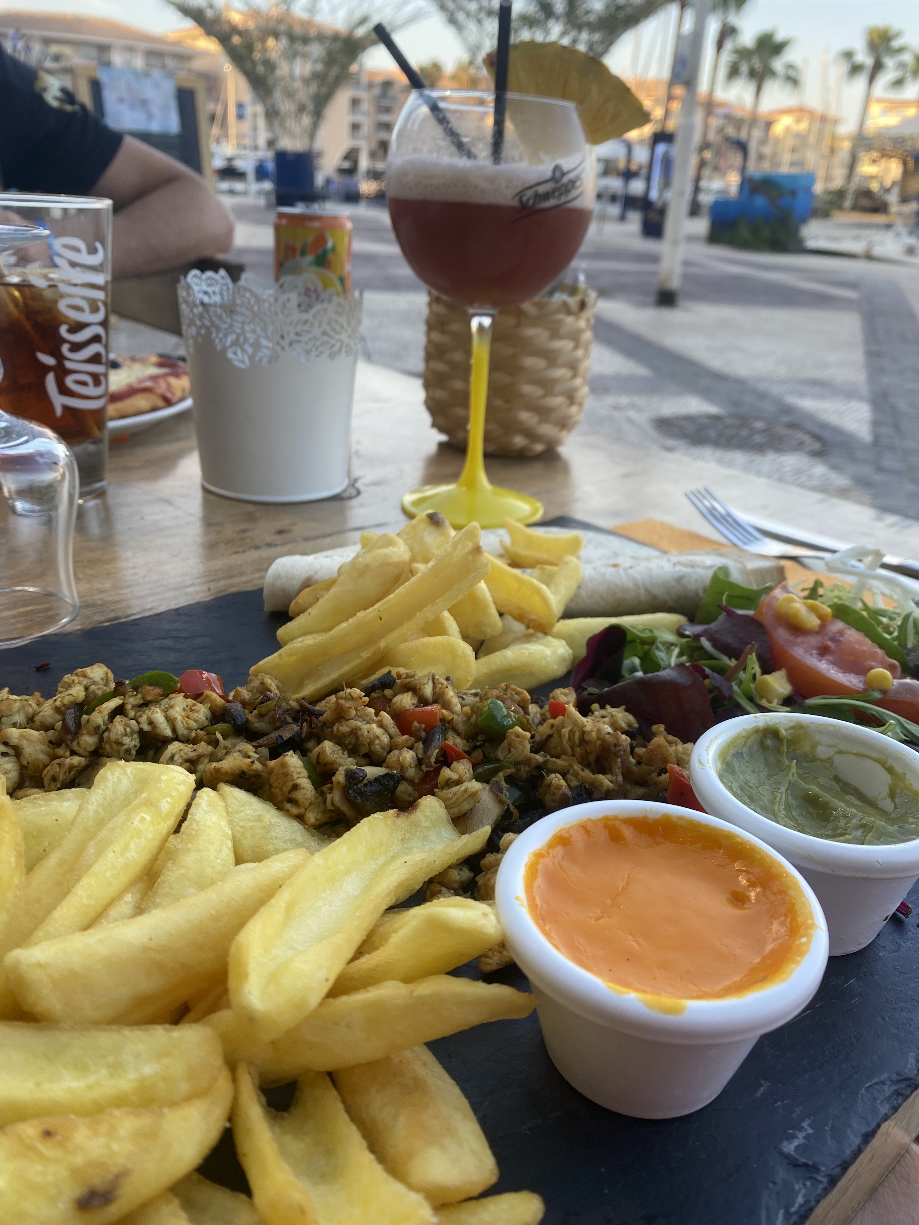 Tout était parfait, le cadre, le service, la réactivité, le choix et surtout les plats ! Les prix sont raisonnables et les quantités sont excellentes ! Meilleurs restaurants qu’on aie fait à Fréjus! Je recommande vraiment même en famille c’est parfait il y’a la place et c’est un endroit frais le soir. Les coktails sont excellents aussi.