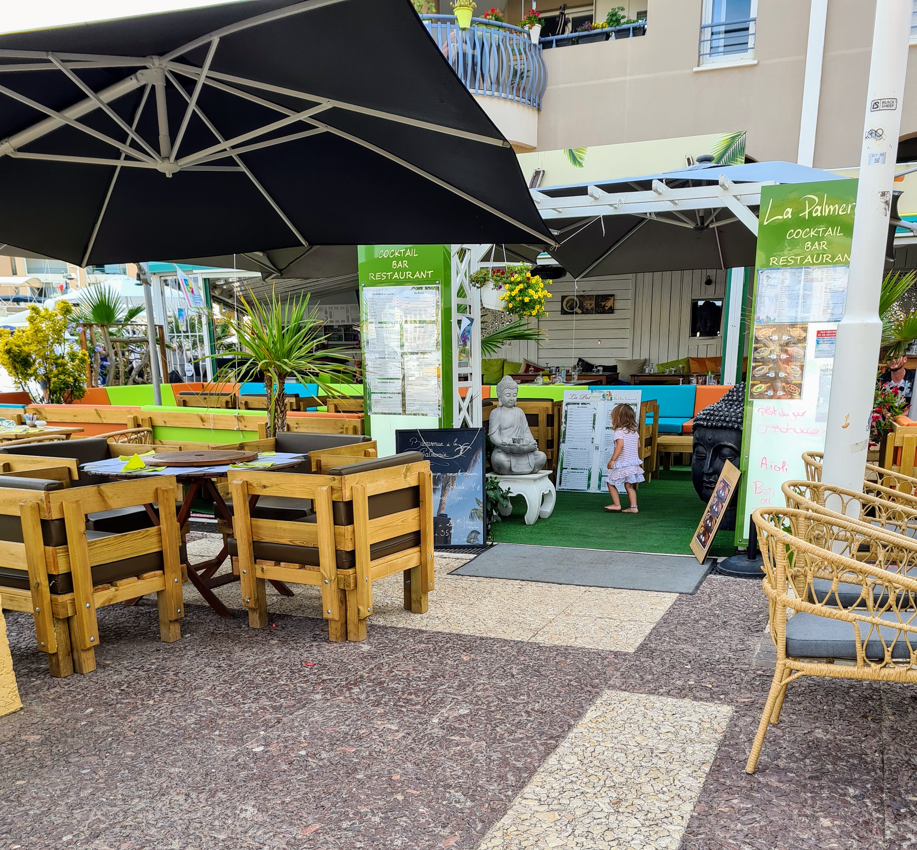 Je suis allée prendre un verre a la palmeraie et dîner avec mon fils. Très bon accueil des serveurs, sympa, agréables et plaisantins. Le coktail était bon. Menu enfant correct. J'ai pris une plancha qui était correcte aussi. Un peu d'attente mais on nous avait prévenu a l'arrivée. Très beau cadre et bien situé pour le feu d'artifice. Atisfaite de ma soirée la bas.